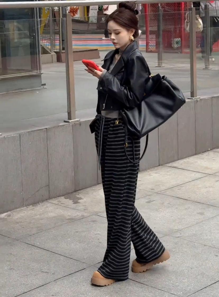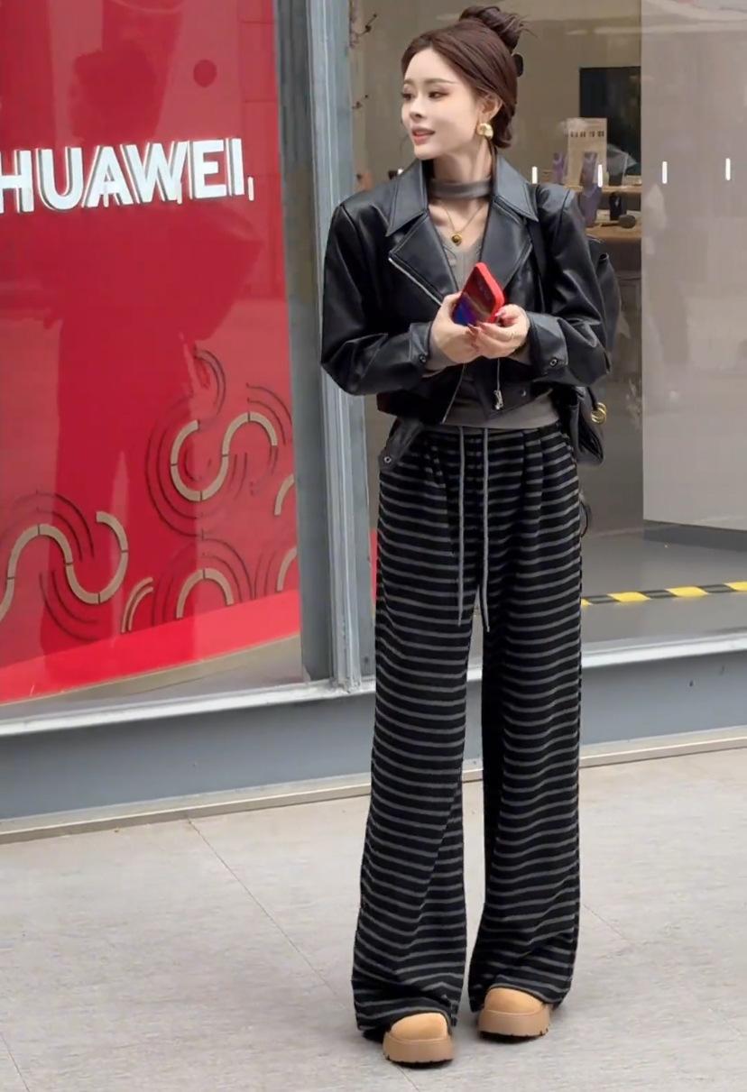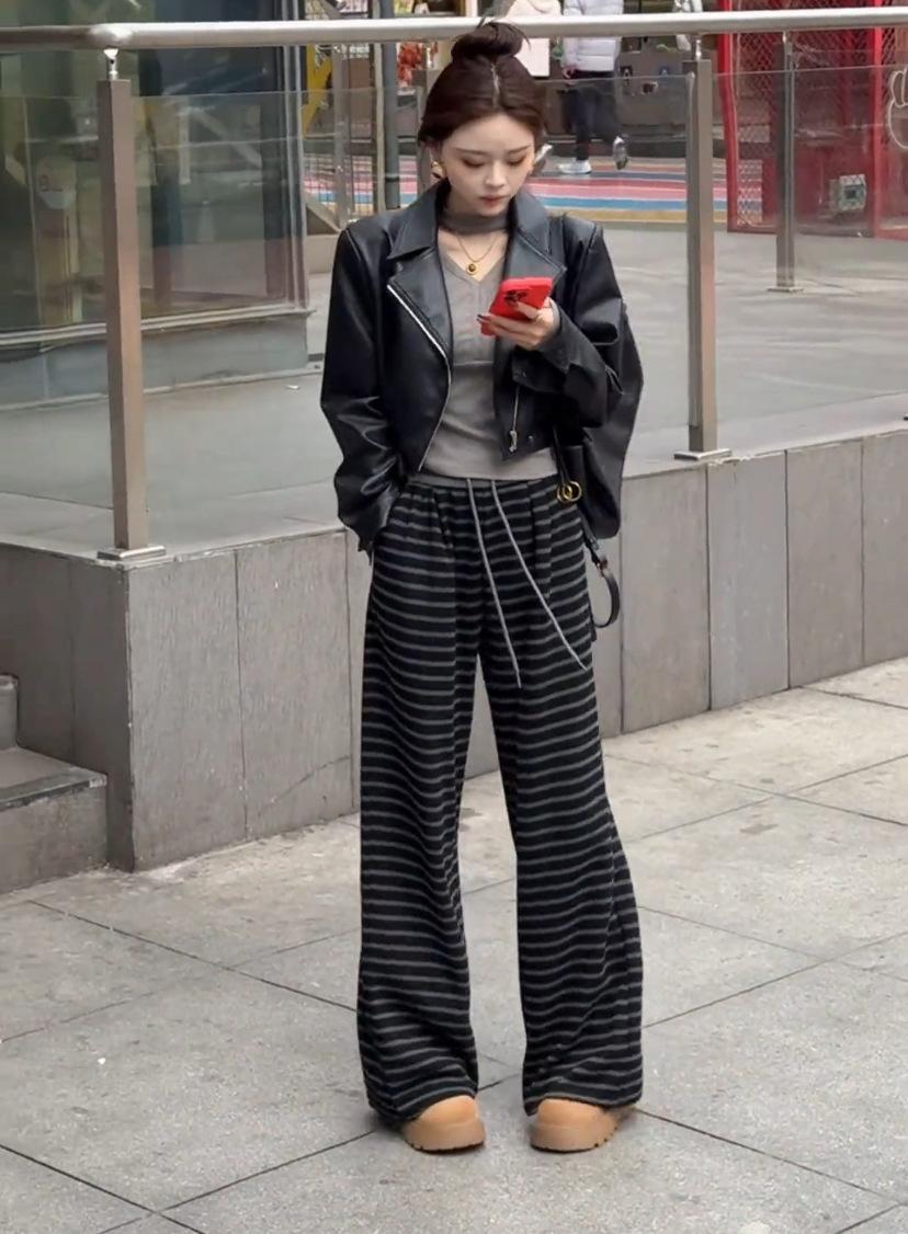Pantalones Casuales con Cordón y Raya de Color en Contraste para Mujer Primavera 2025 Nuevo Pantalones Holgados Relajados de Pierna Recta y Pierna Ancha