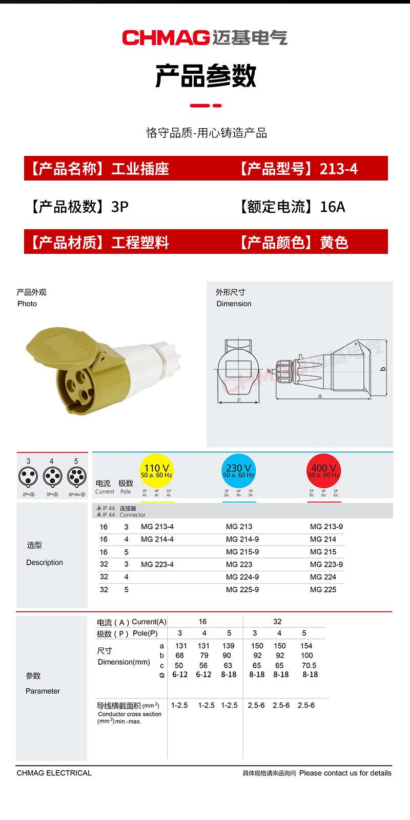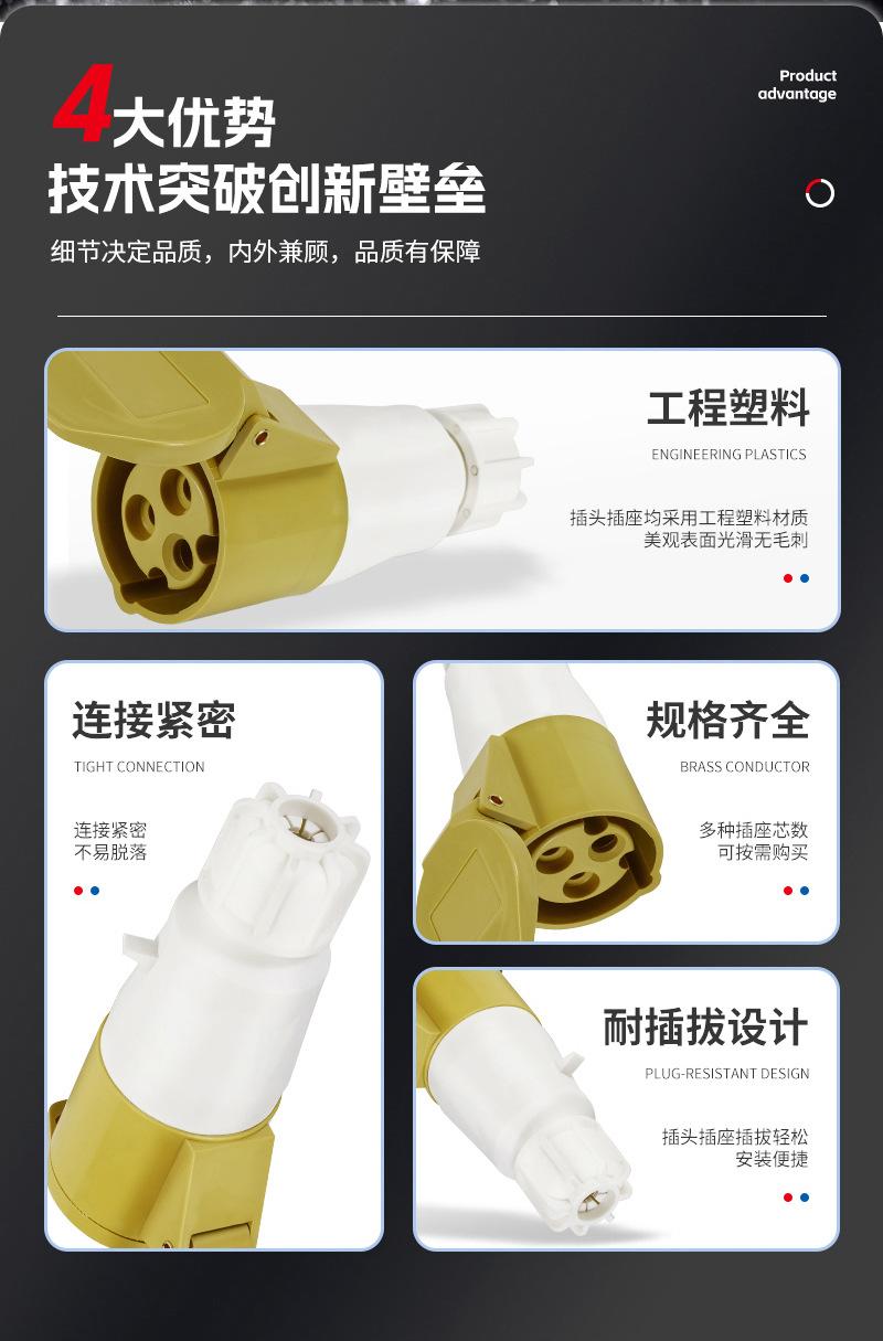 Conector Aviación Industrial Enchufe Zócalo Tipo Mg213-4 Amarillo 3 Núcleos 16A Conector Enchufe Industrial