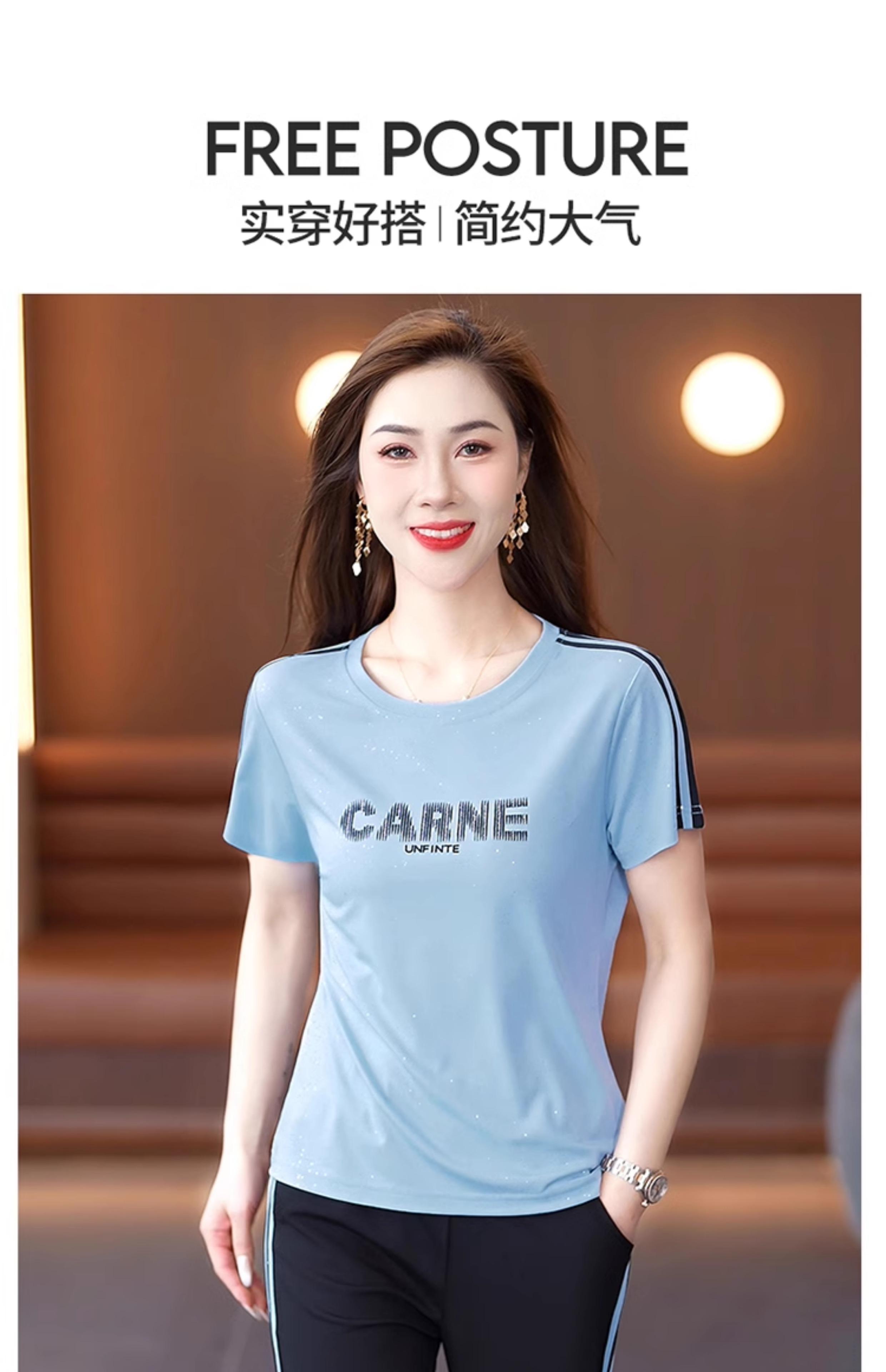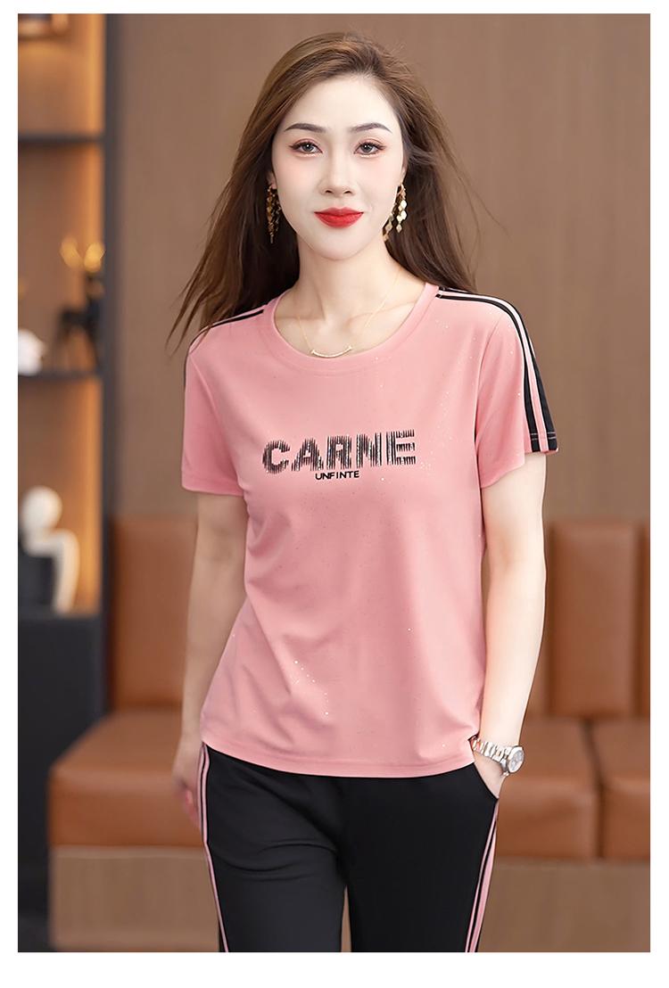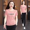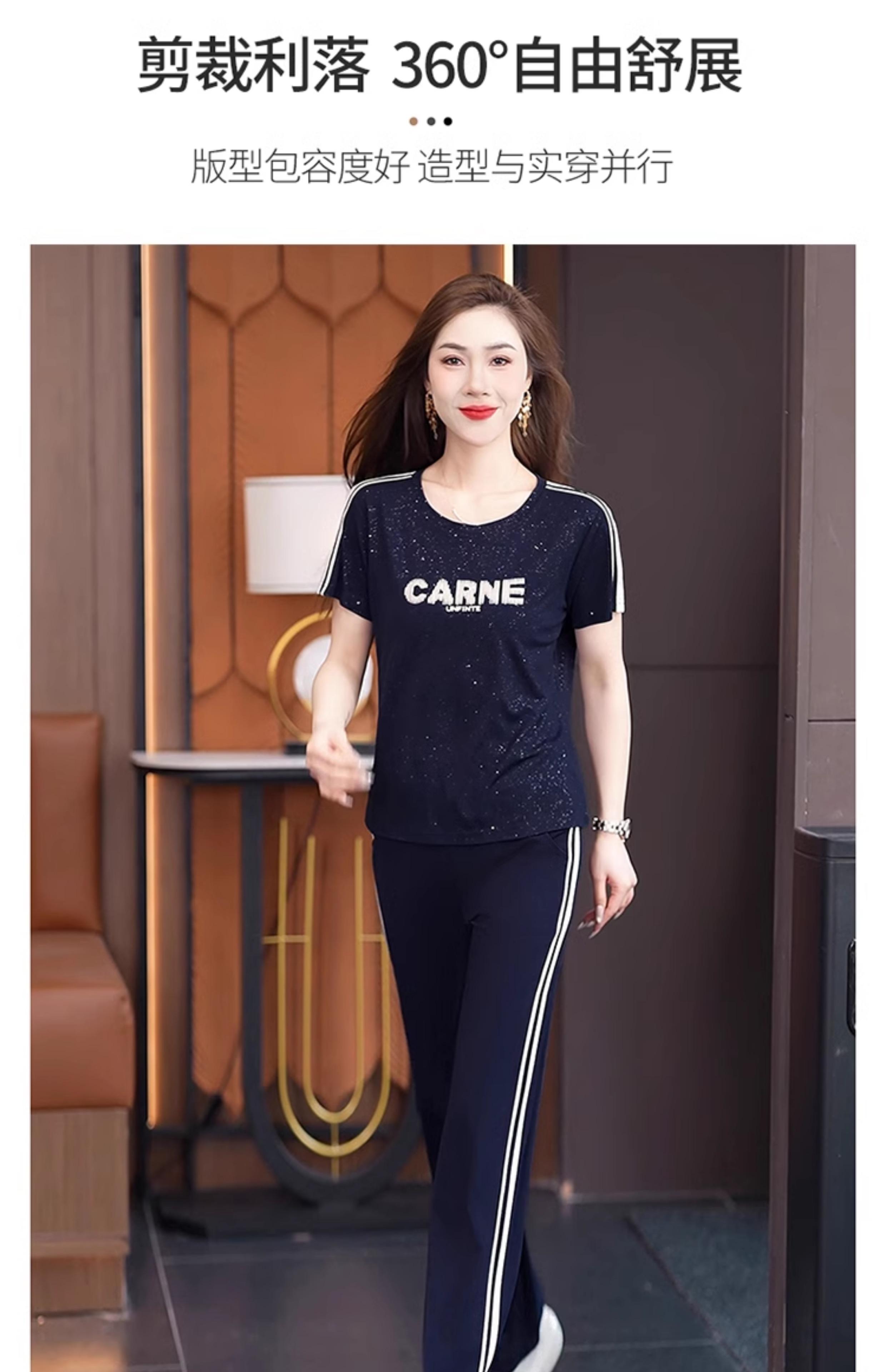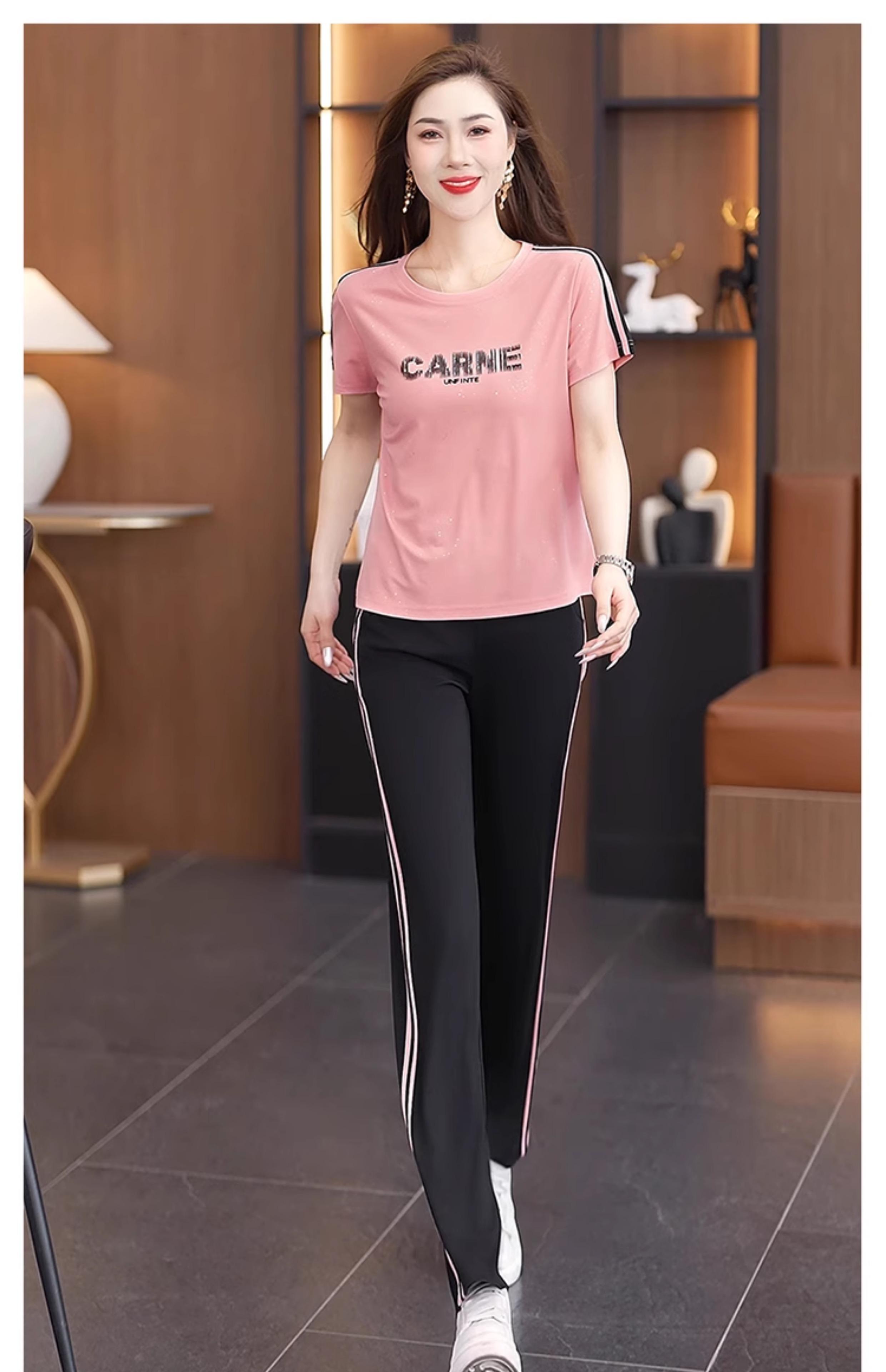 Traje deportivo para mujer Verano 2025 Nueva moda Estilo occidental Madre Seda de hielo Manga corta Reductor de edad Casual Para correr Conjunto de dos piezas