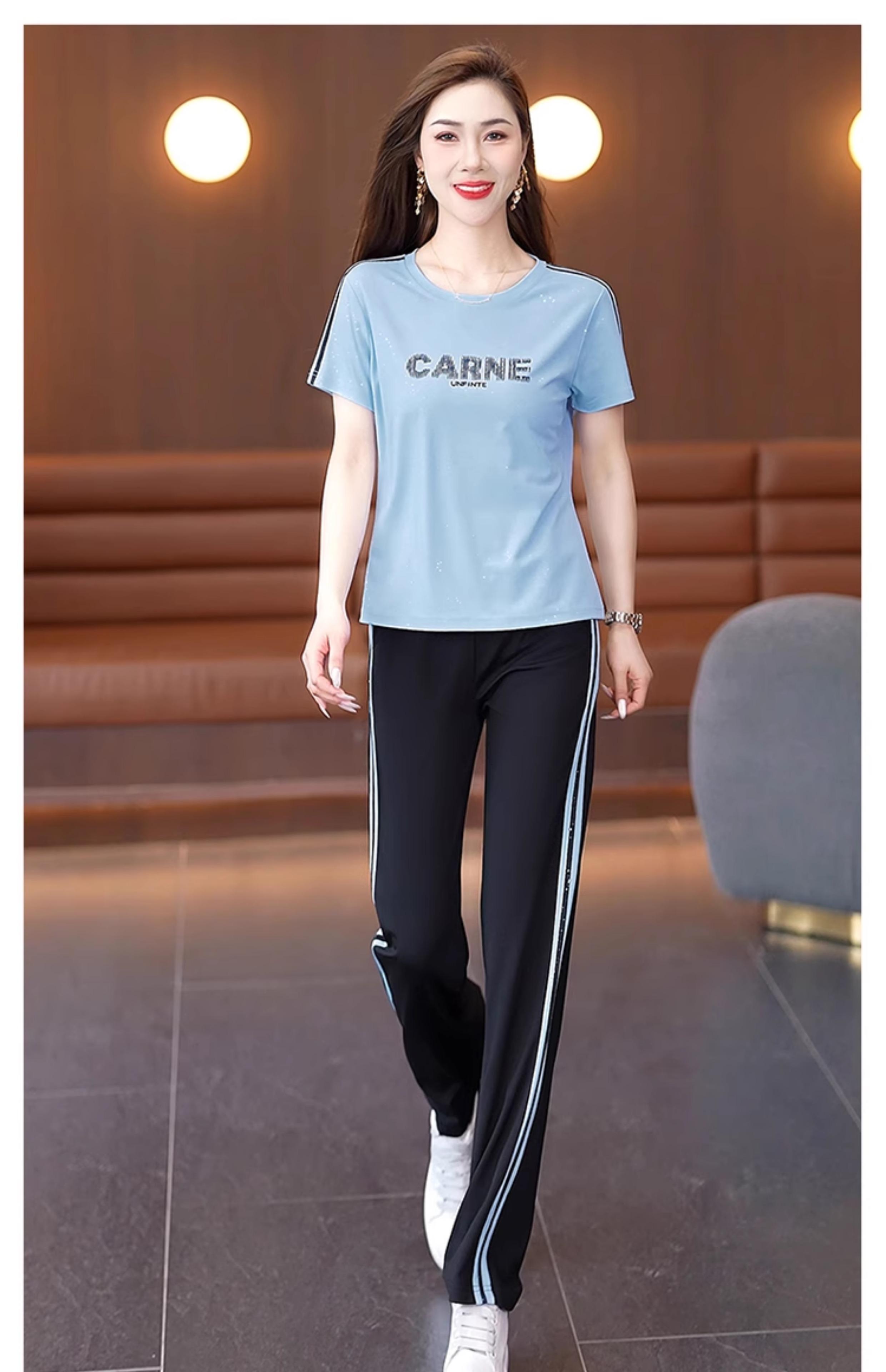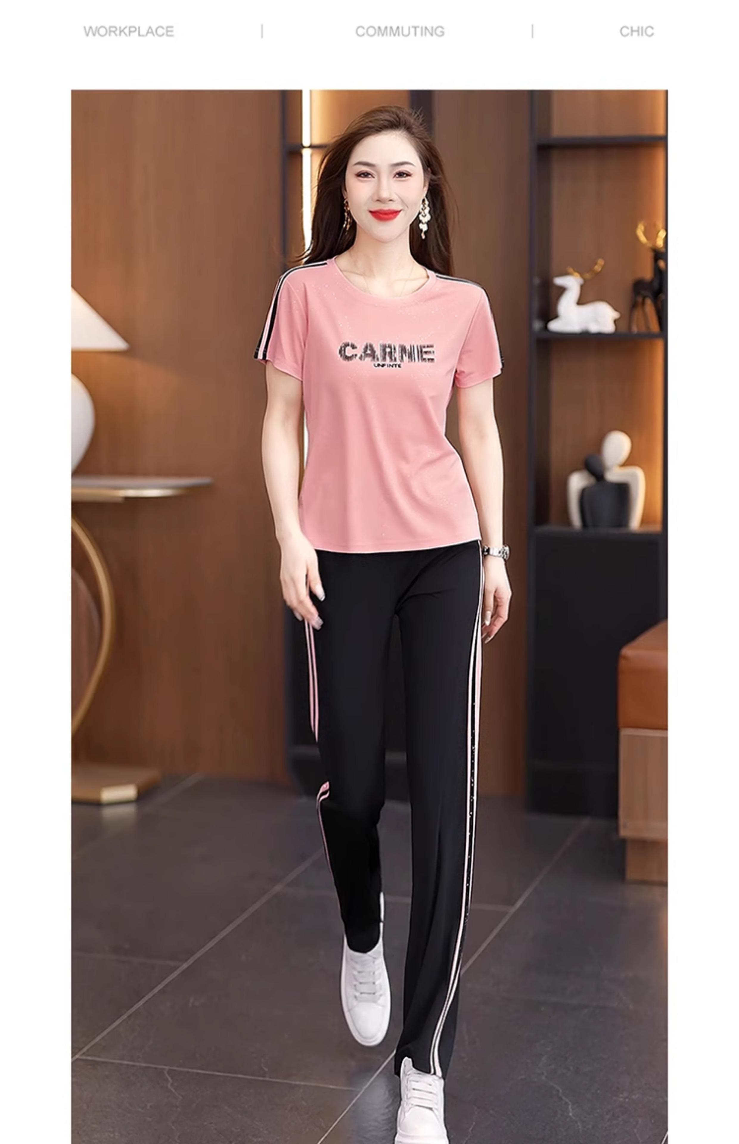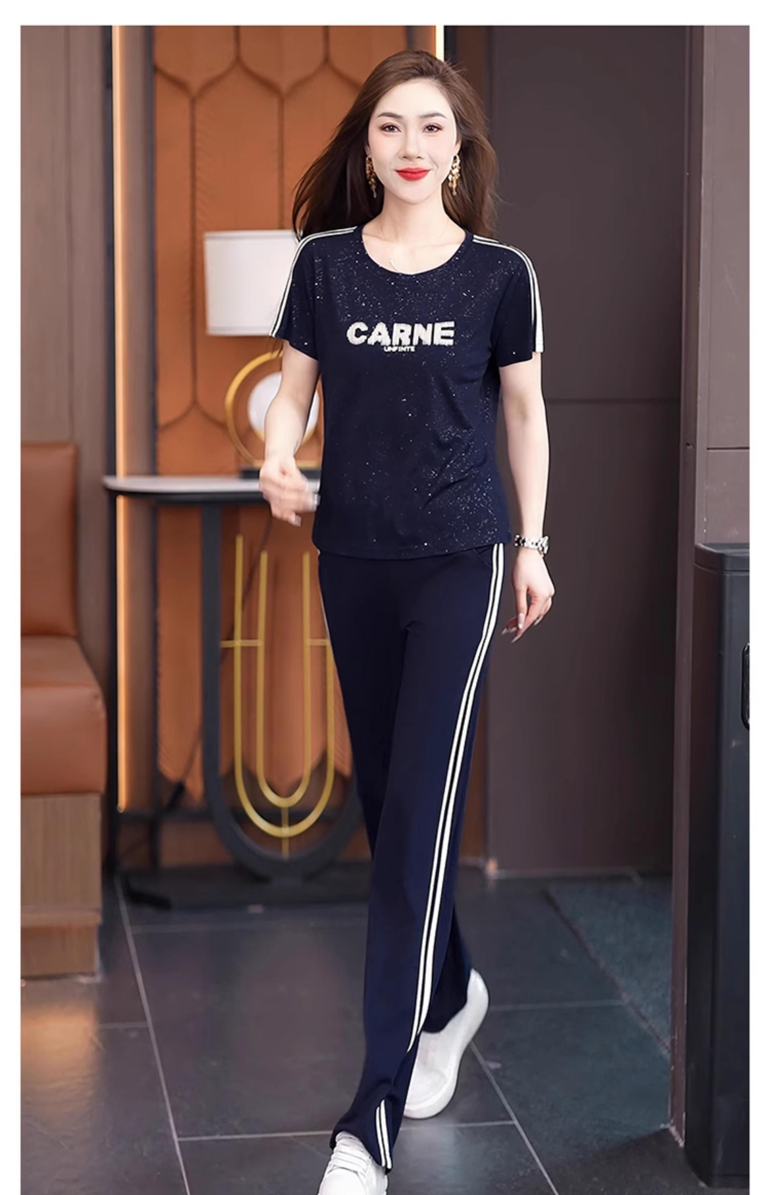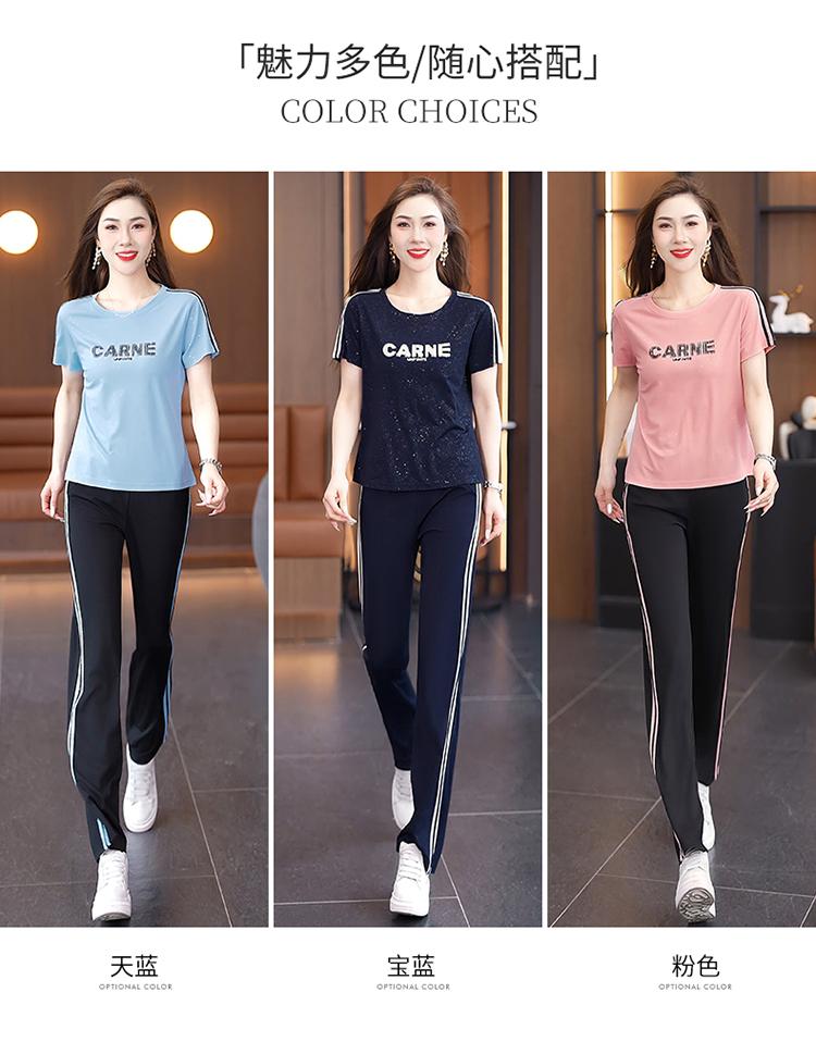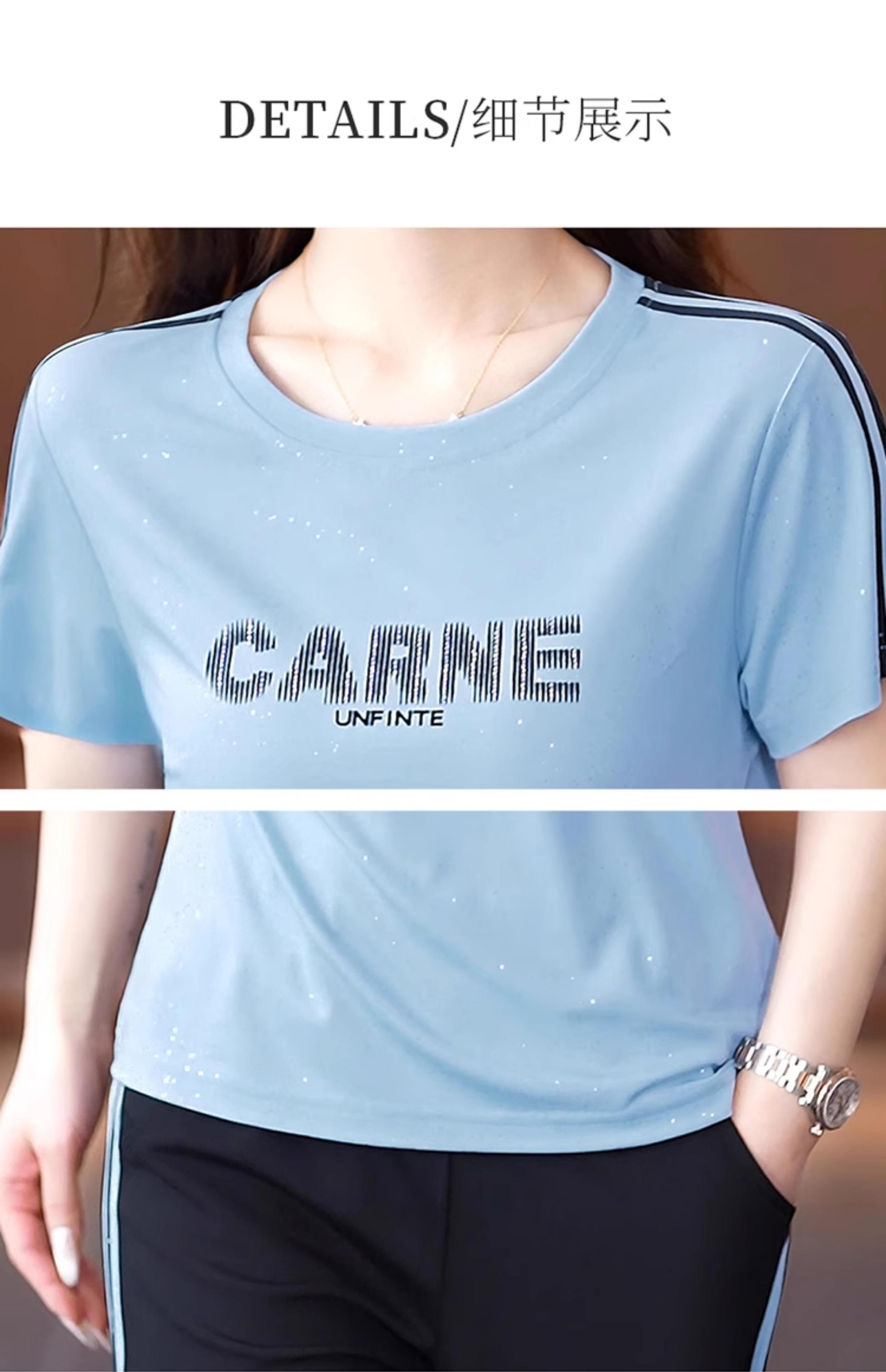 Traje deportivo para mujer Verano 2025 Nueva moda Estilo occidental Madre Seda de hielo Manga corta Reductor de edad Casual Para correr Conjunto de dos piezas