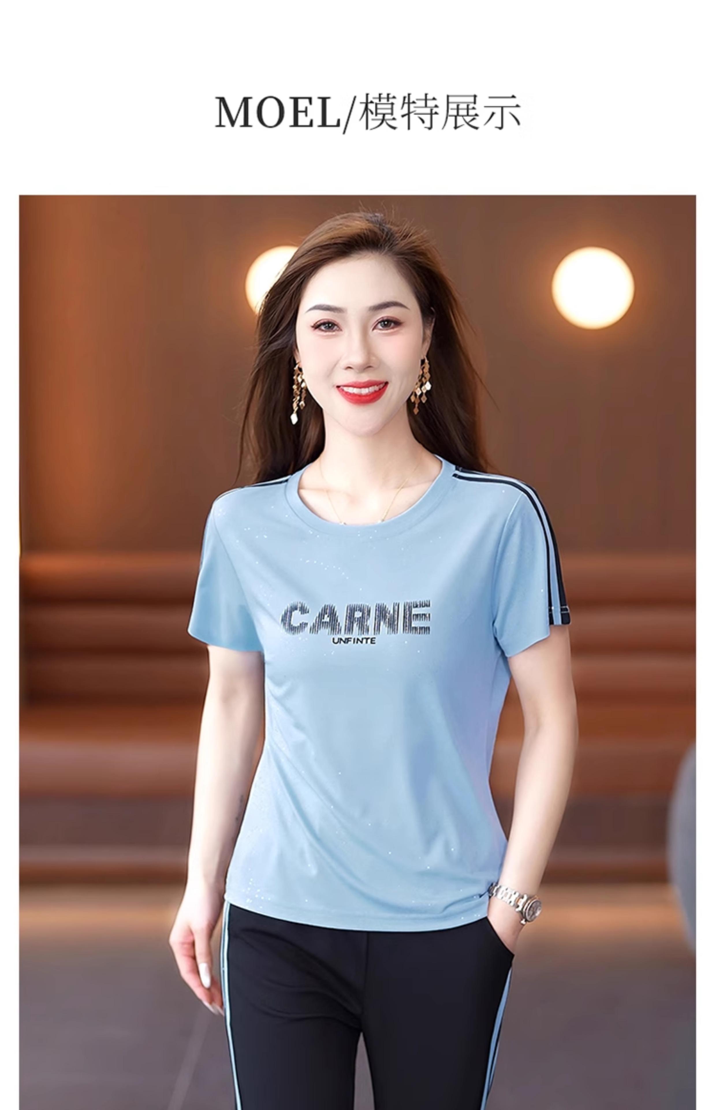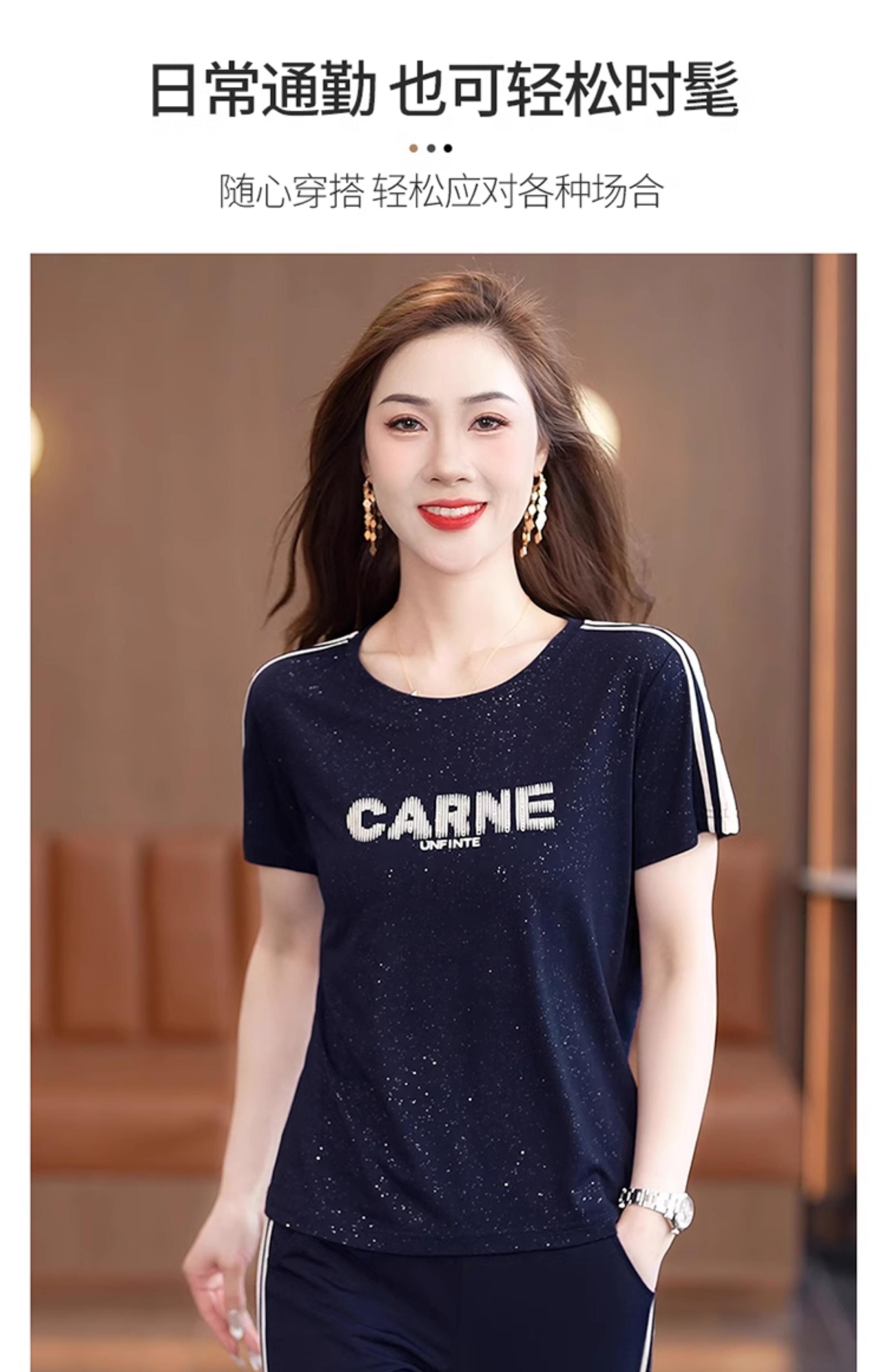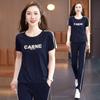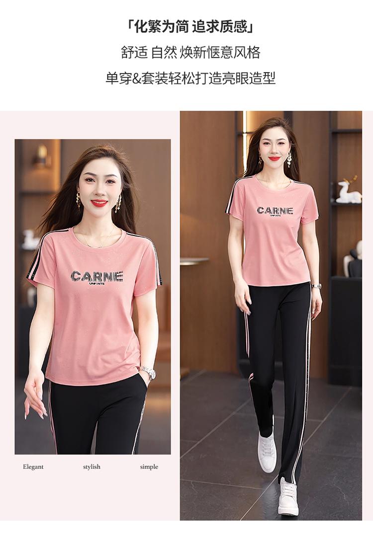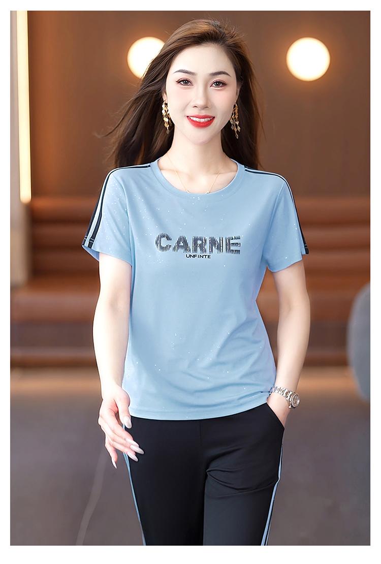 Traje deportivo para mujer Verano 2025 Nueva moda Estilo occidental Madre Seda de hielo Manga corta Reductor de edad Casual Para correr Conjunto de dos piezas