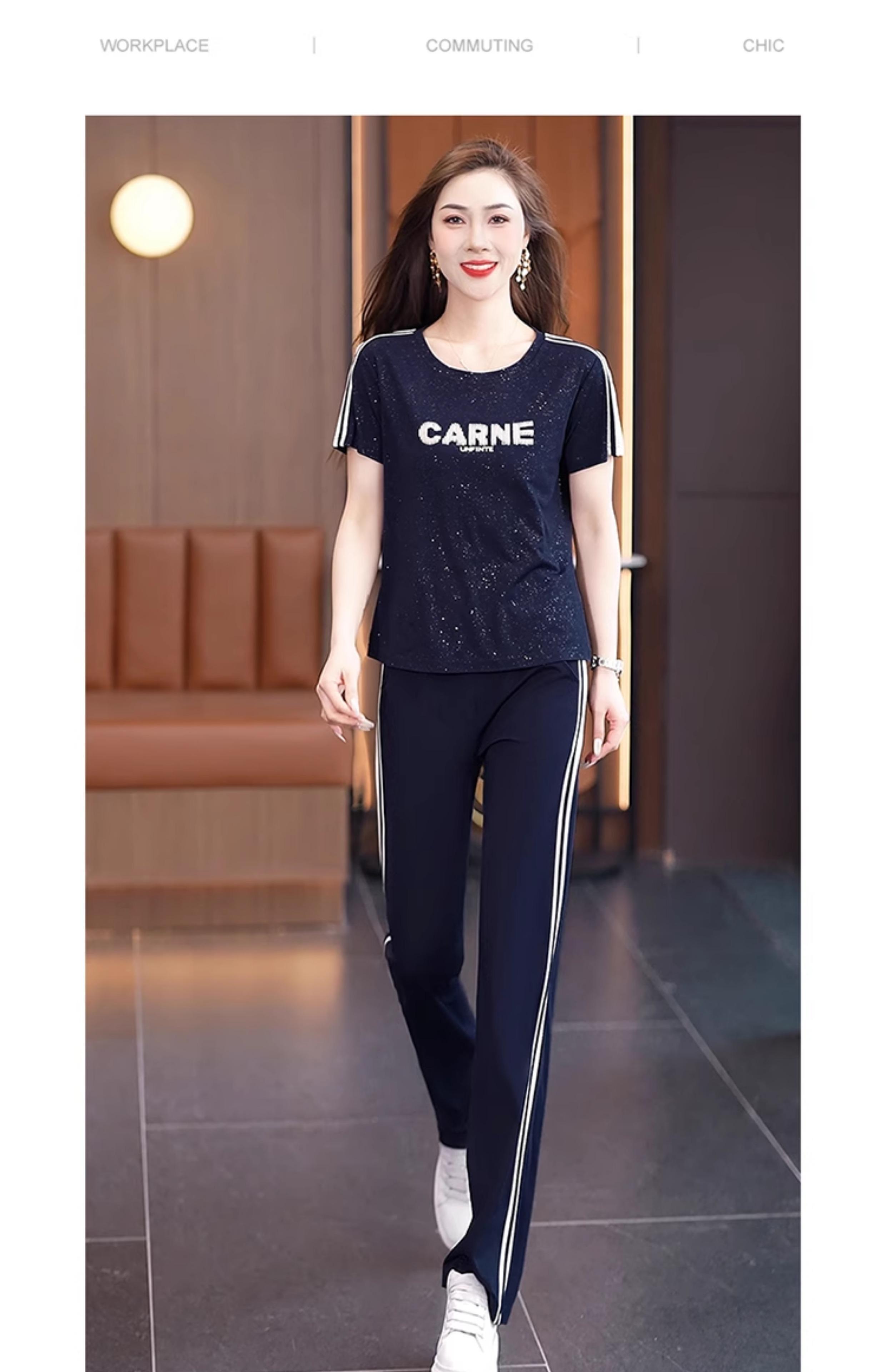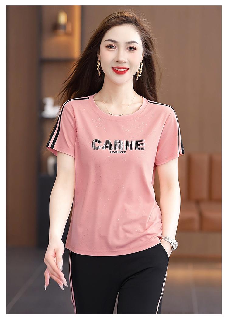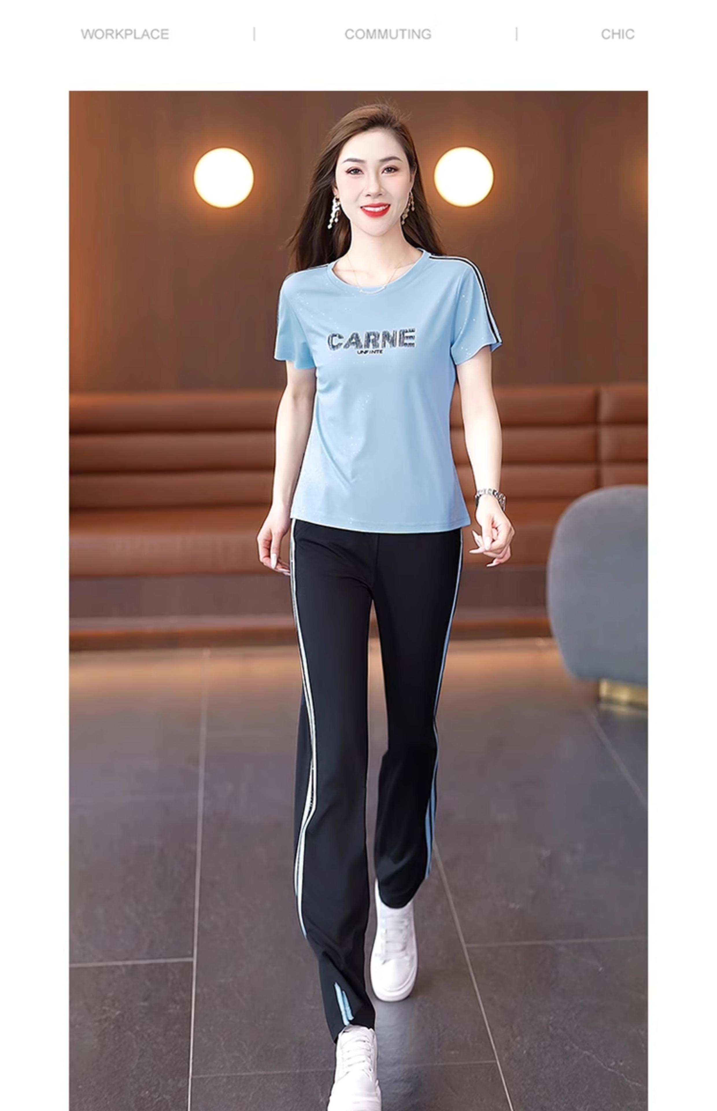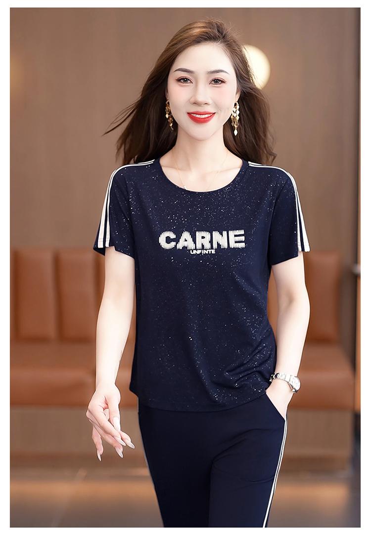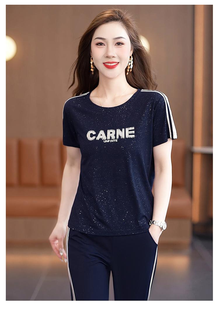 Traje deportivo para mujer Verano 2025 Nueva moda Estilo occidental Madre Seda de hielo Manga corta Reductor de edad Casual Para correr Conjunto de dos piezas