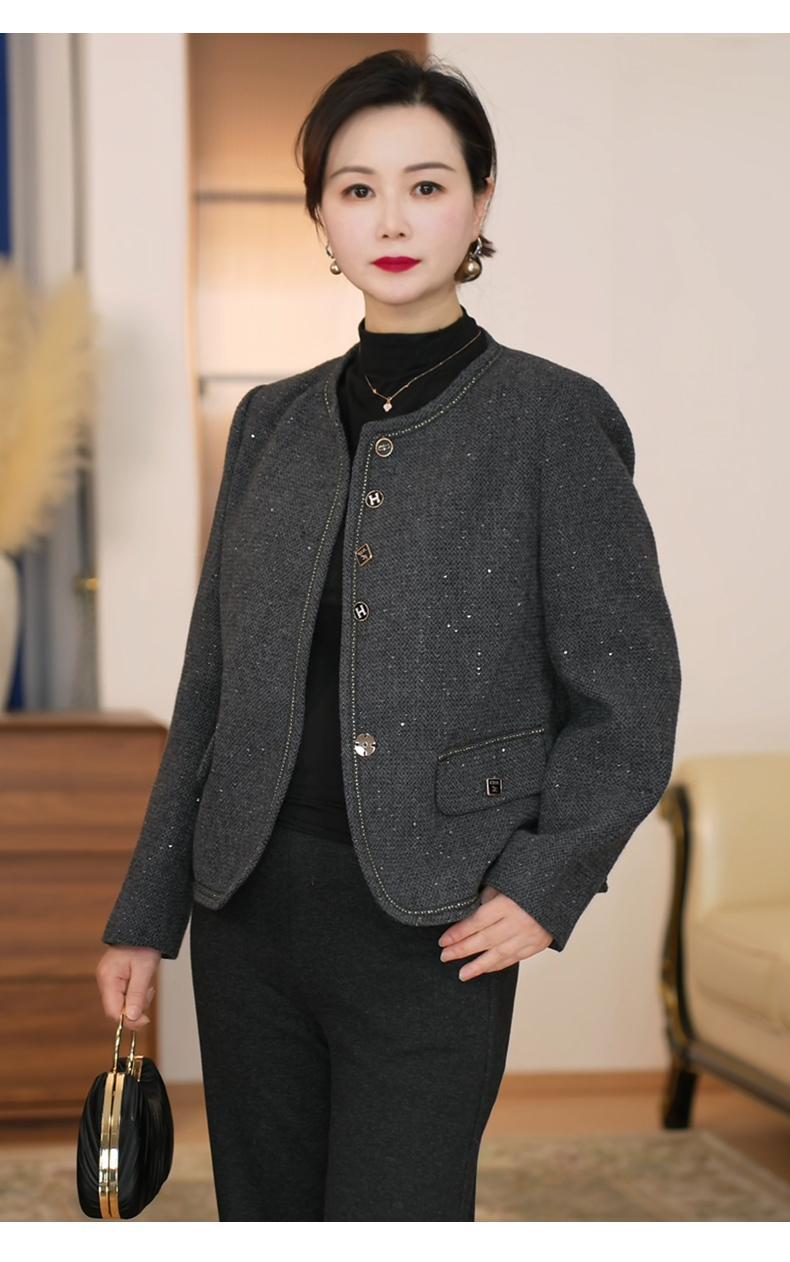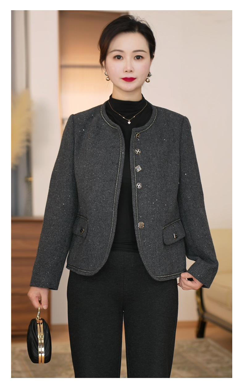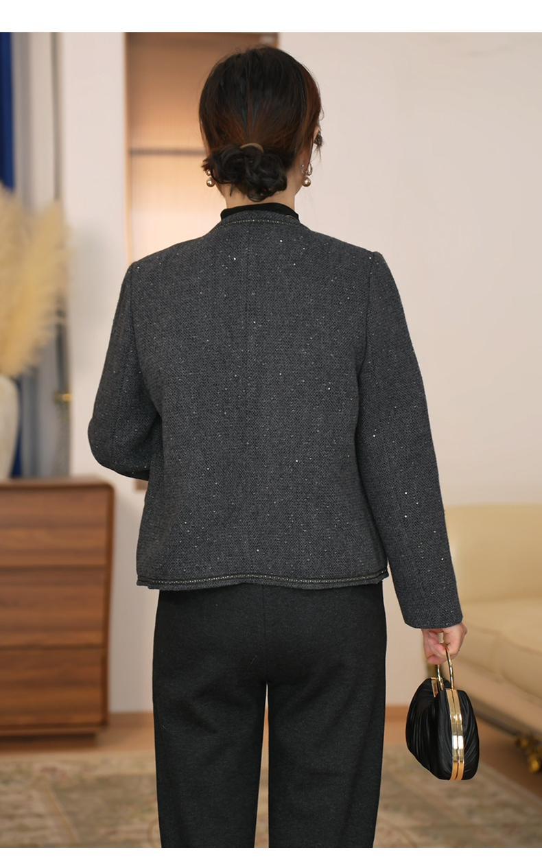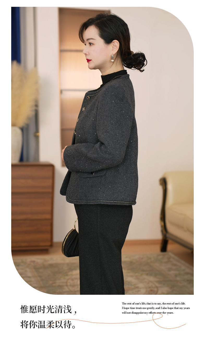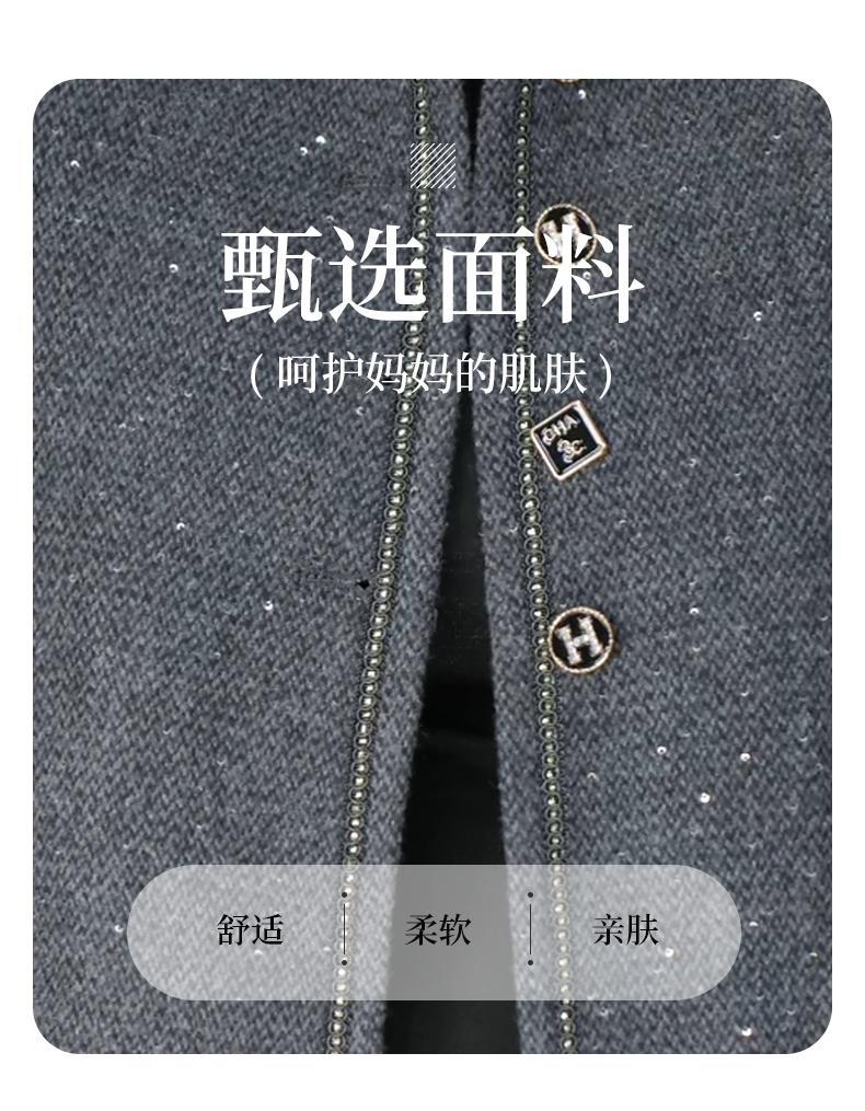 Vestido Casual de Primavera 2025 para Madre Moda Estilo Occidental Adelgazante Temperamento Reductor de Edad Lentejuela Traje Chino Nuevo Chaqueta Día de la Madre