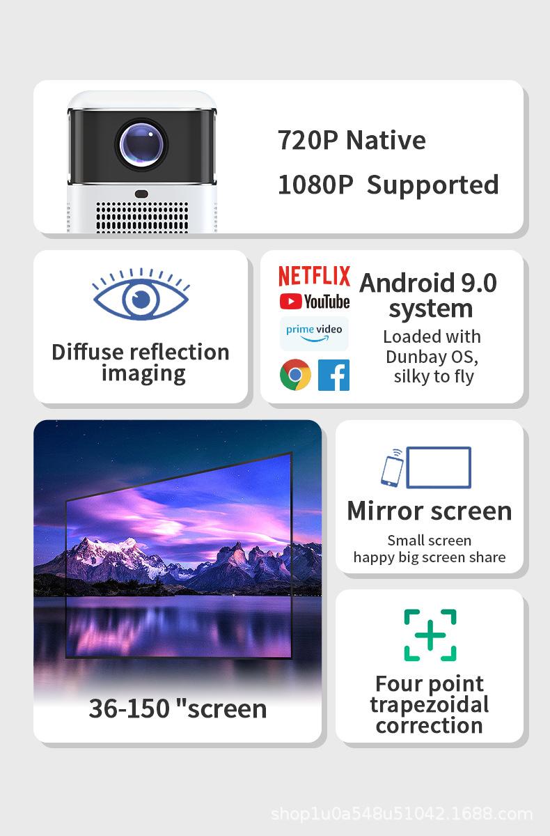 Proyector HD S2 blanco para teléfono móvil, pantalla para dormitorio, sala de estar, cine en casa, proyector para dormitorio, novedad de 2025