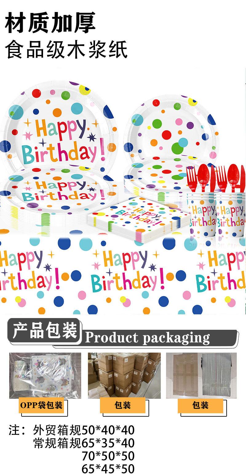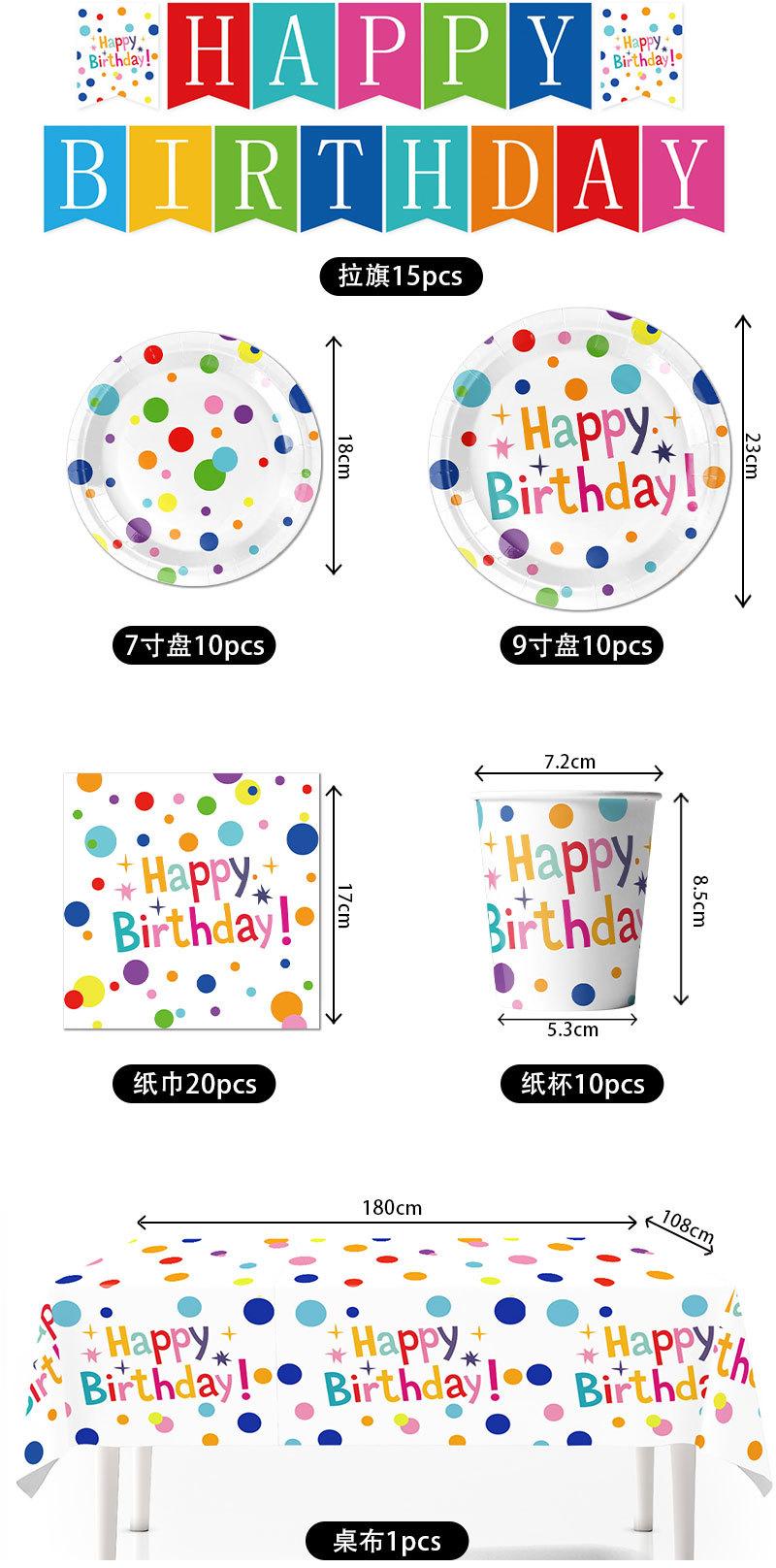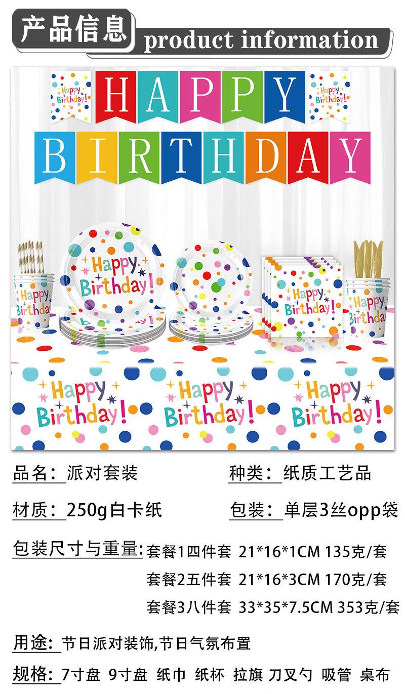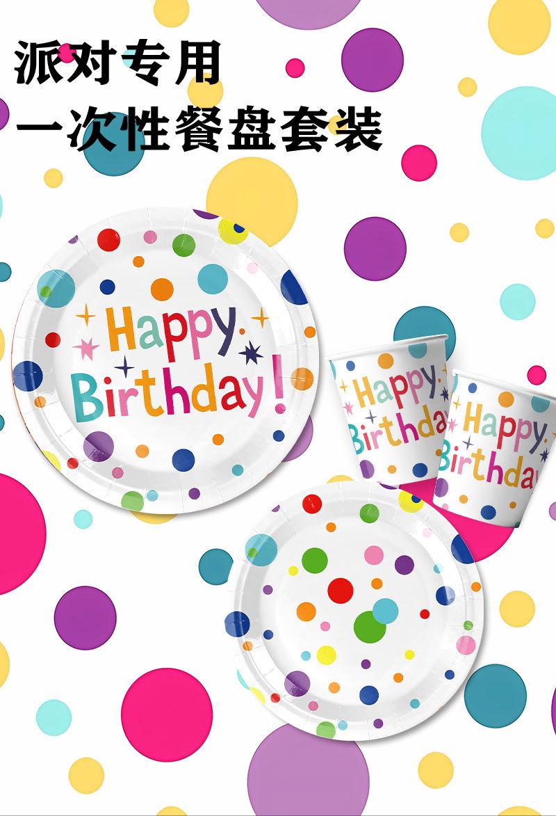 Nuevos suministros para fiestas temáticas de cumpleaños con lunares coloridos, vajilla, decoración para pasteles, bandeja de papel, vasos de papel, arreglo de pañuelos, traje
