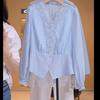 Camisa de gasa con cuello en V y encaje francés para mujer, novedad de 2025, holgada, con mangas acampanadas, fina y elegante, color liso.