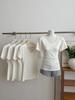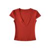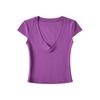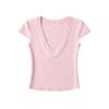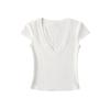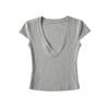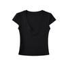 Camiseta Negra de Mujer con Cuello en V y Hombro de Manga Corta Verano Manga Media Ajustada Base Interior Top con Cintura Pellizcada Ajustado para Primavera