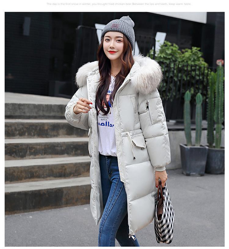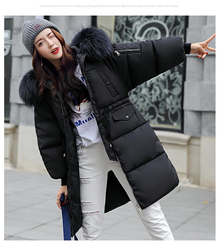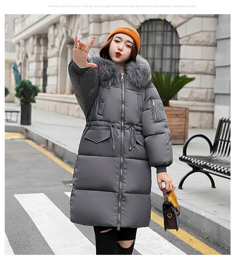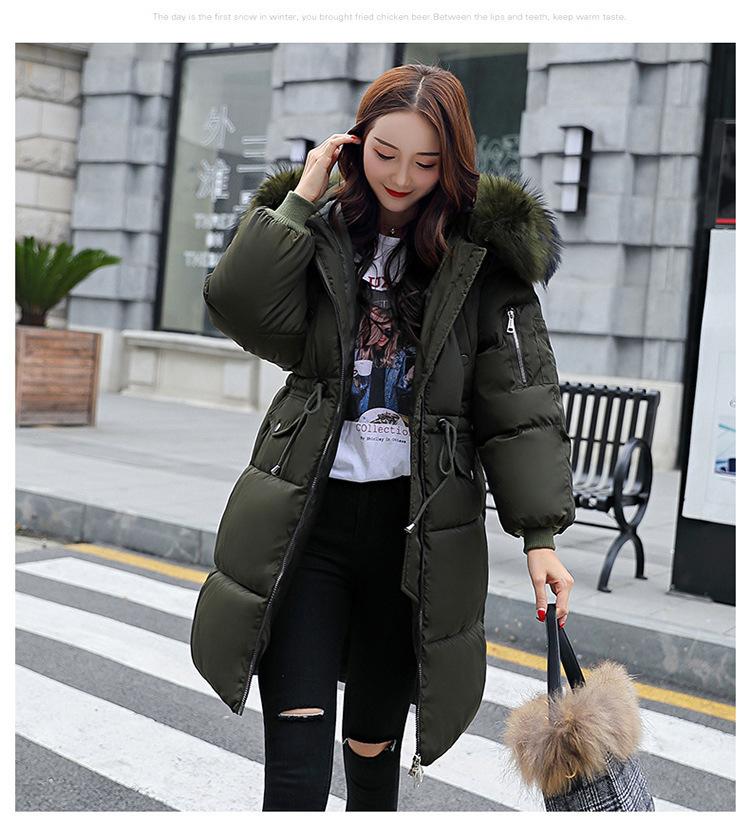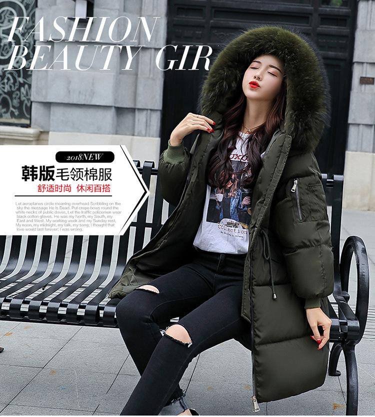 Chaqueta de plumón para mujer fuera de temporada, mediana y larga, chaqueta de algodón de corte ajustado, nuevo estilo coreano 2018, chaqueta de algodón gruesa que ciñe la cintura
