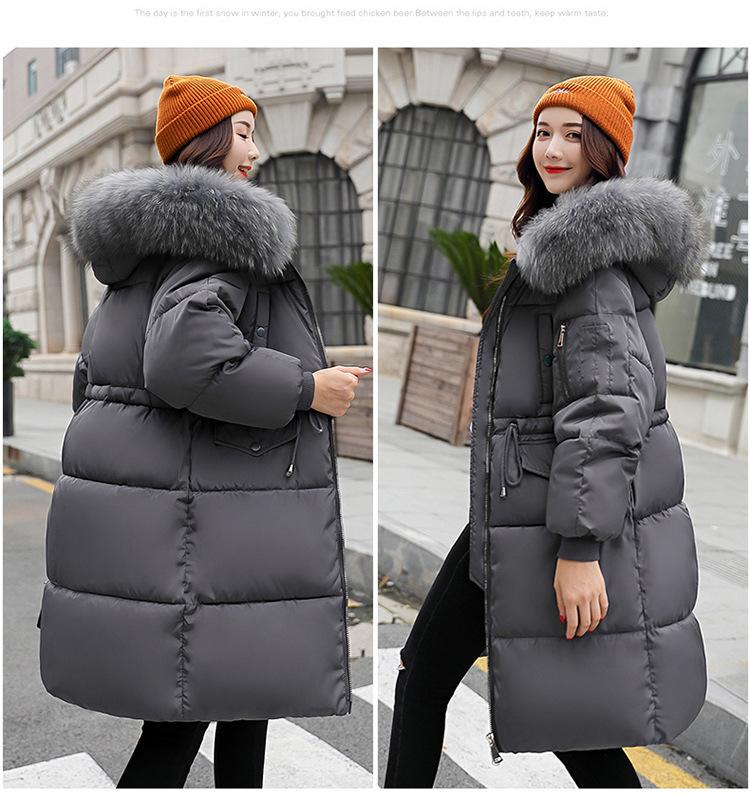 Chaqueta acolchada de plumón para mujer de longitud media, traje de pan, cuello de piel grande, chaqueta acolchada de algodón 2024 nuevo lote de abrigo de chaqueta acolchada de algodón gruesa versión coreana
