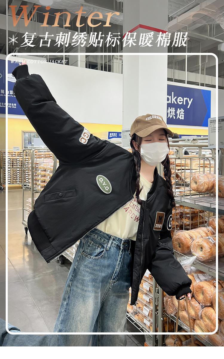 Chaqueta corta de algodón acolchada con cuello de béisbol estilo coreano para invierno, gruesa y cálida, estilo informal para mujer, chaqueta pequeña de algodón acolchada a la moda.