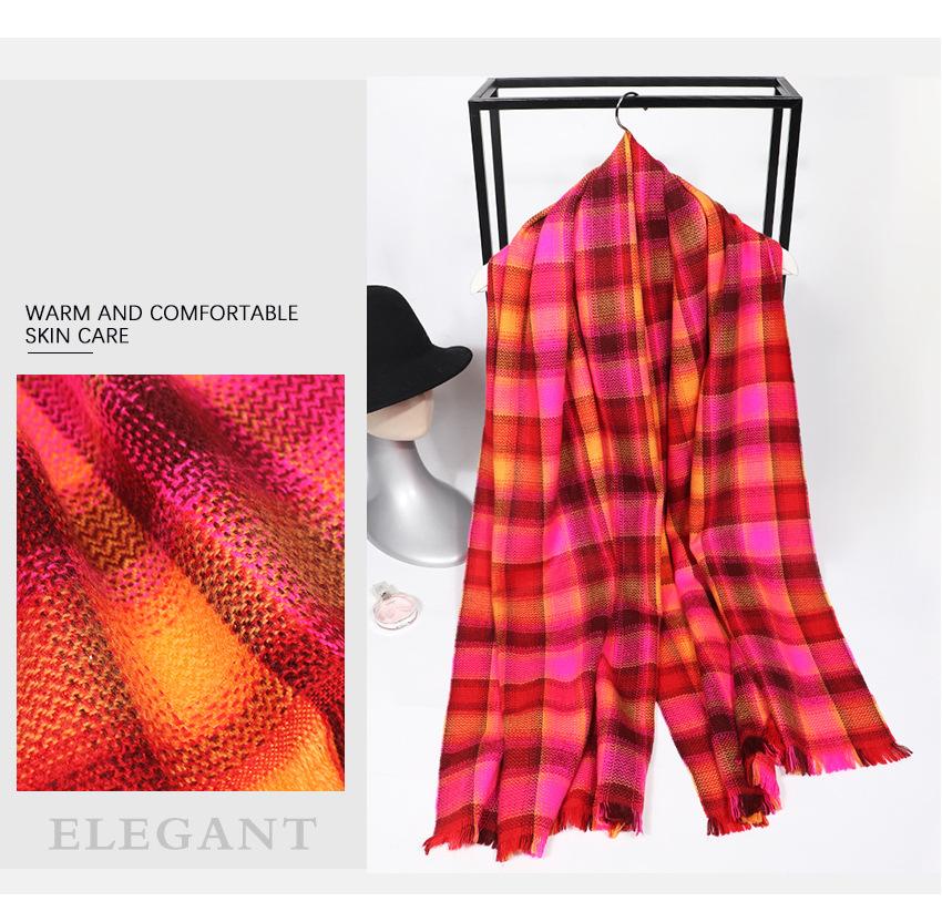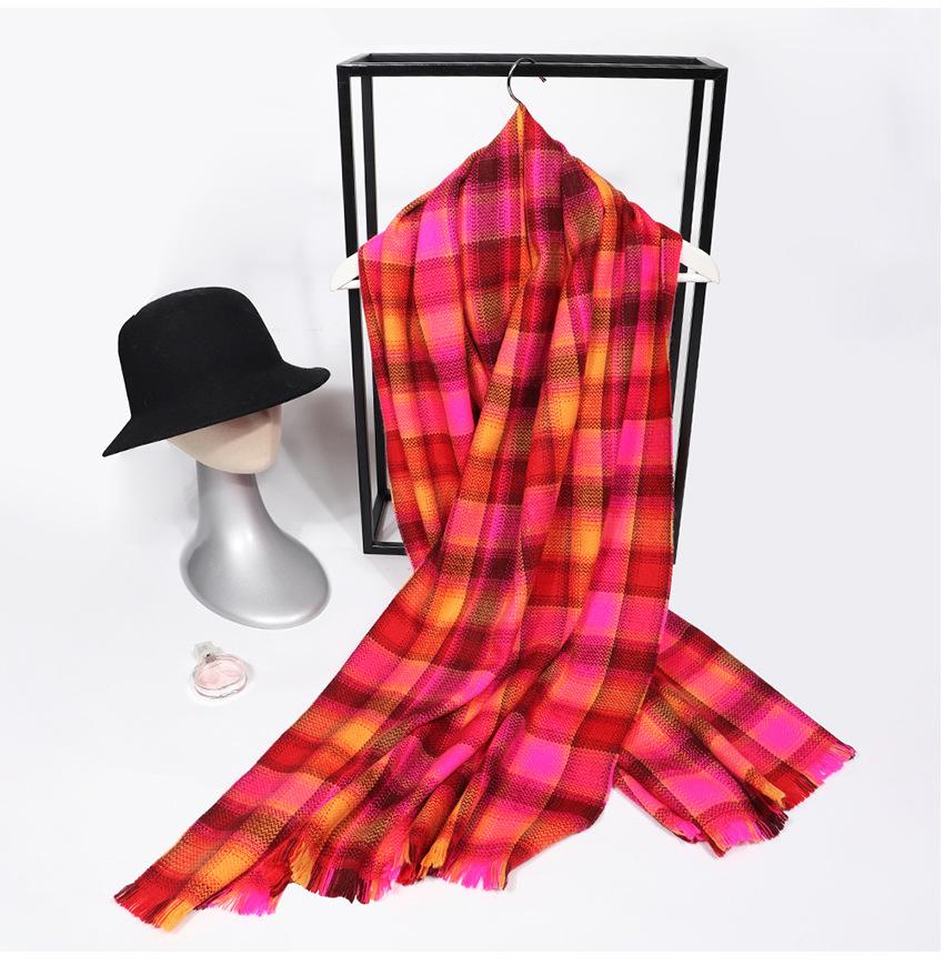 Otoño e invierno nuevo rojo púrpura cuadros suave mediano grueso imitación cachemira bufanda cálida de invierno para mujer fabricantes de chal de comercio exterior cabello