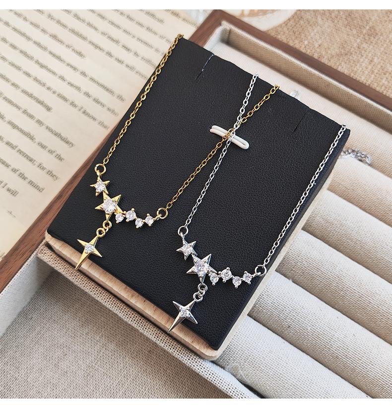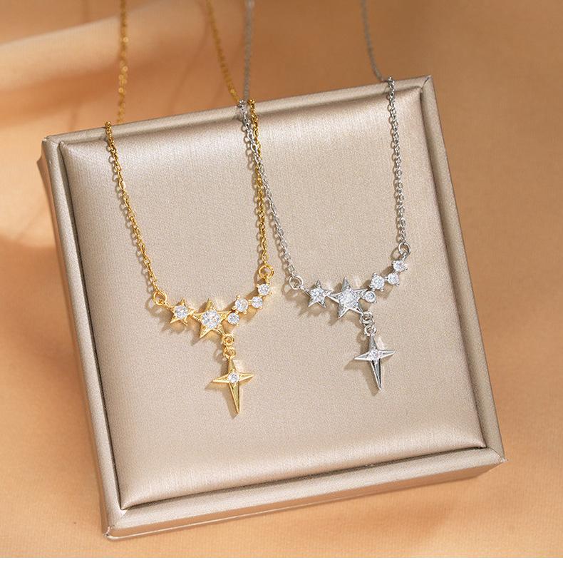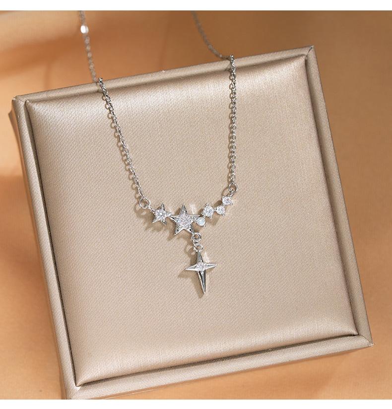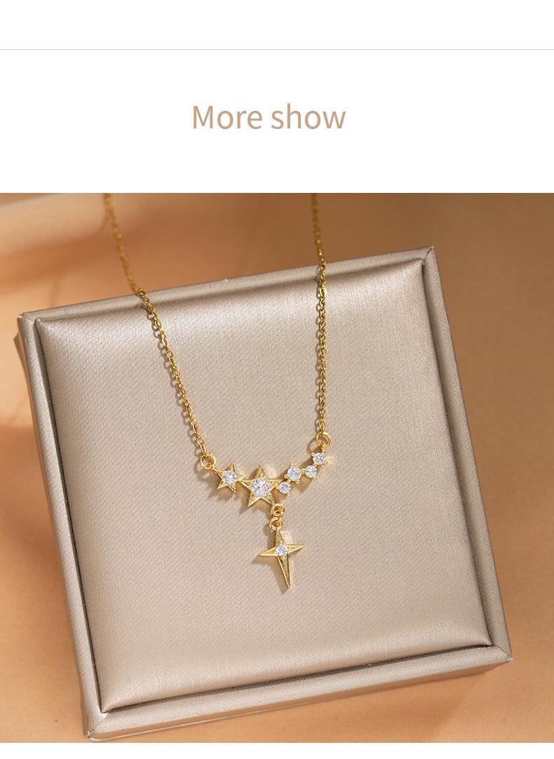 Collar de Acero de Titanio con Colgante de Borla de Estrella de Diseño de Personalidad de Nuevo Estilo Coreano para Mujer, Elegante, Combinable con Todo, Joyería de Diamantes Microincrustados