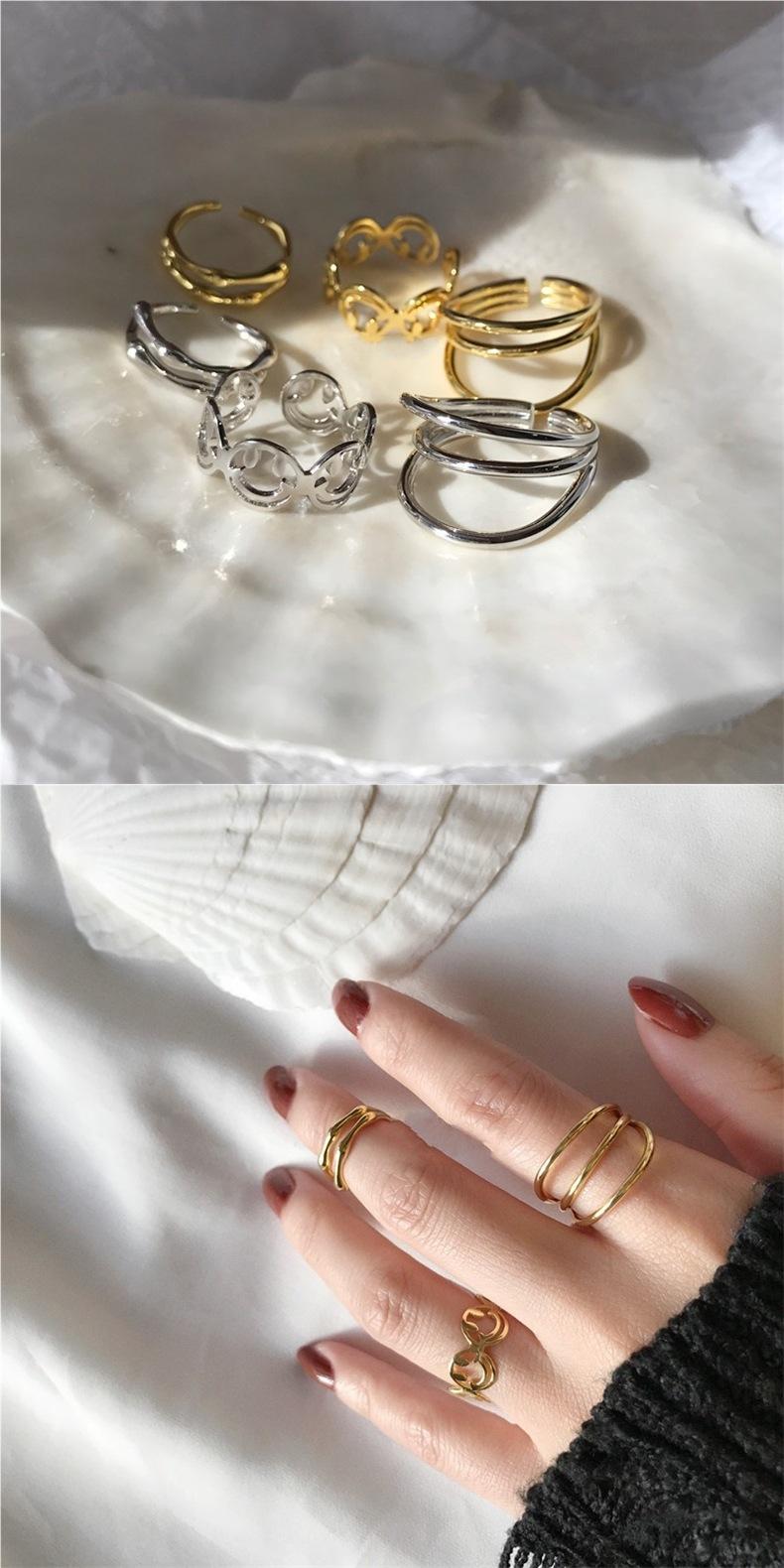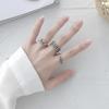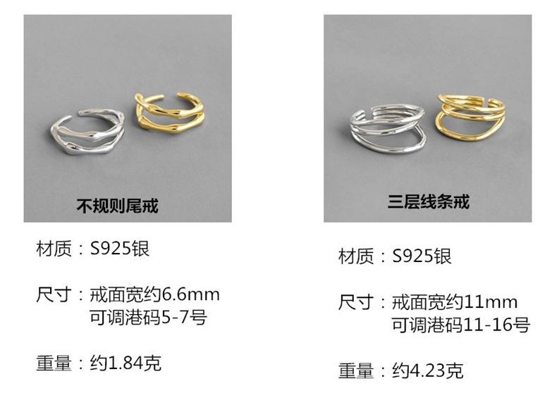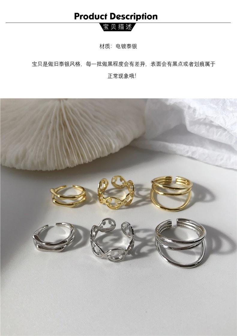 Anillo Asimétrico Coreano S925 Plateado para Mujer Retro Simple Anillo de Línea de Tres Capas Puesto Callejero Trendy Anillo para Dedo Índice Joyería