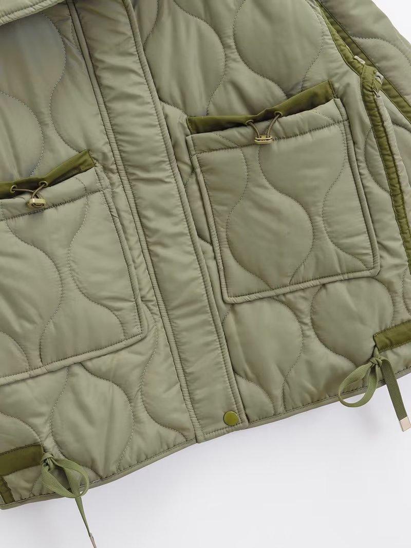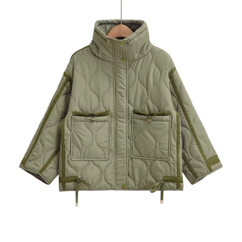 Chamarra Corta de Algodón Holgada de Manga Larga con Cuello Alto y Cierre Cruzado Estilo Y2Kz Europeo y Americano para Mujer F7 Abrigo Corto de Algodón de Moda