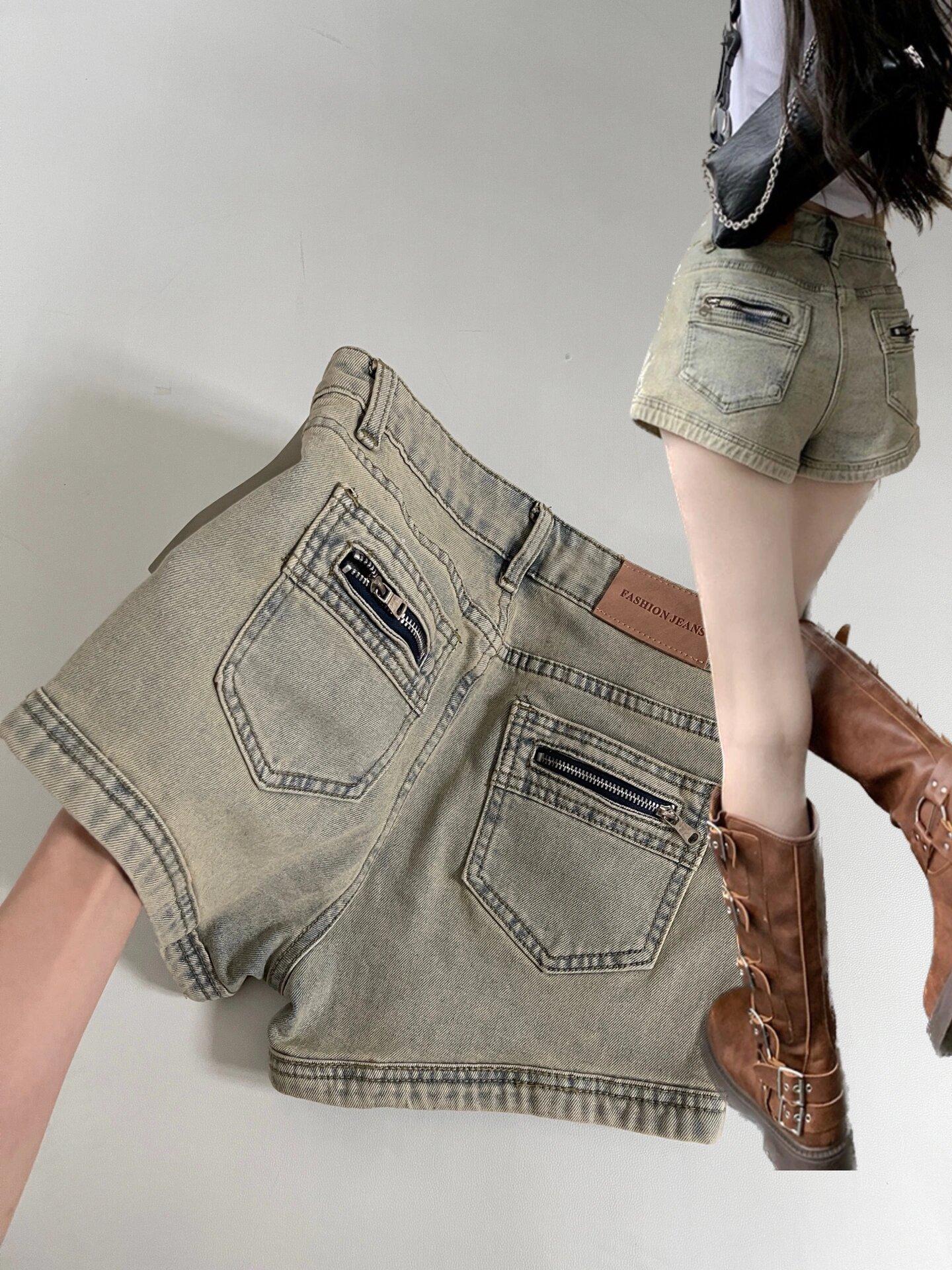 Vintage Versátil Cintura Alta Talla Grande Chica Gordita Adelgazantes Shorts de Mezclilla Verano para Mujer Diseño Pequeño Pantalones Calientes