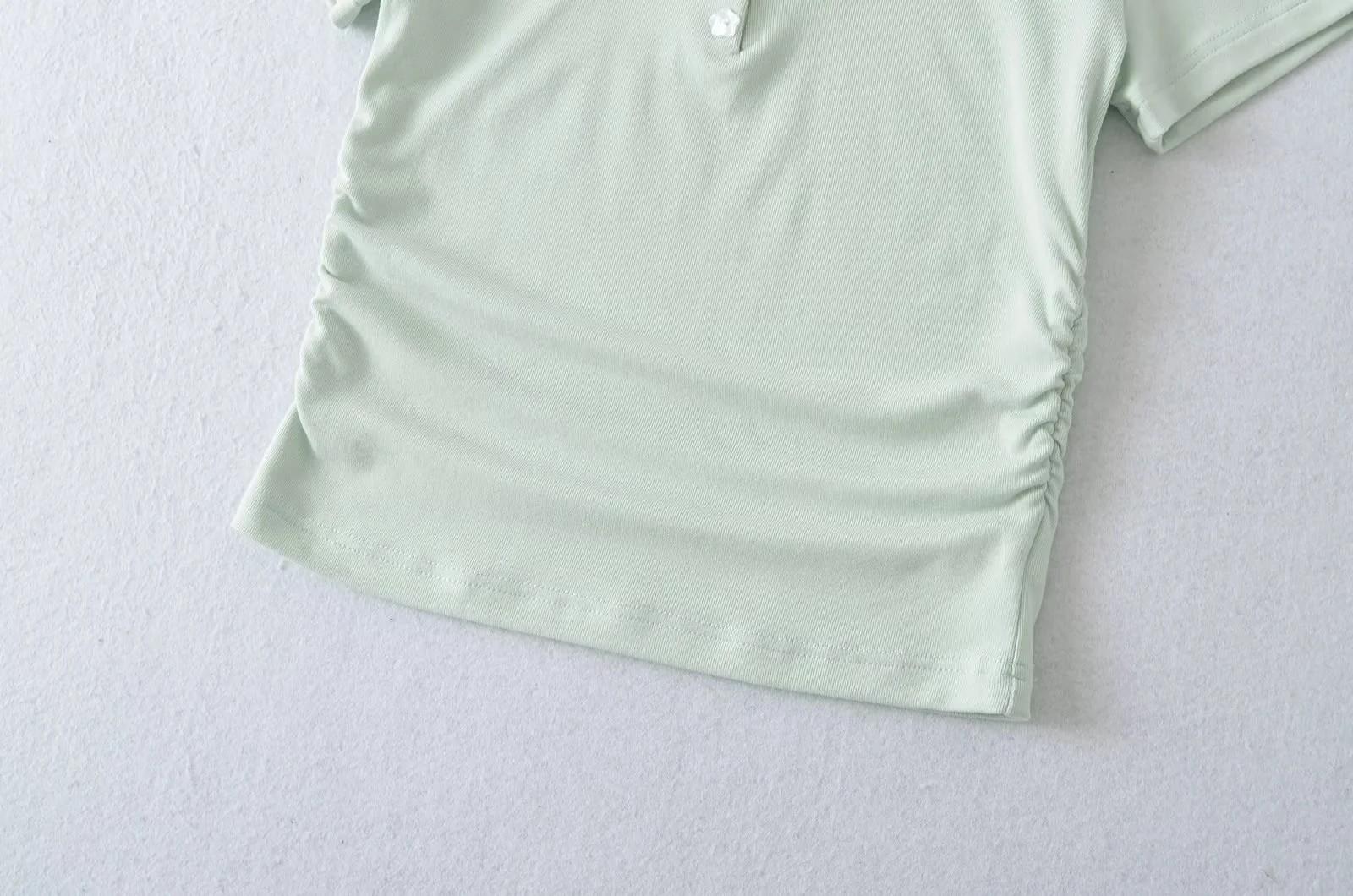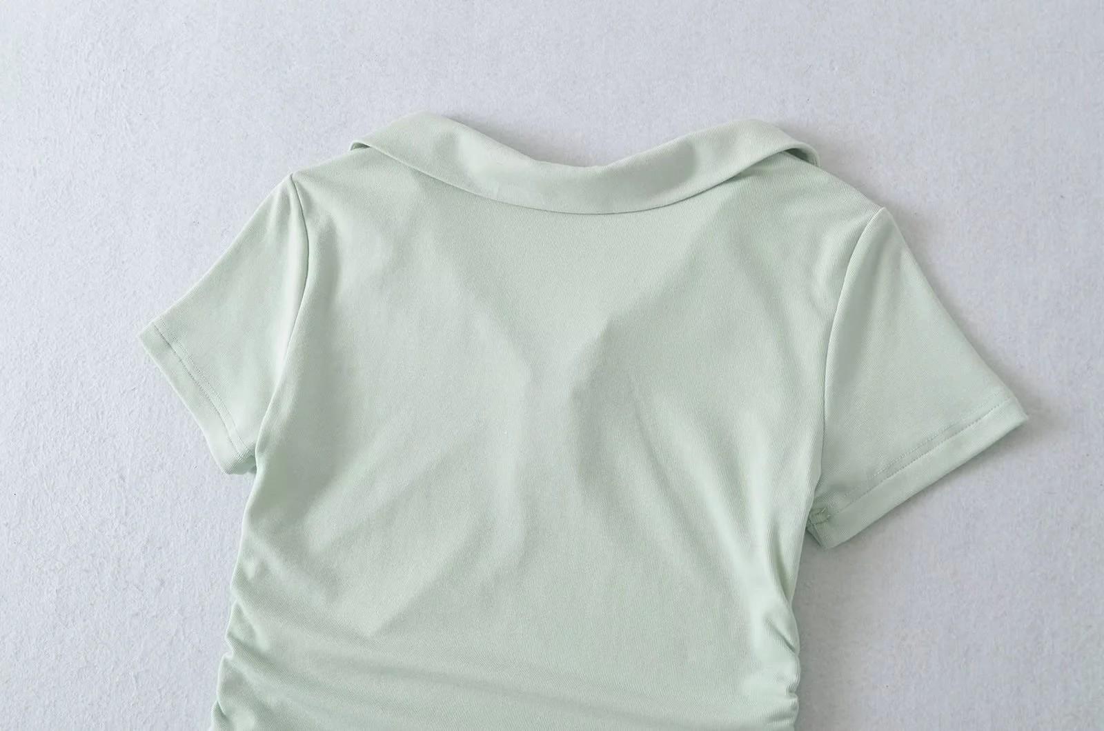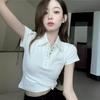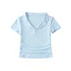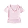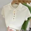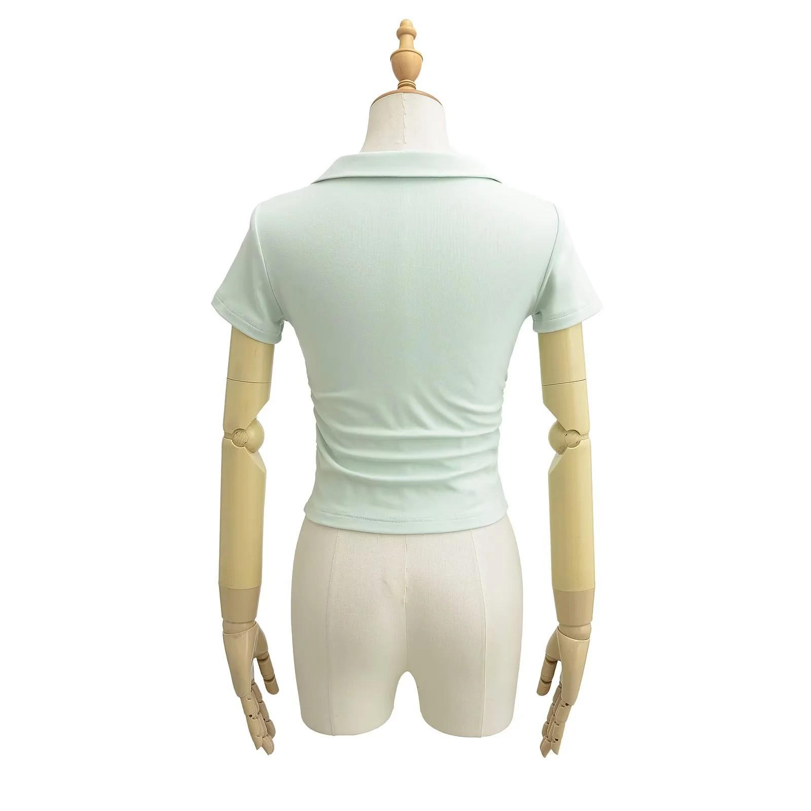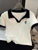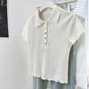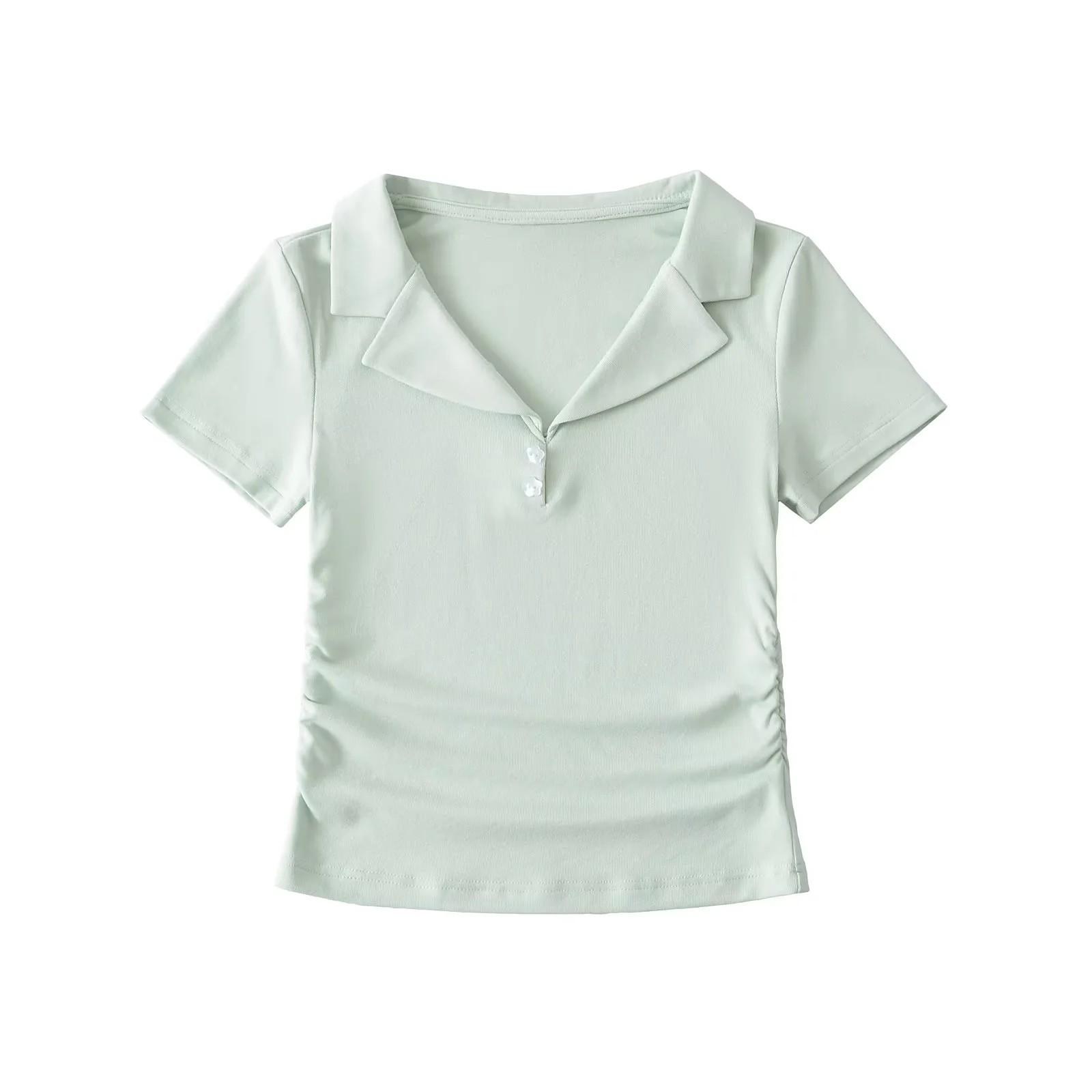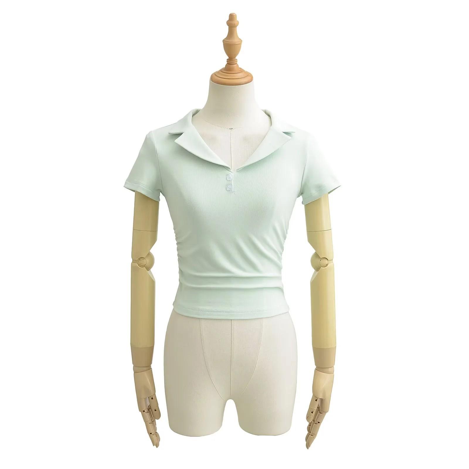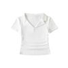 Camiseta de manga corta con cuello polo y hombros para niña, camiseta básica ajustada de verano para mujer