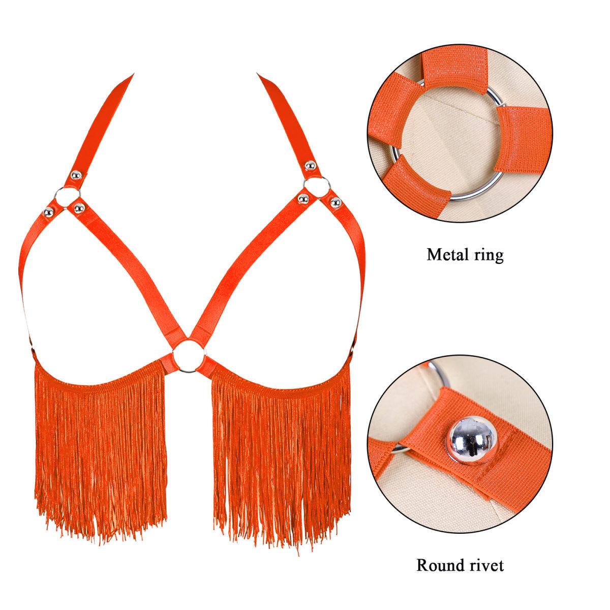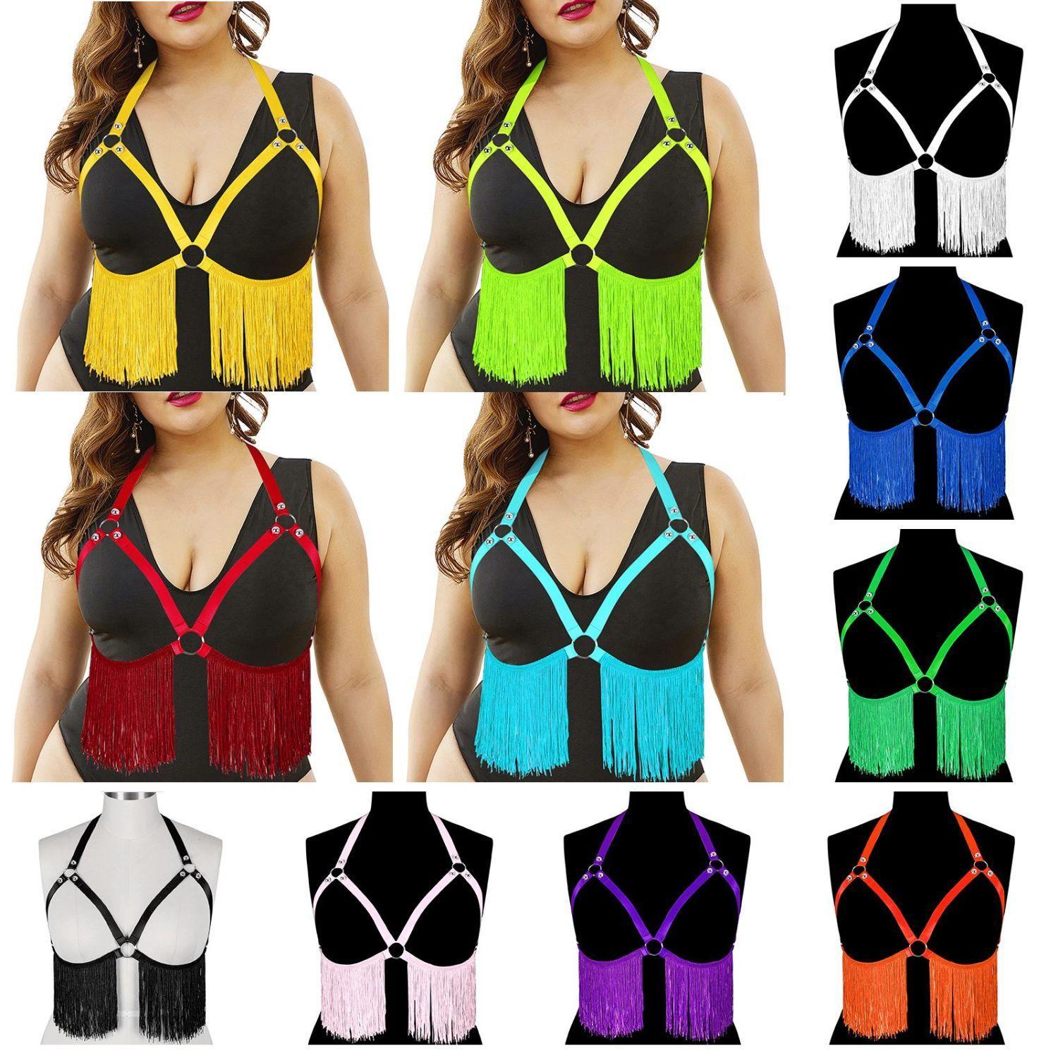 Pys Gótico Tirantes Jaula Accesorios Íntimos Cinturón de Borlas Actuación Escénica Halter Halter Top Sujetador