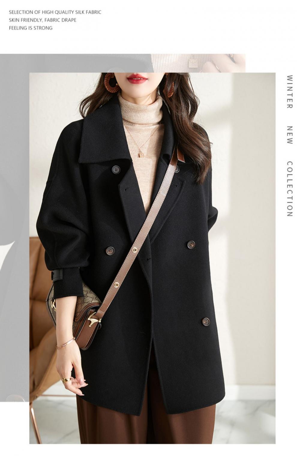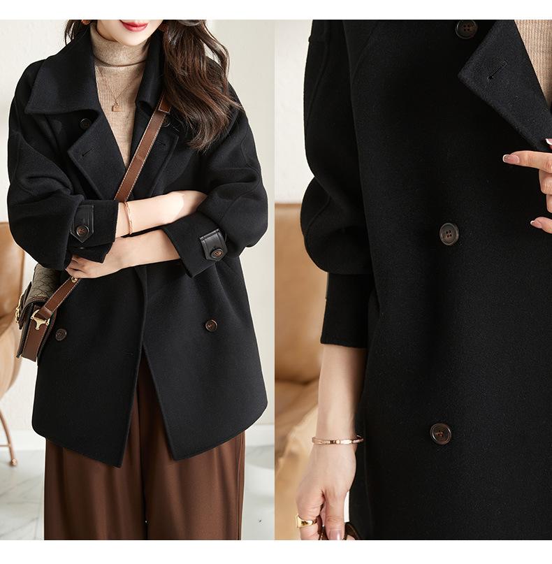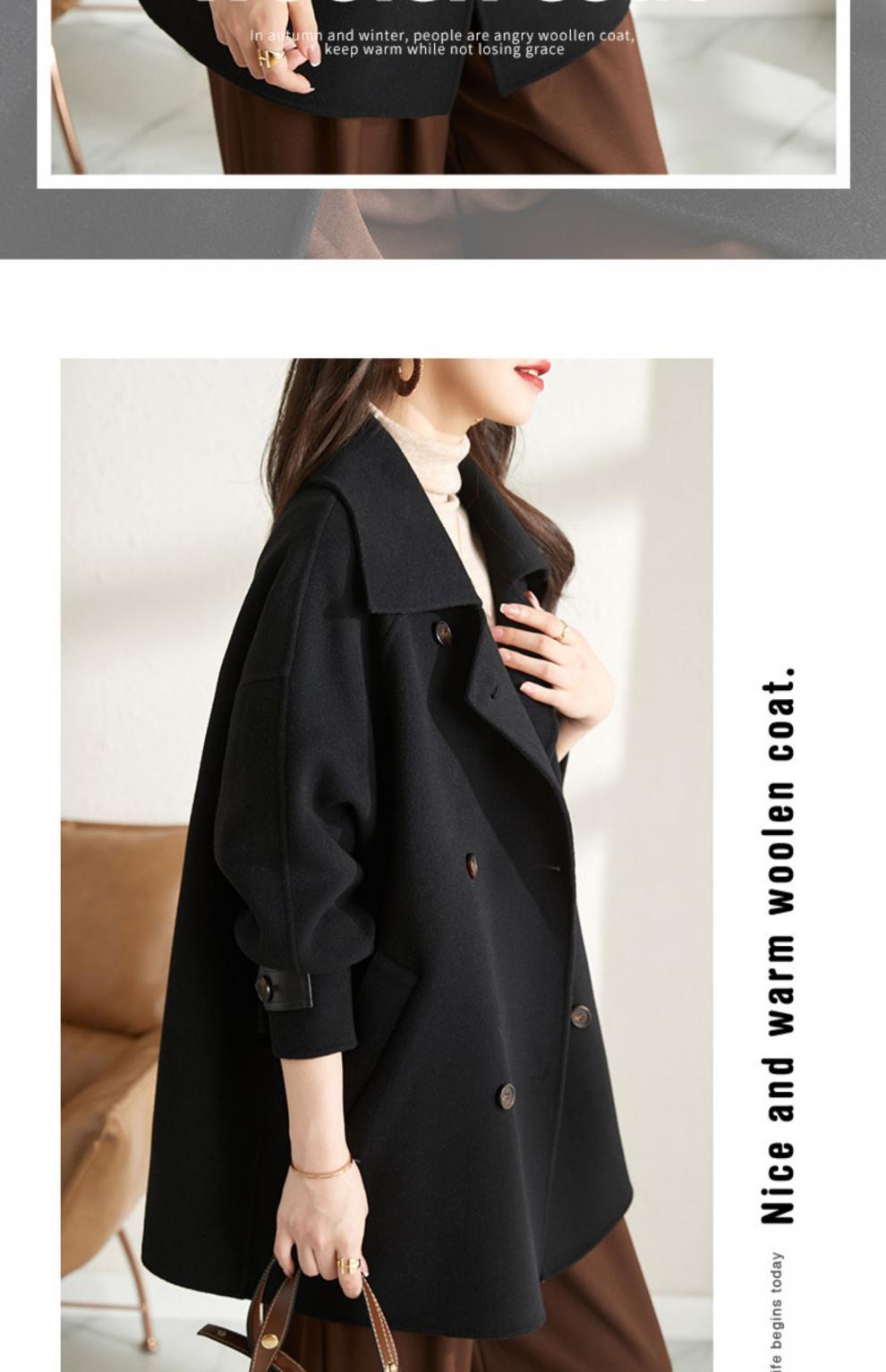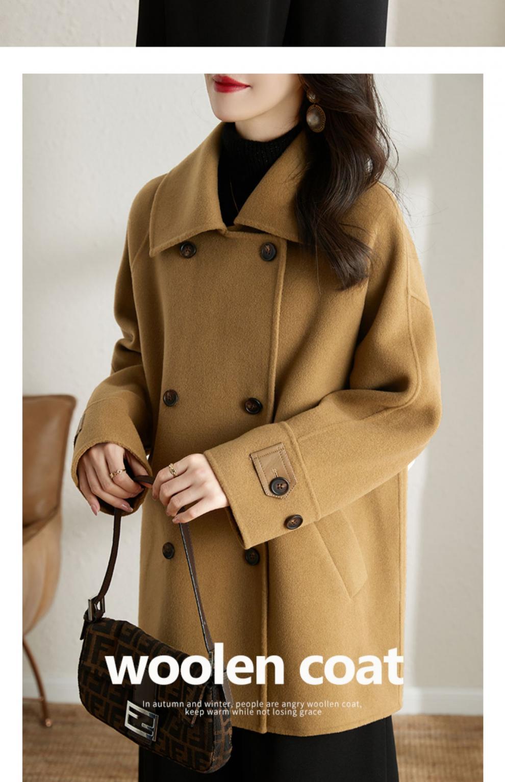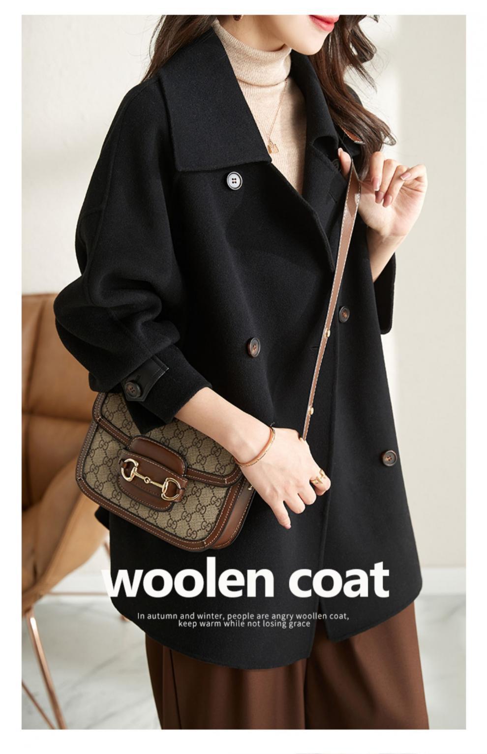 Abrigo de lana cruzado de alta gama para mujer, nuevo estilo de invierno 2024, pequeño, elegante, versátil y grueso.