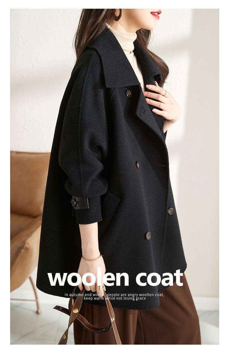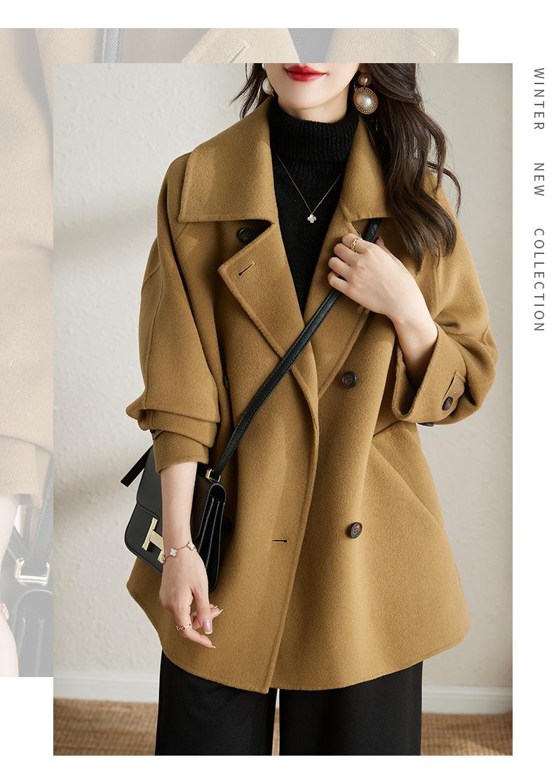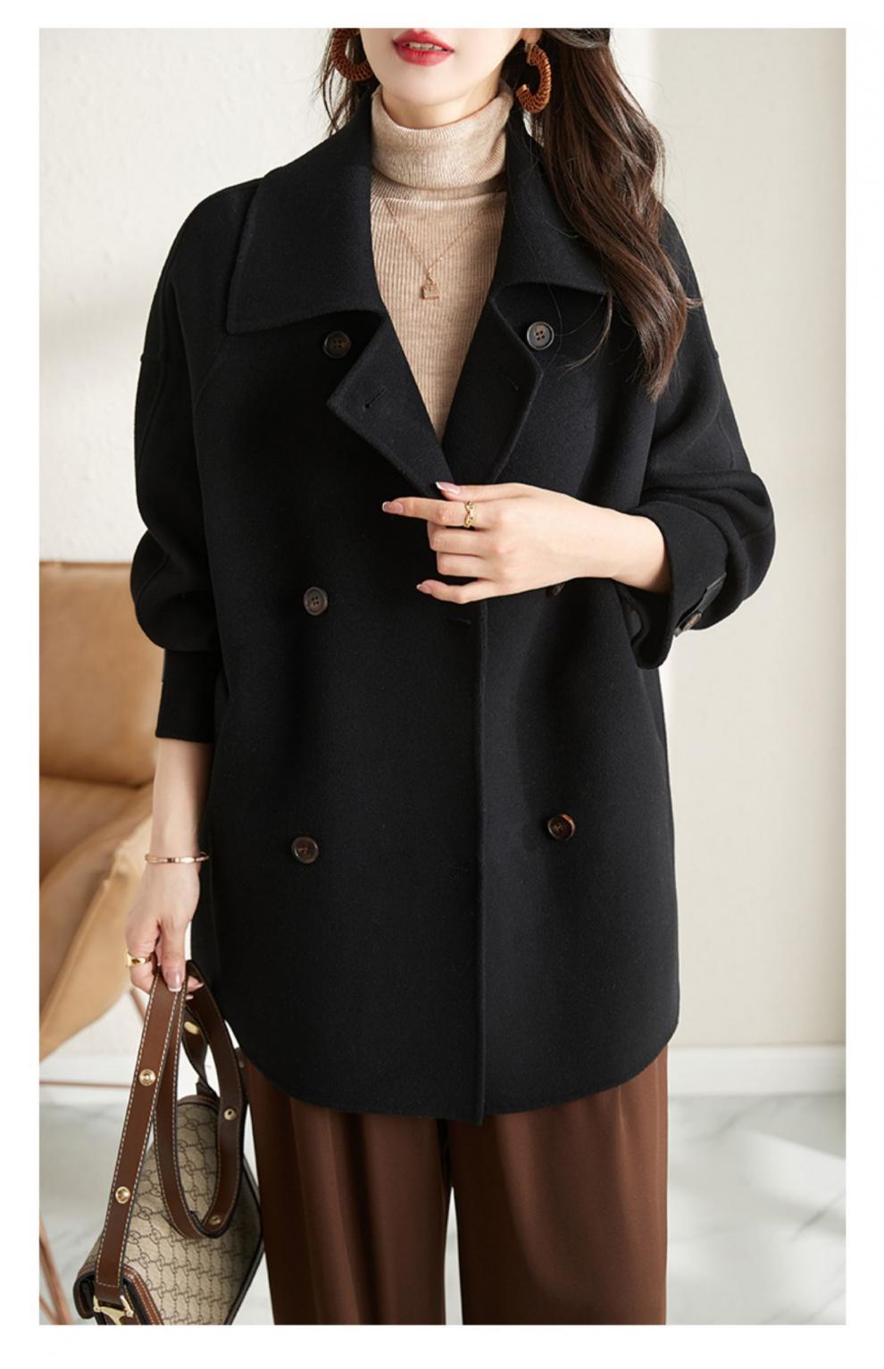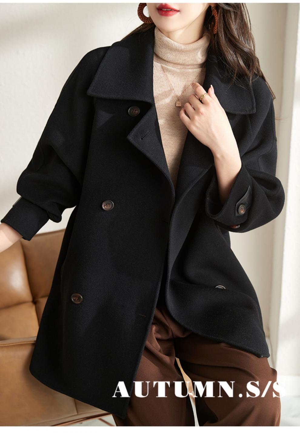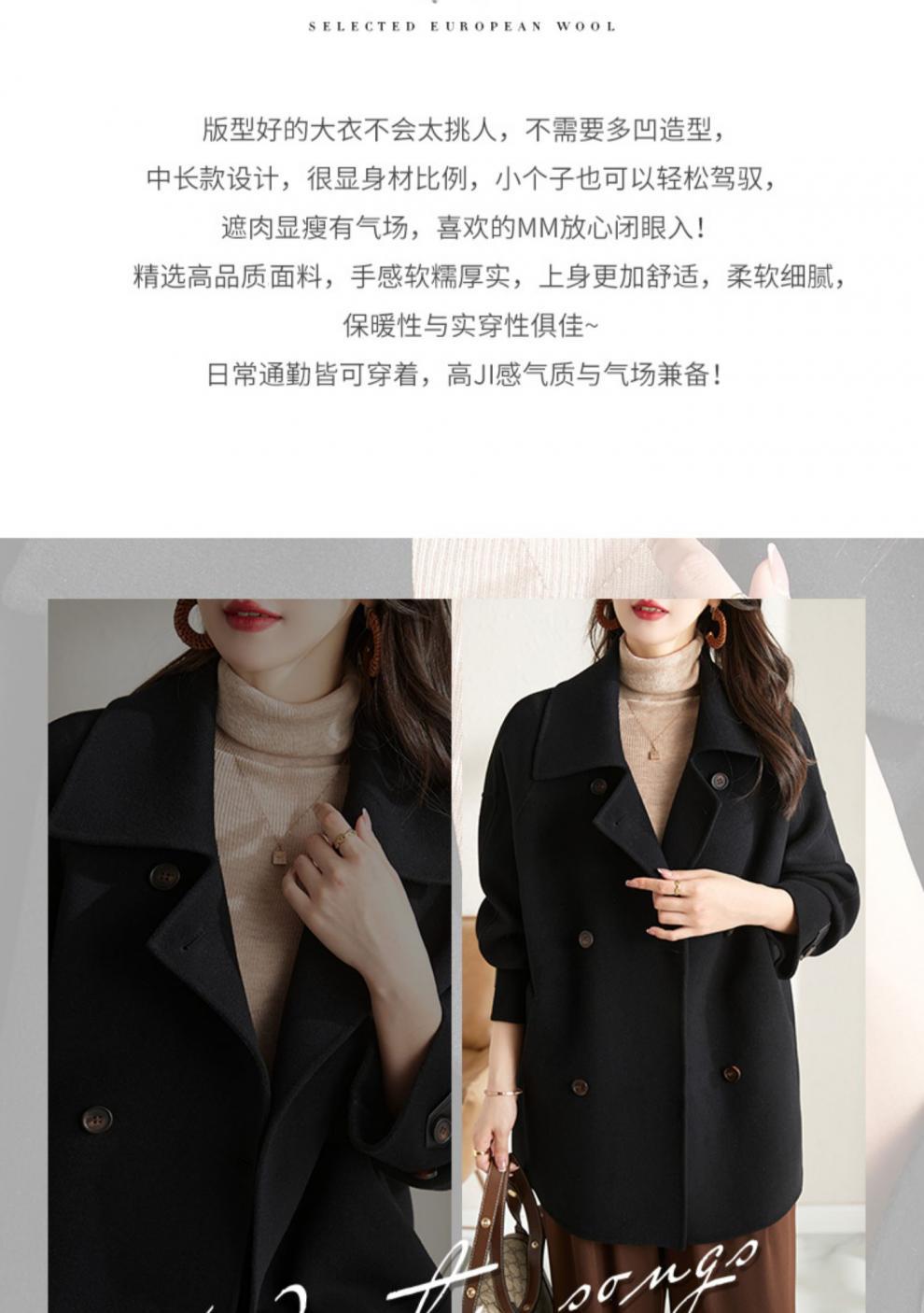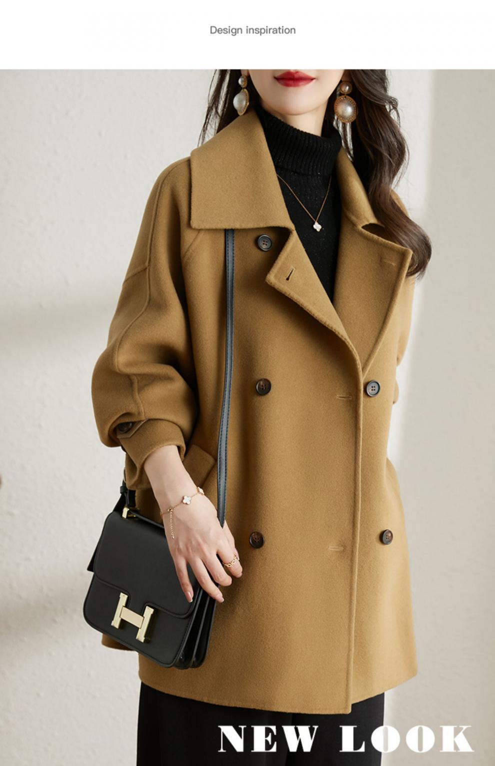 Abrigo de lana cruzado de alta gama para mujer, nuevo estilo de invierno 2024, pequeño, elegante, versátil y grueso.
