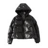 Otoño 2023 nueva ropa transfronteriza europea y americana para mujer, moda callejera, chaqueta de algodón con capucha brillante de cuero sintético, chaqueta de algodón