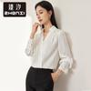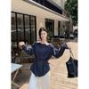Camisa azul drapeada Ropa de Primavera para Mujer 2023 top moderno de estilo retro de Hong Kong camisa profesional urbana casual