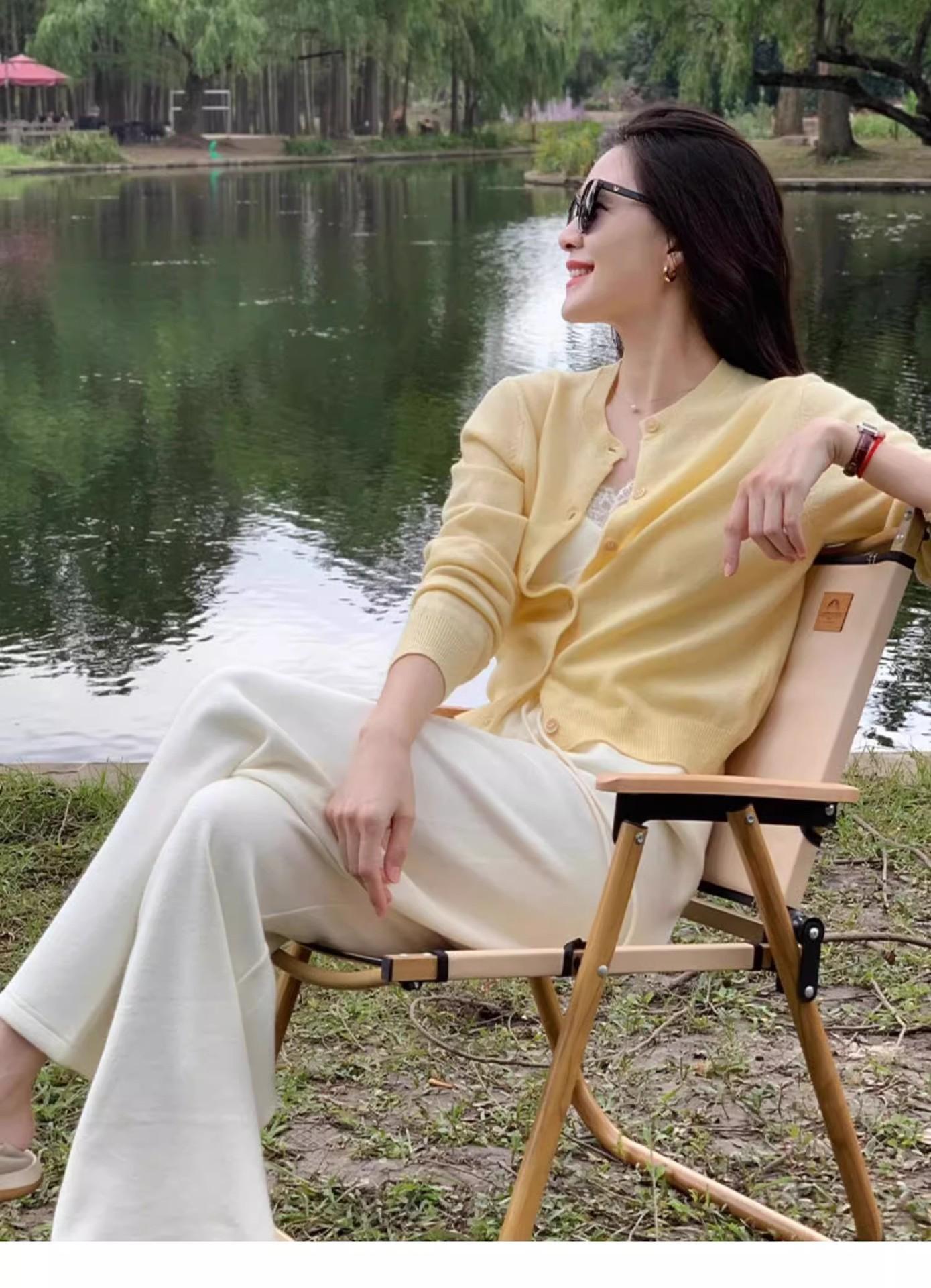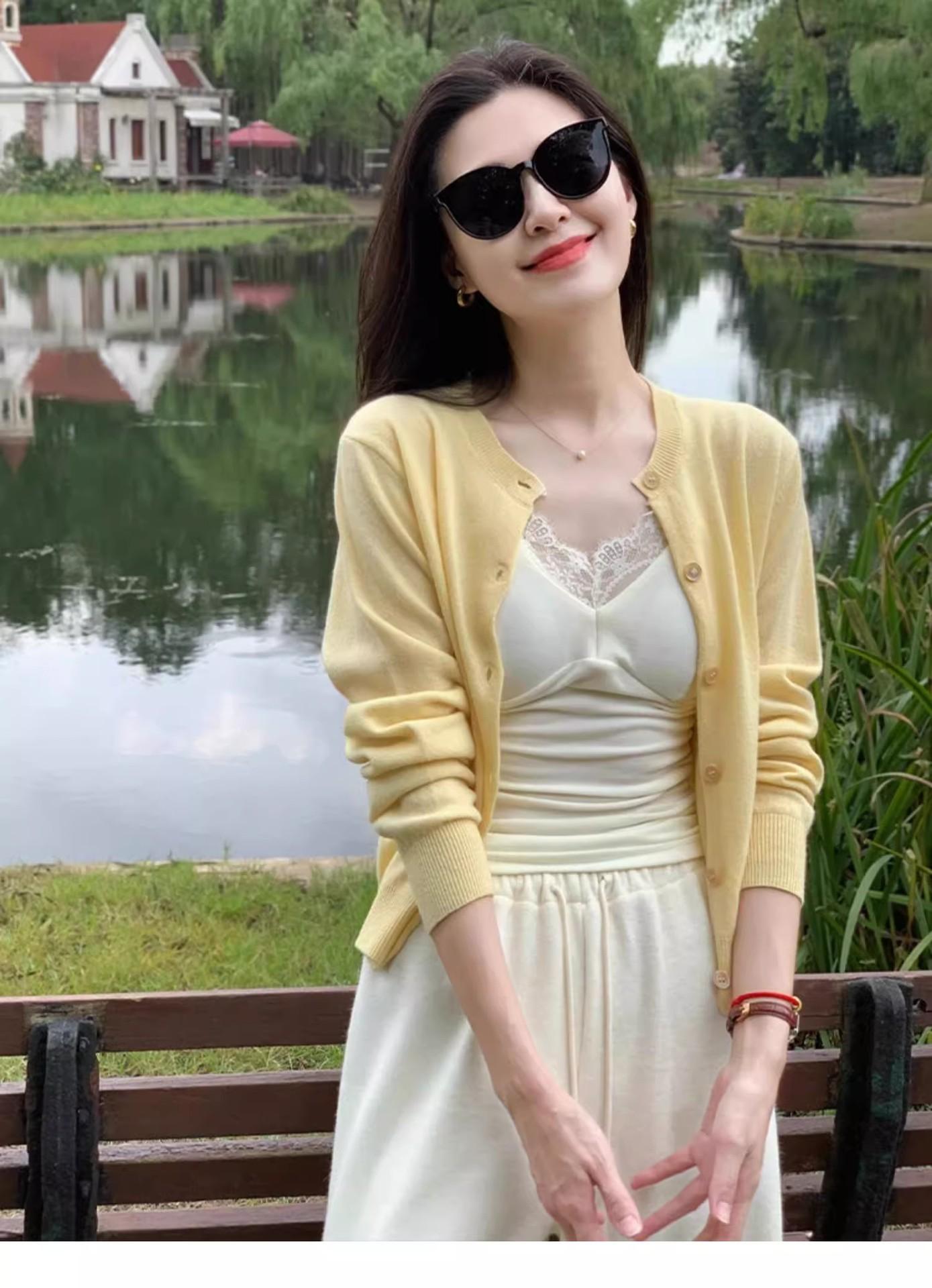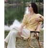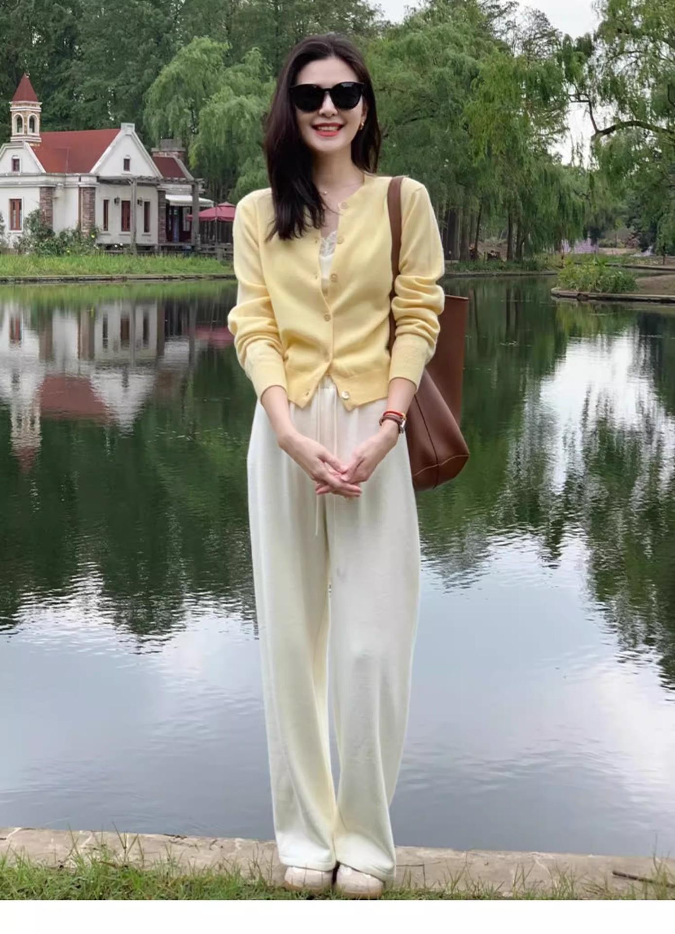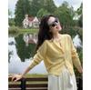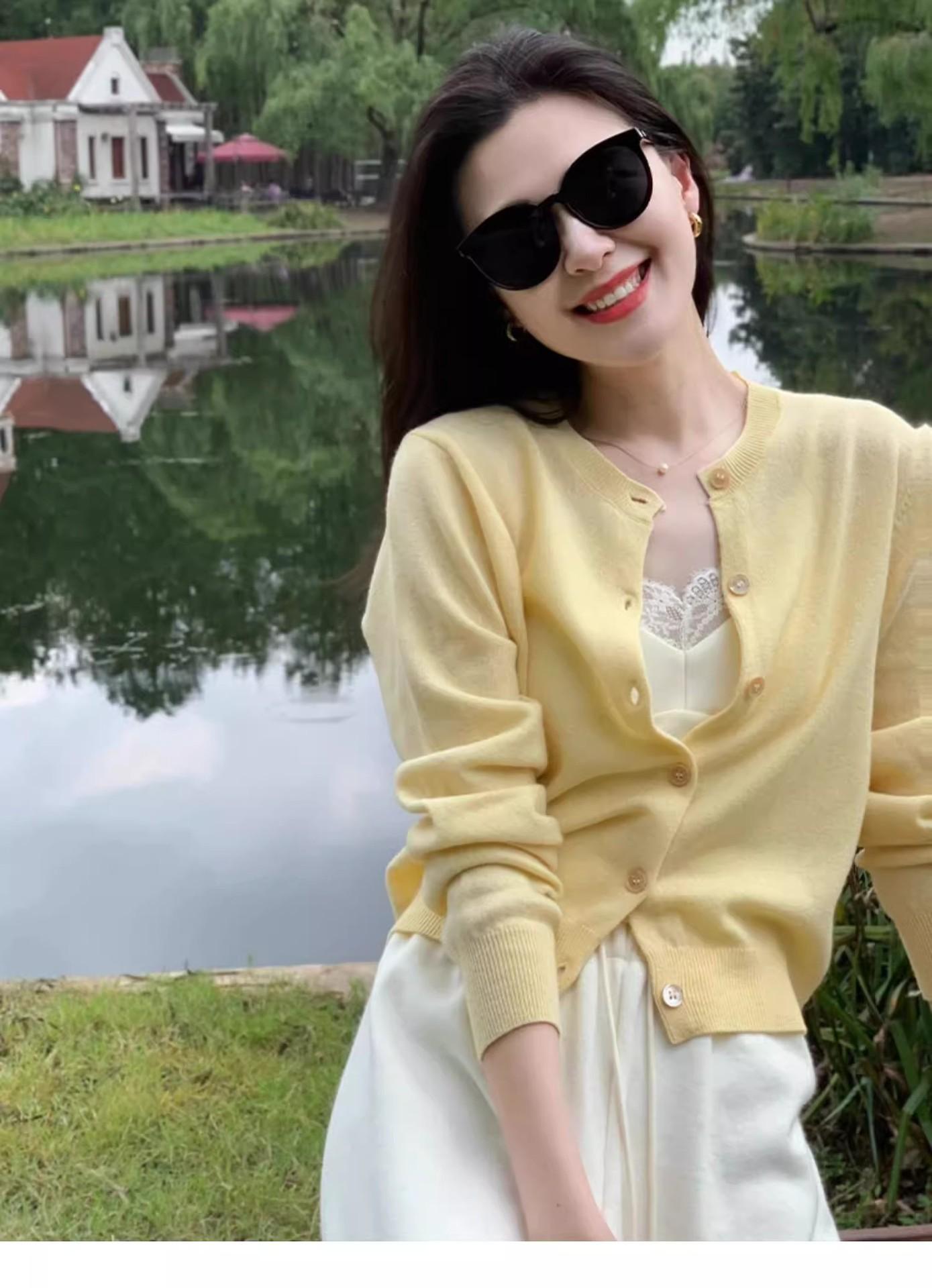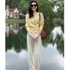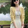 Chaqueta de punto de manga larga amarilla estilo francés Chanel para mujer, suéter de alta gama, prenda exterior con temperamento, top pequeño de primavera