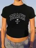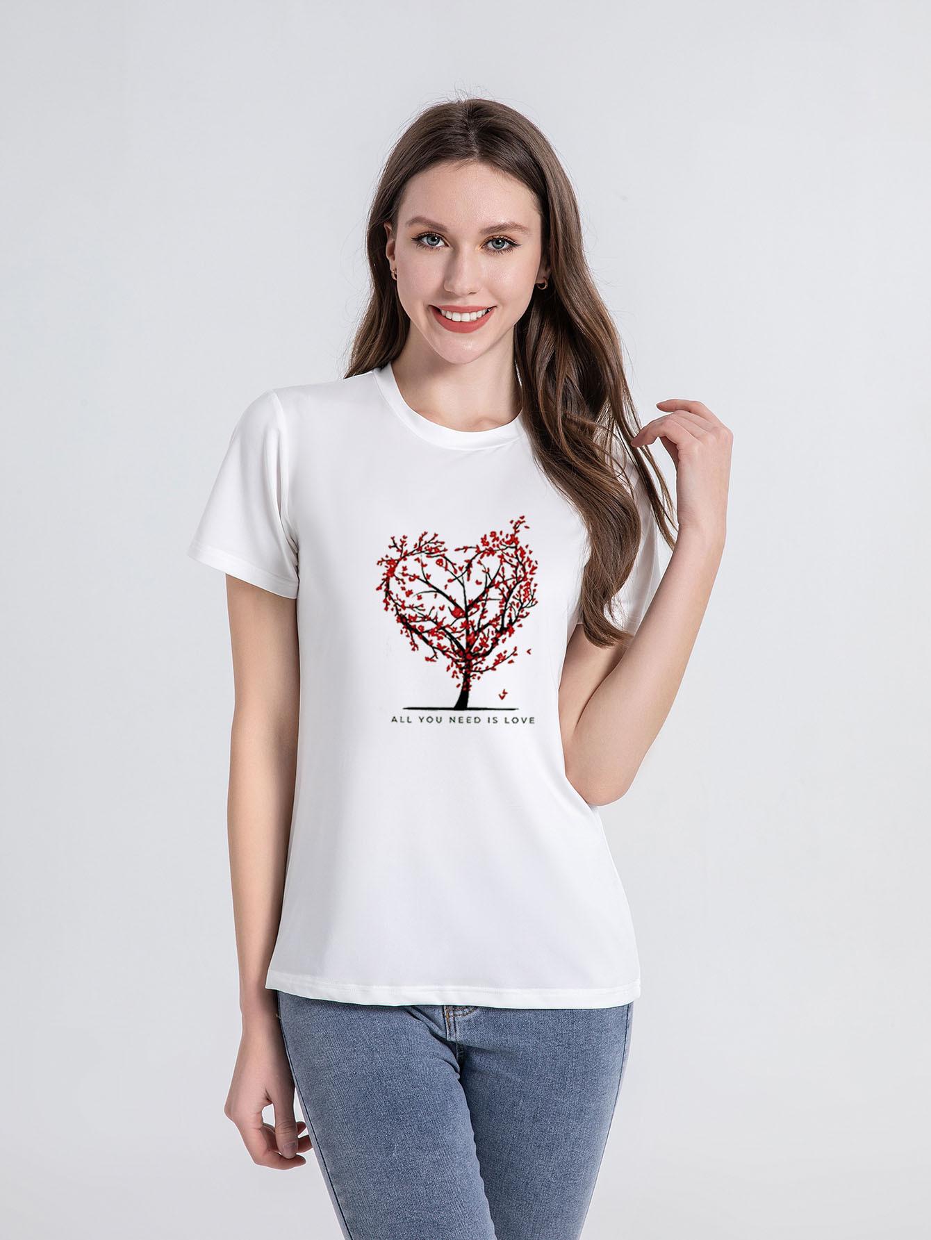 2023 Nueva Camiseta de Manga Corta para Mujer Europea y Americana Holgada de Cuello Redondo con Estampado de Árbol de Amor y Letras