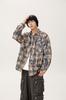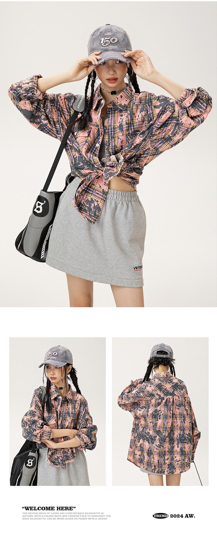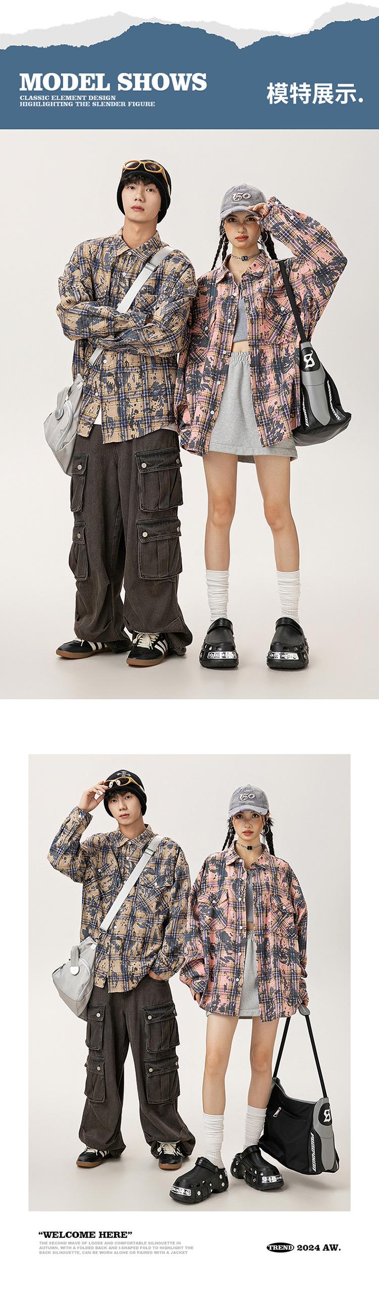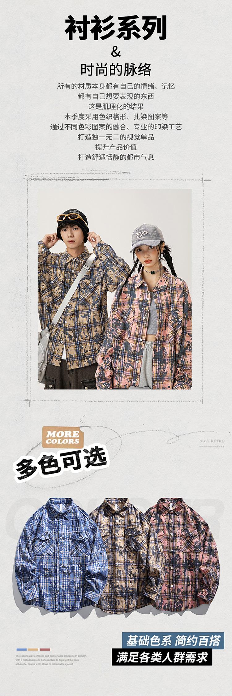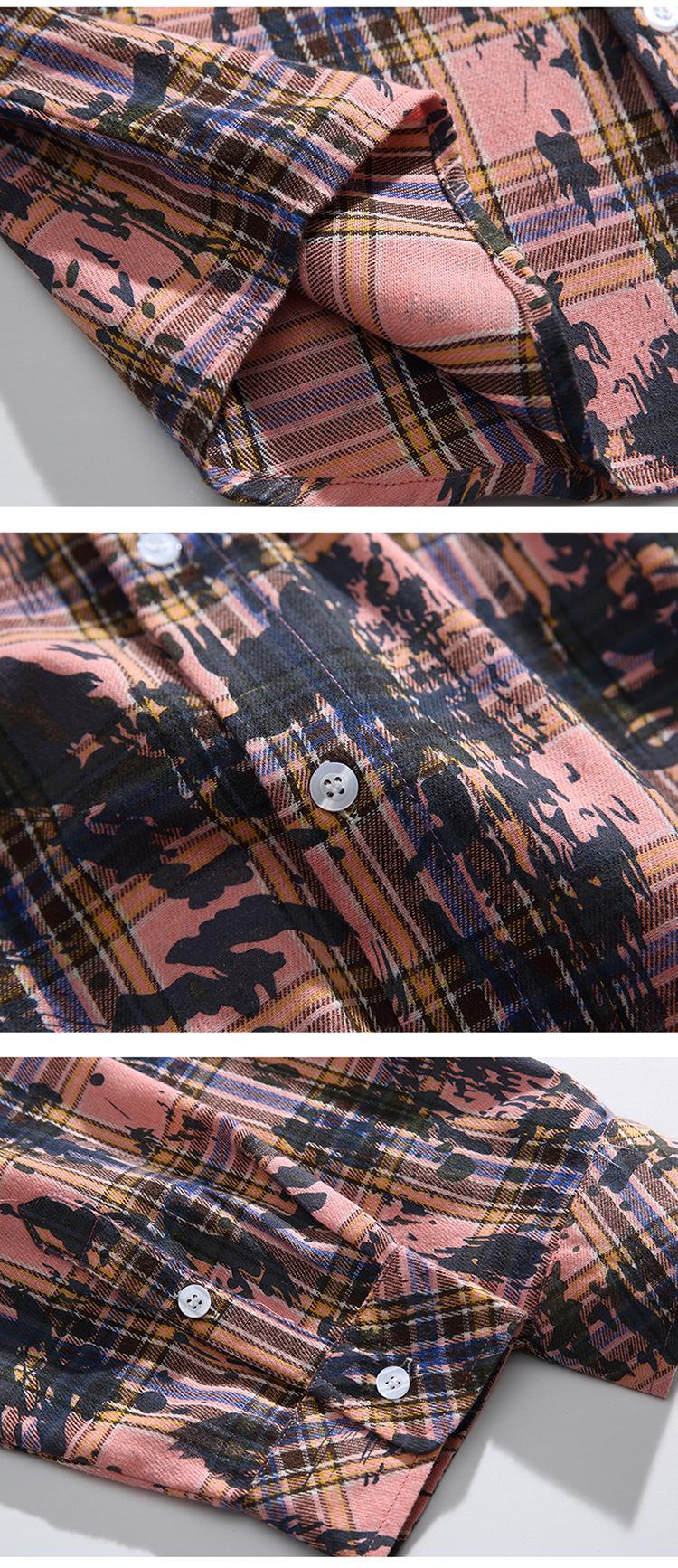 24 Nueva Camisa Clásica Versátil de Otoño a Cuadros con Salpicaduras de Tinta, Marca de Moda, Holgada, de Manga Larga