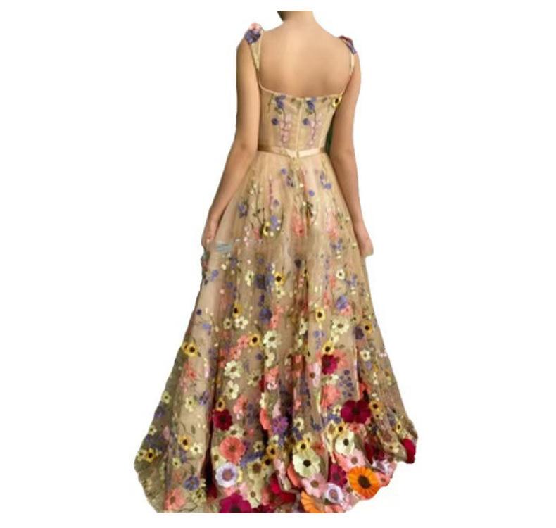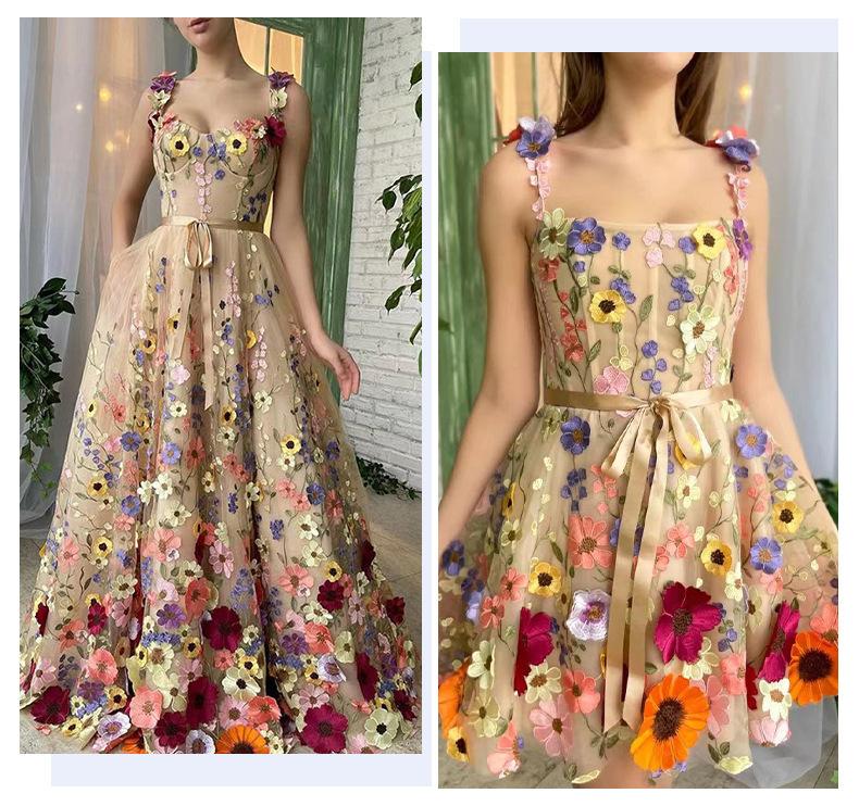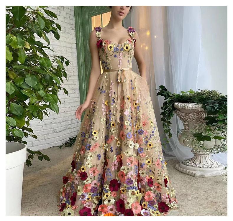 Vestido de Noche Floral Europeo y Americano 2025 Nuevo Estilo Banquete Otoño Ebay Elegante Adelgazante Reunión Anual Vestido de Dama de Honor Vestido Sexy