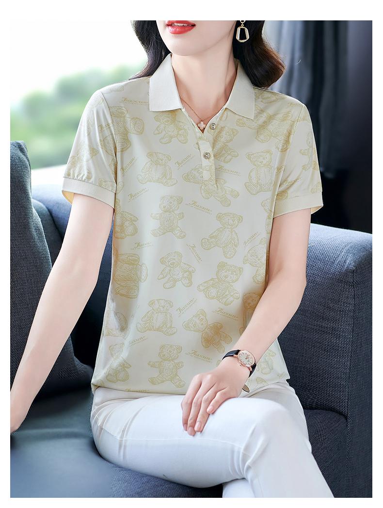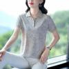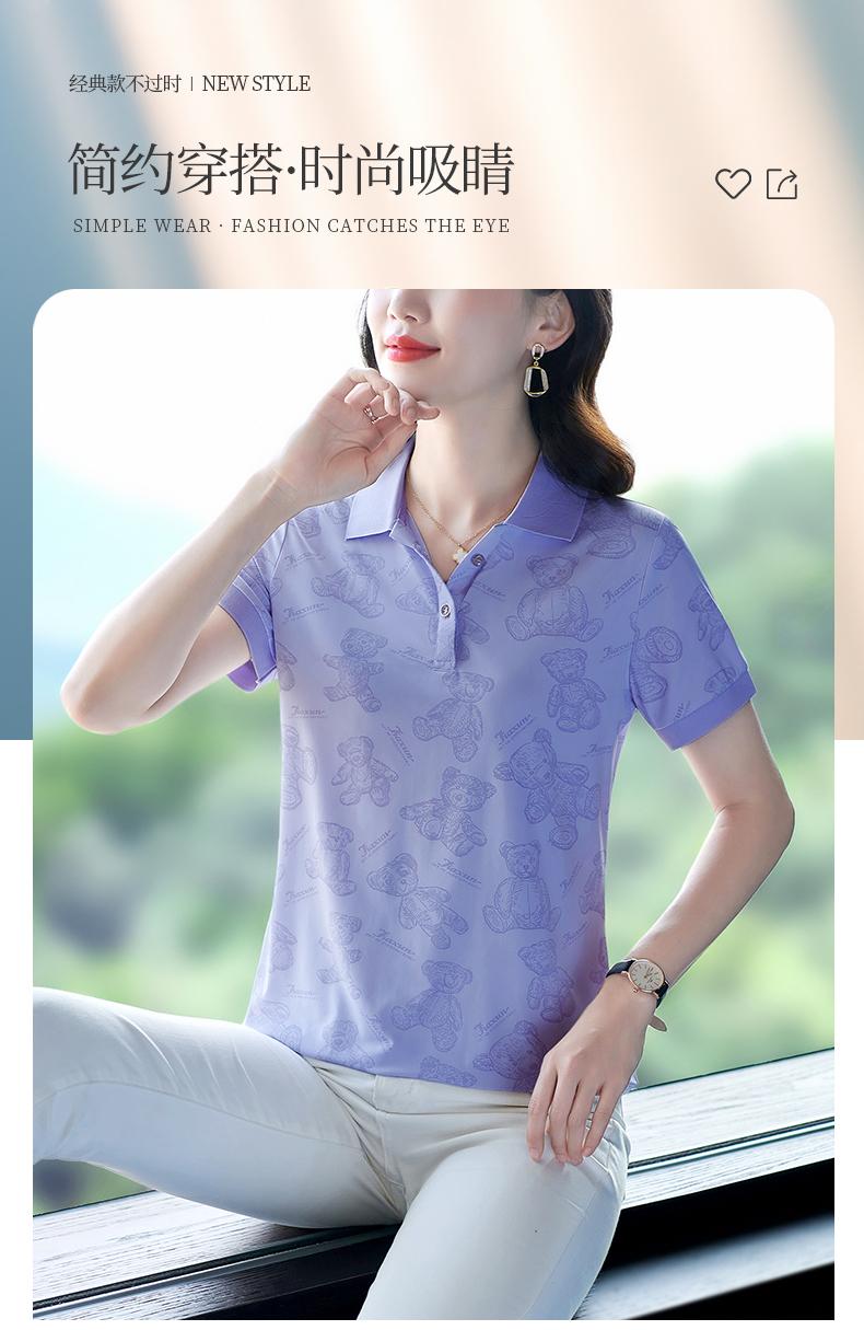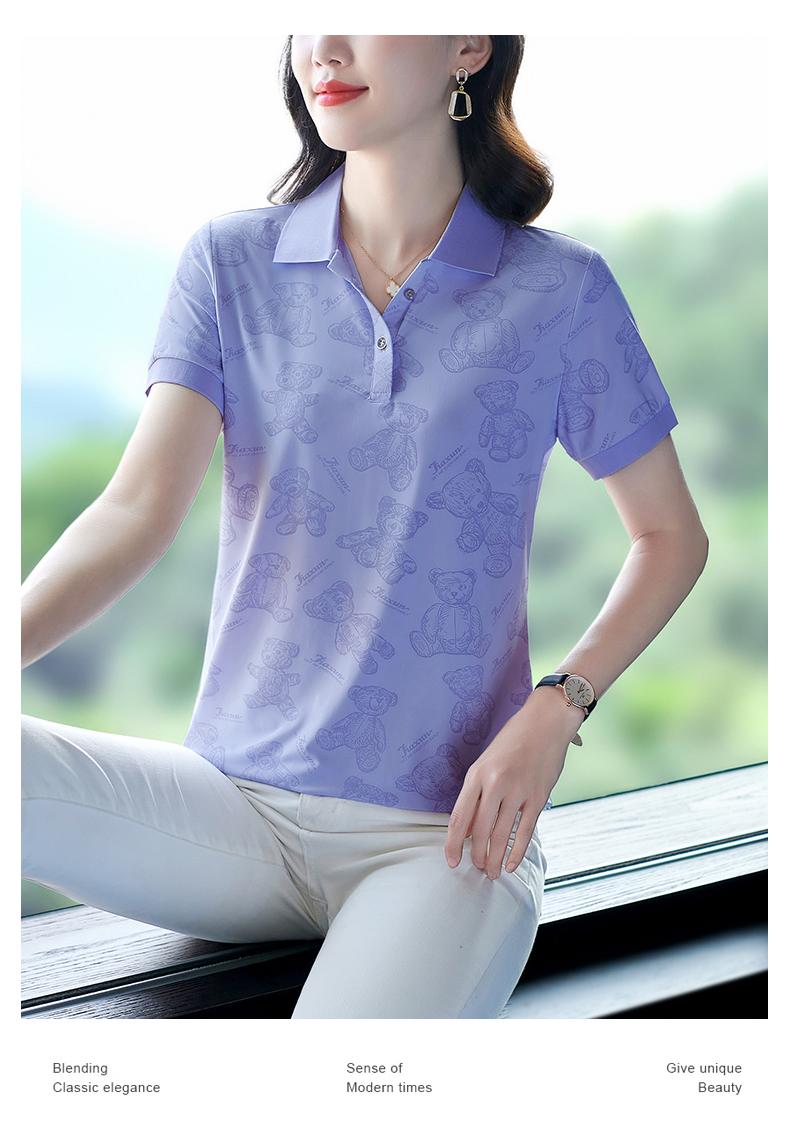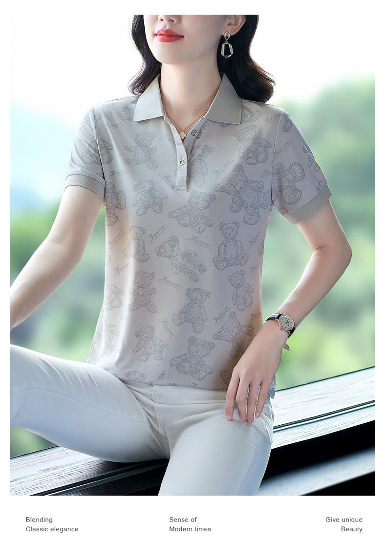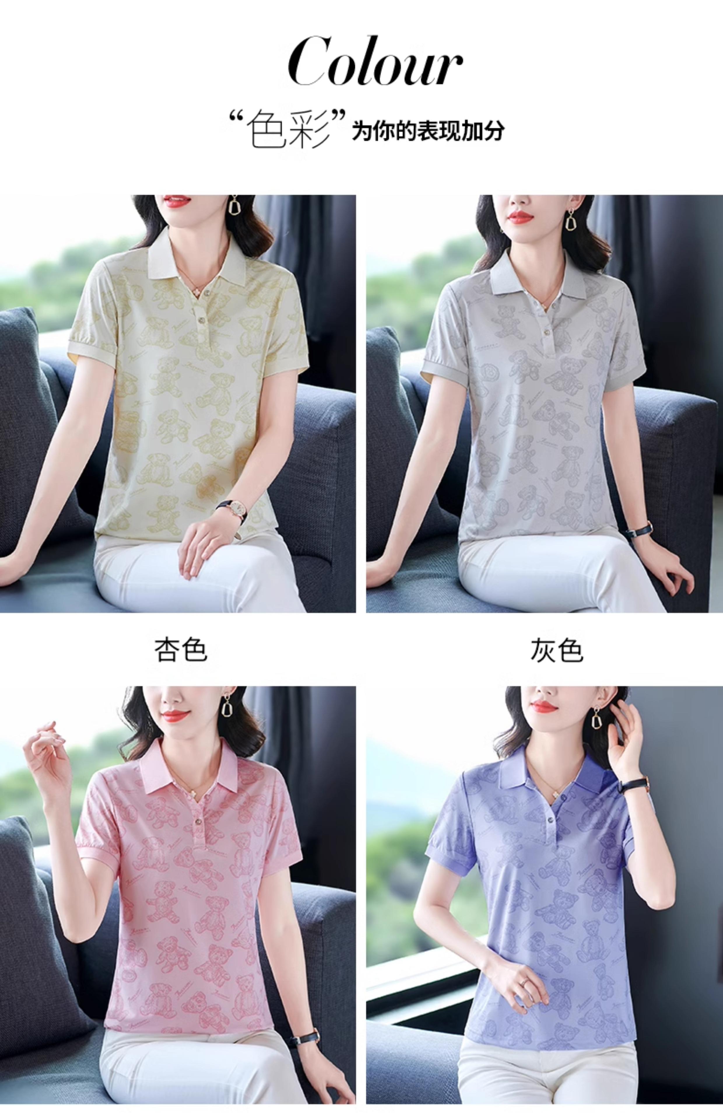 Playera de Manga Corta de Seda de Hielo para Mujer Verano 2024 Nuevo Estilo Polo Estampado para Madre Top Holgado con Solapa Talla Extra