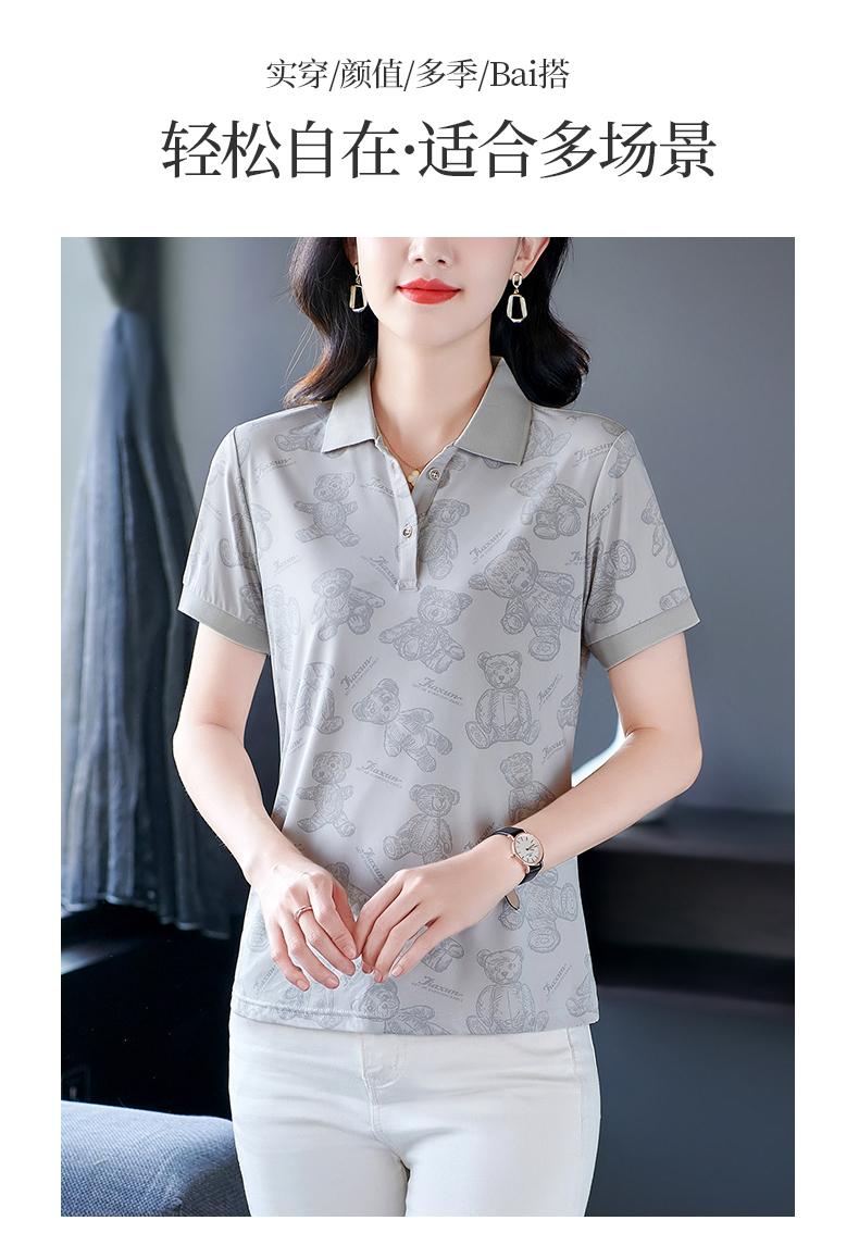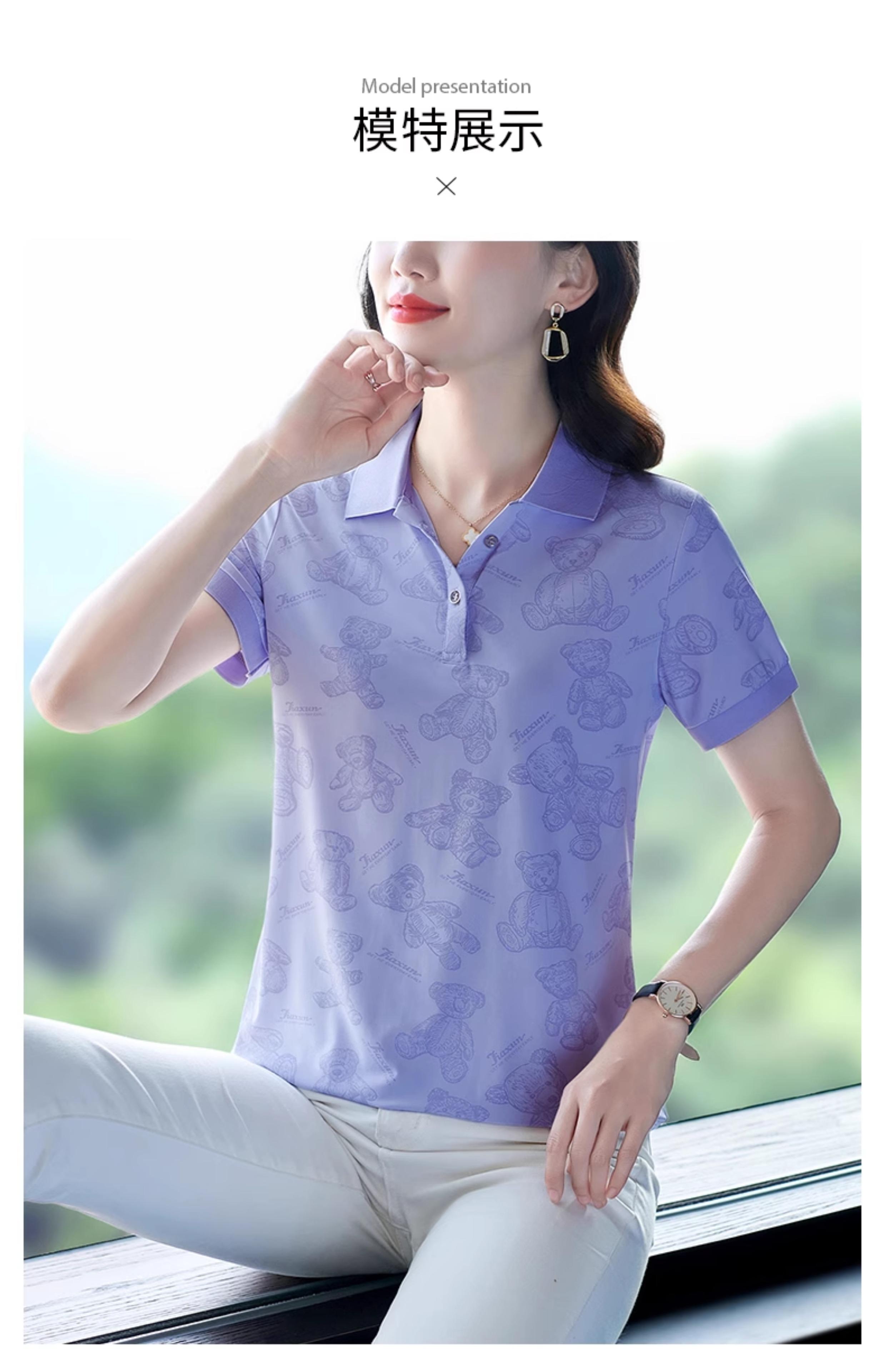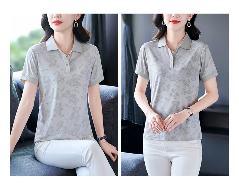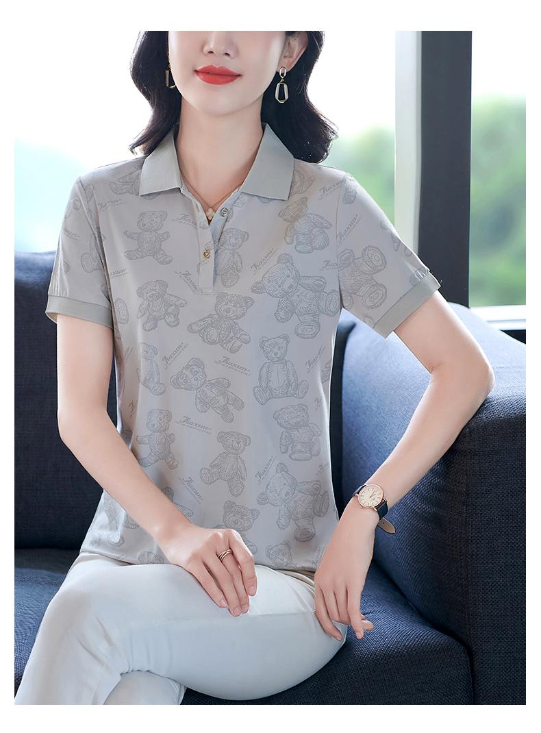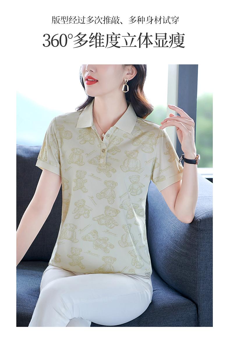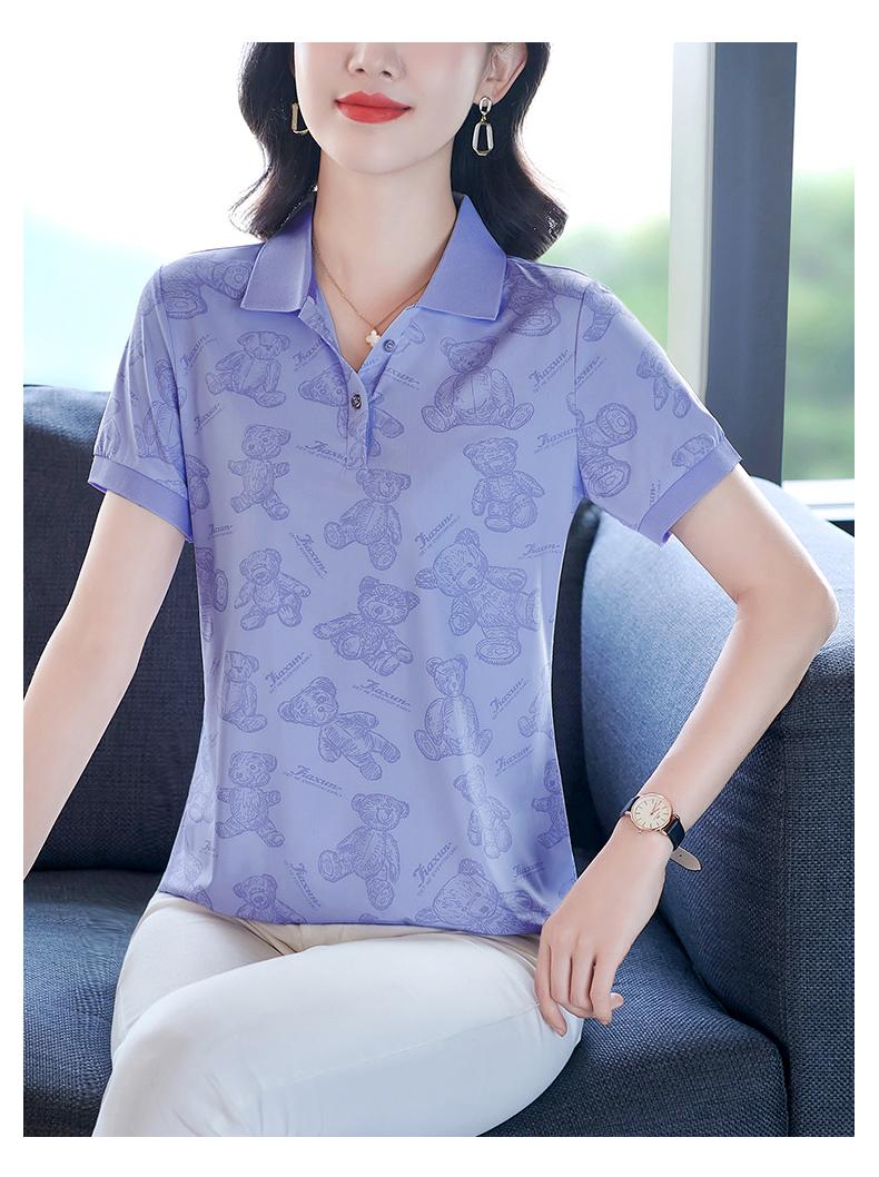 Playera de Manga Corta de Seda de Hielo para Mujer Verano 2024 Nuevo Estilo Polo Estampado para Madre Top Holgado con Solapa Talla Extra