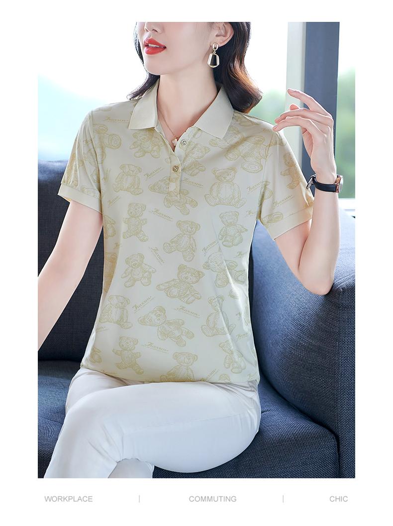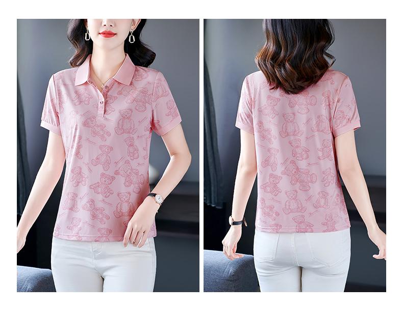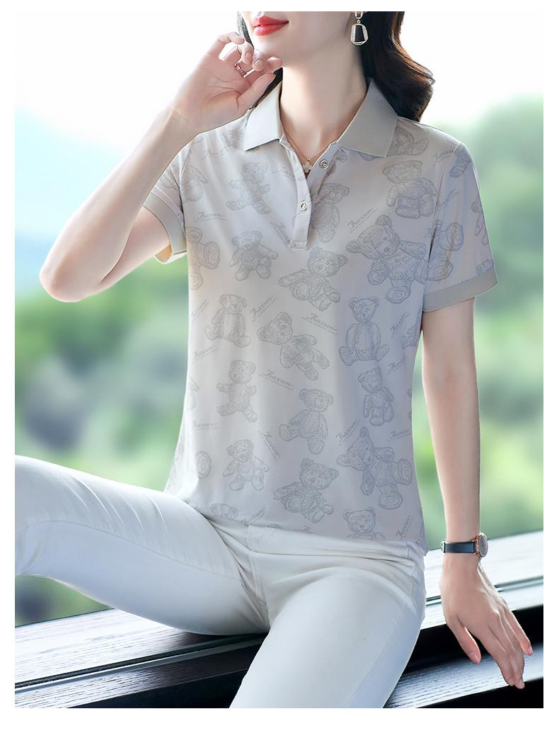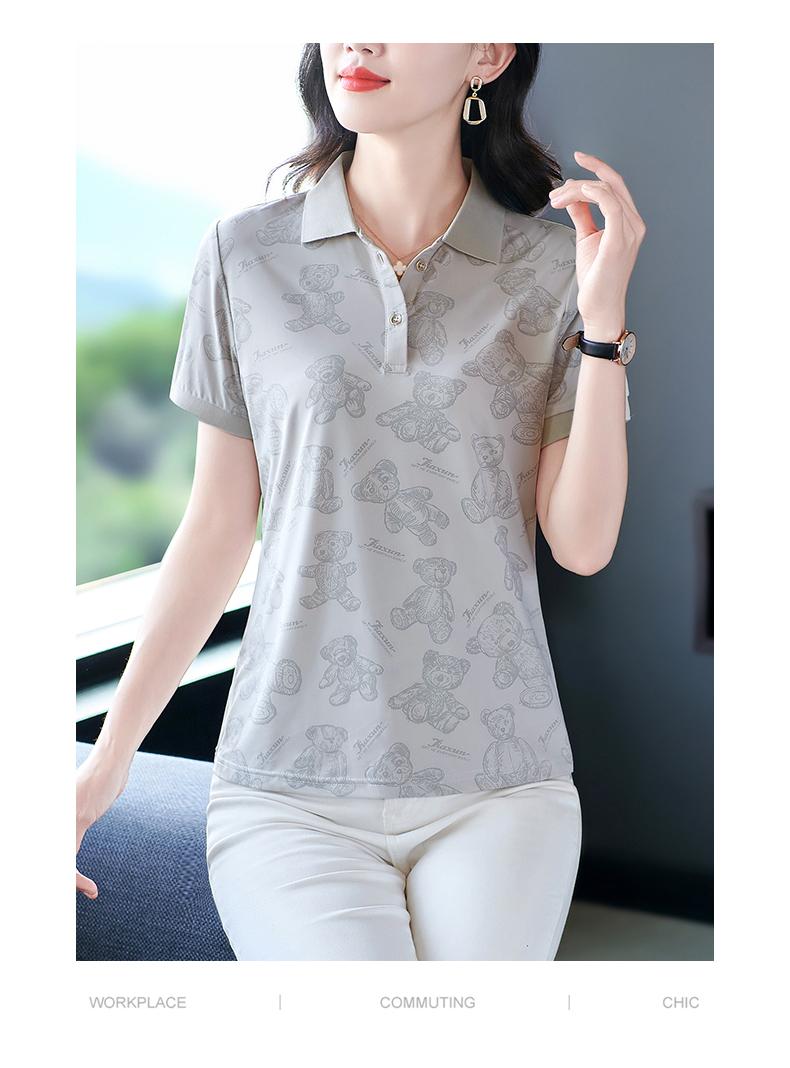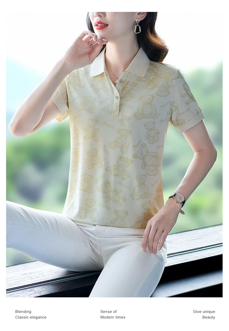 Playera de Manga Corta de Seda de Hielo para Mujer Verano 2024 Nuevo Estilo Polo Estampado para Madre Top Holgado con Solapa Talla Extra