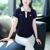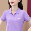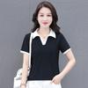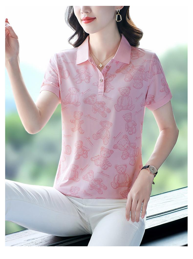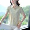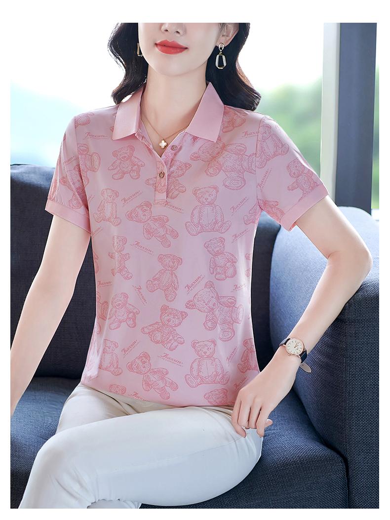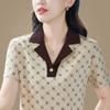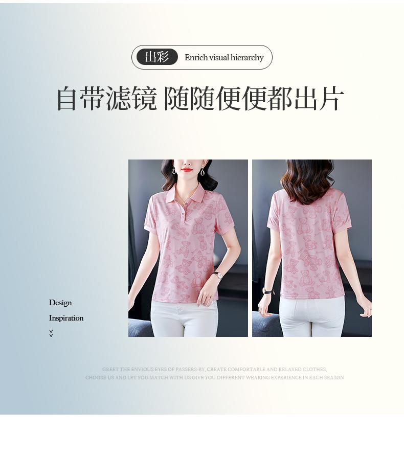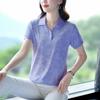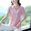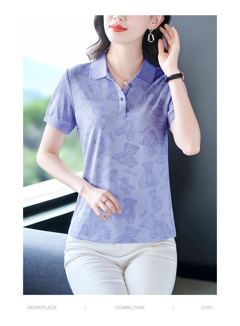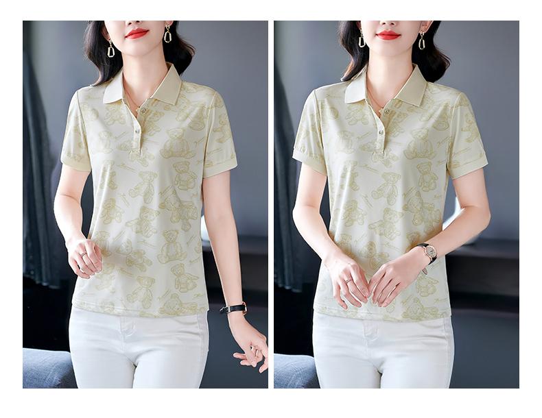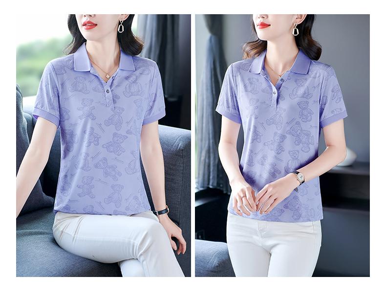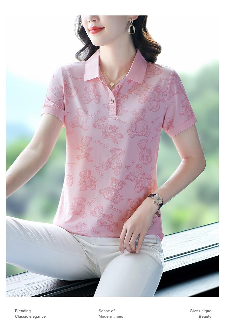 Playera de Manga Corta de Seda de Hielo para Mujer Verano 2024 Nuevo Estilo Polo Estampado para Madre Top Holgado con Solapa Talla Extra