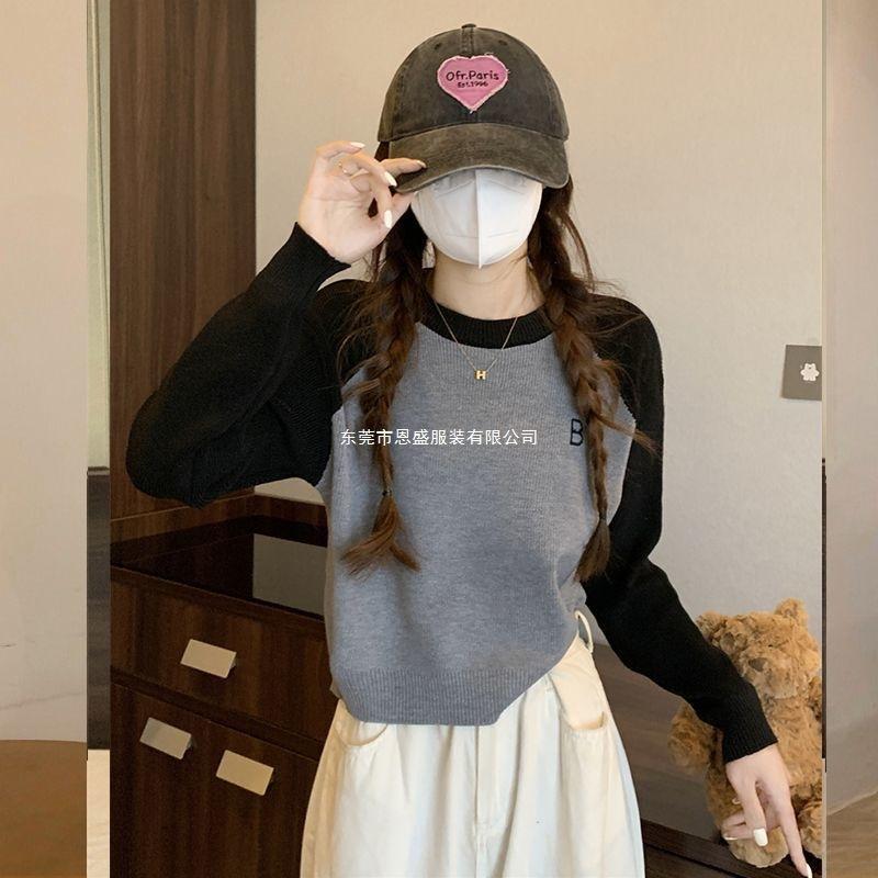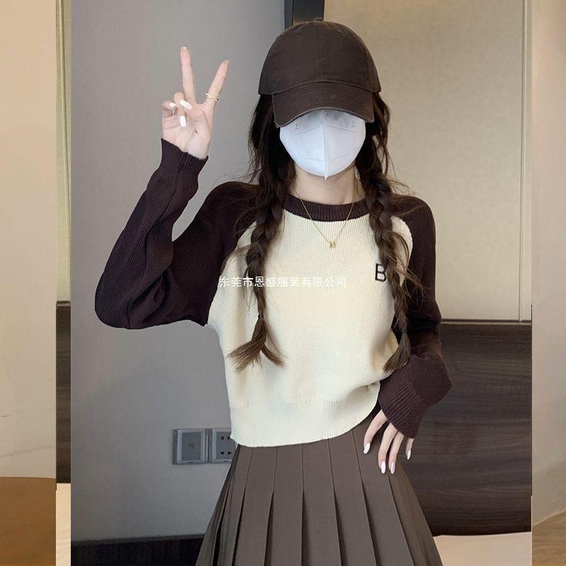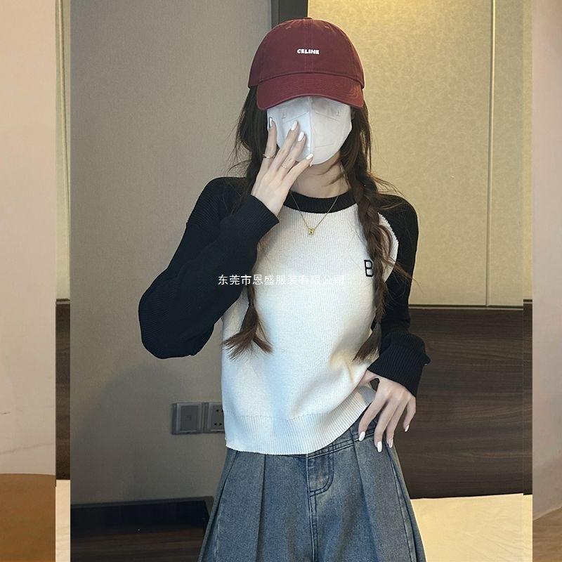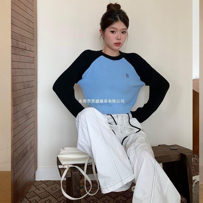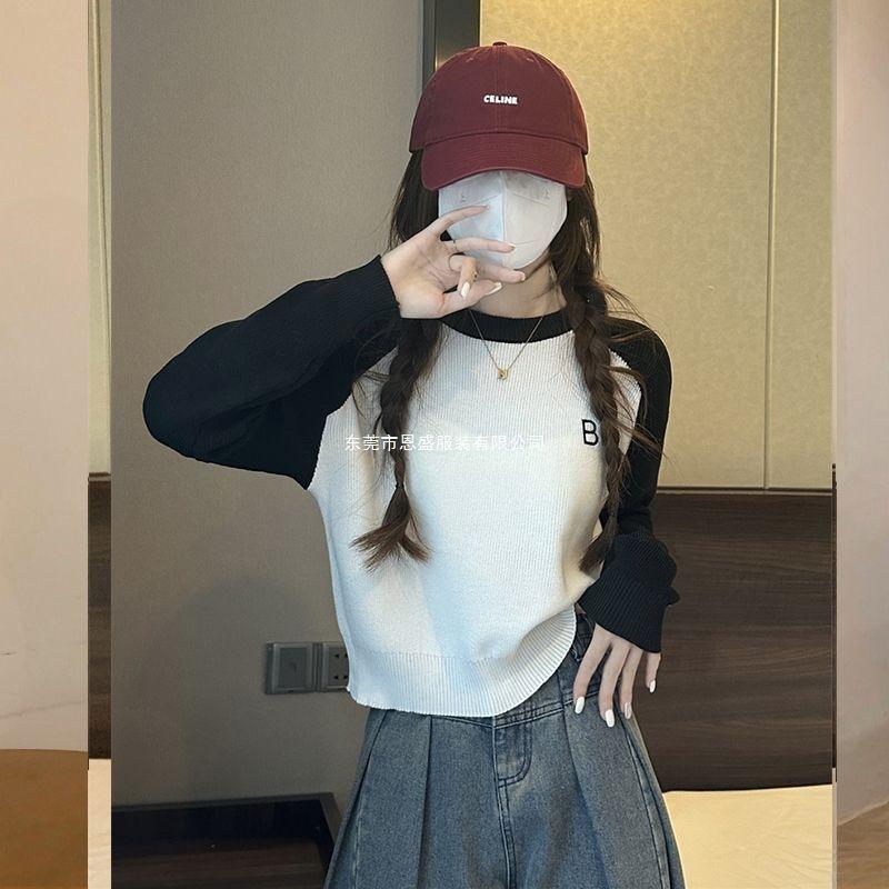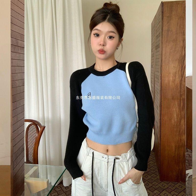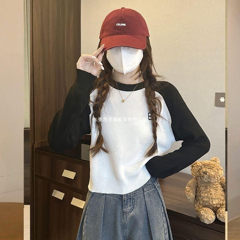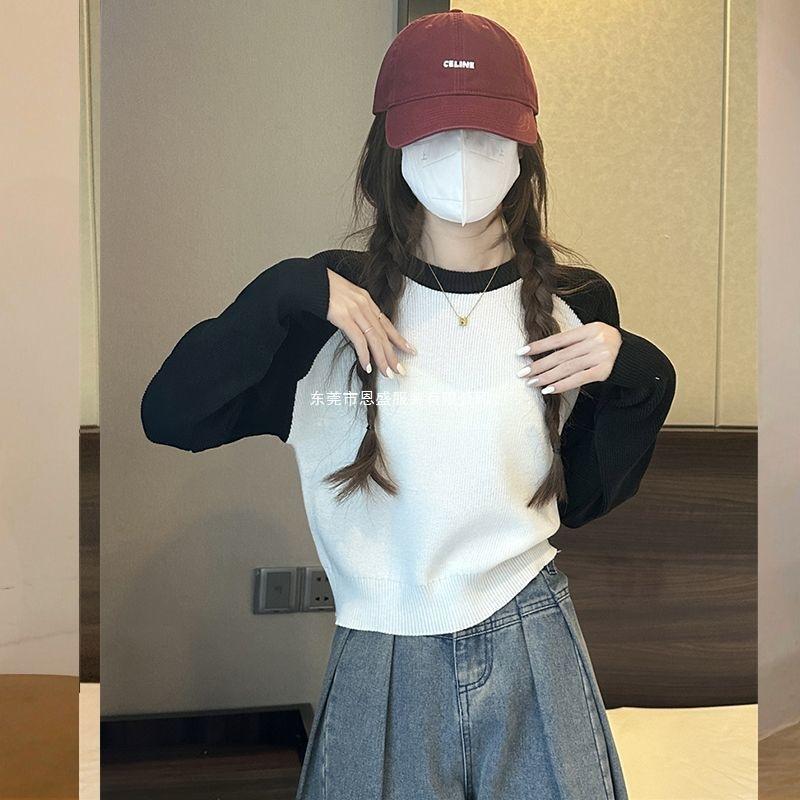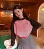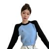 Jersey de cuello redondo estilo universitario en color contrastante, tejido suave y ceroso, camisa básica de primavera y otoño de manga corta y larga, top de punto para personas pequeñas