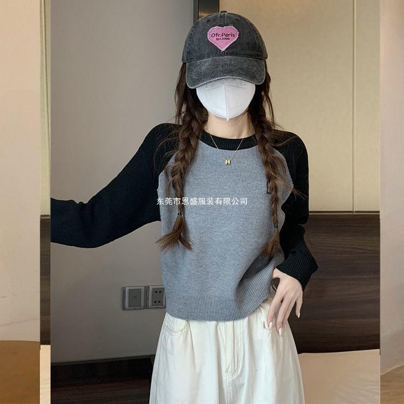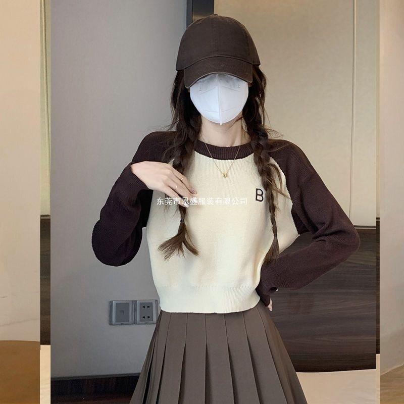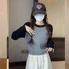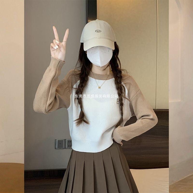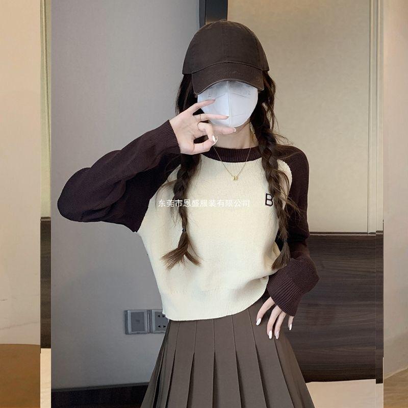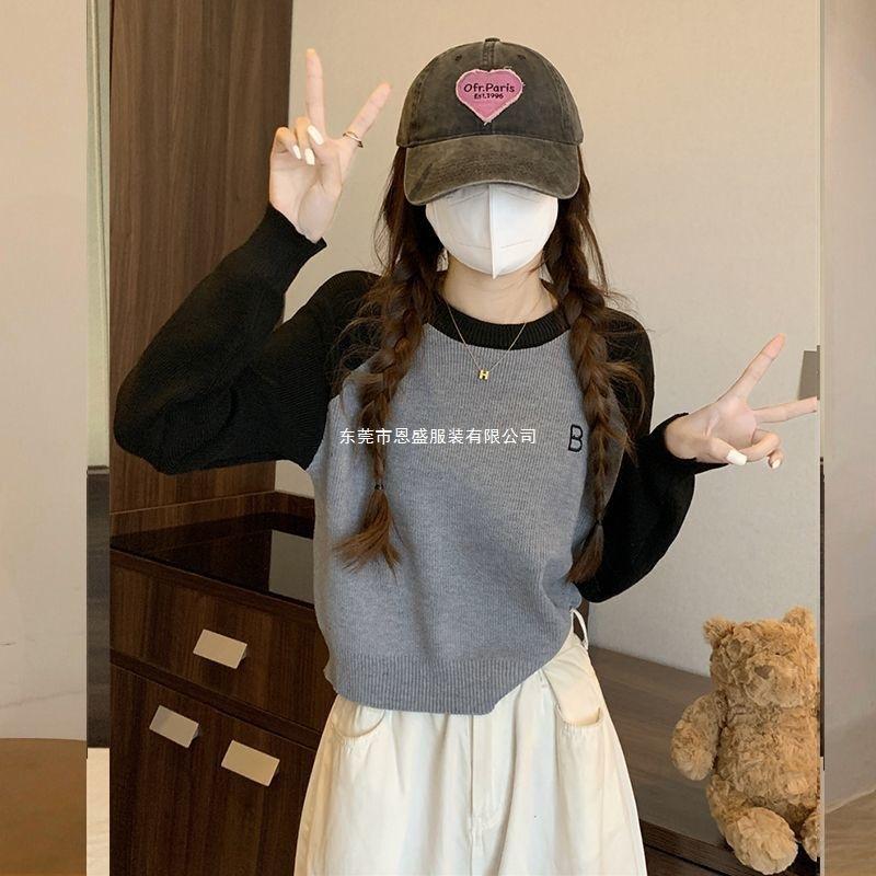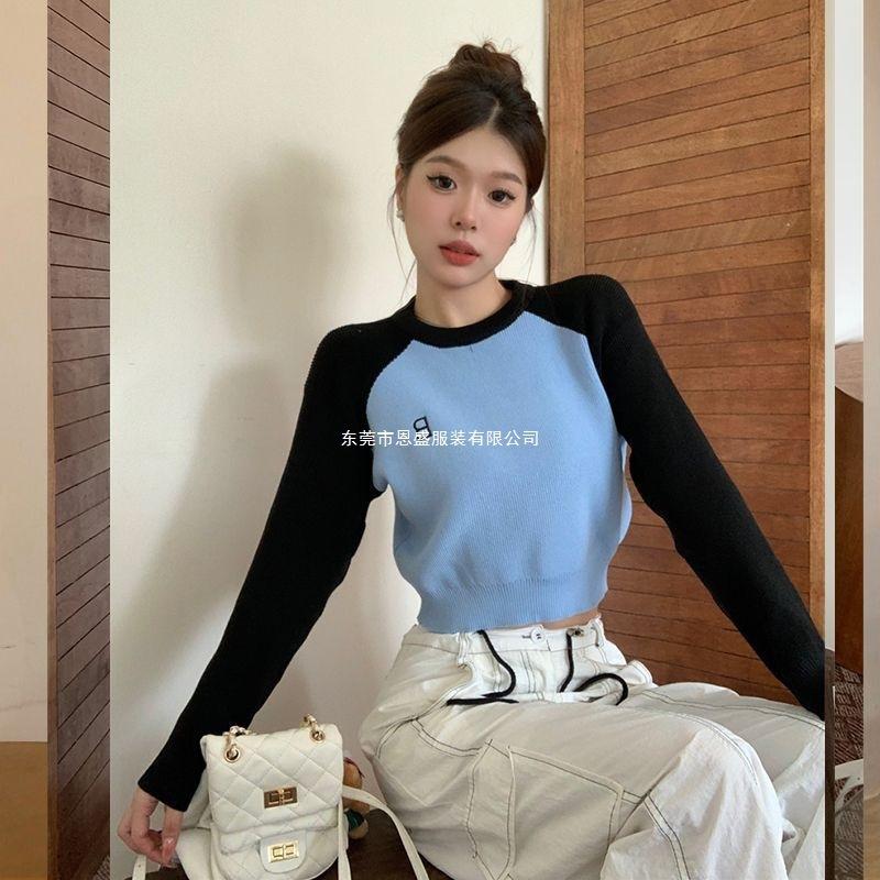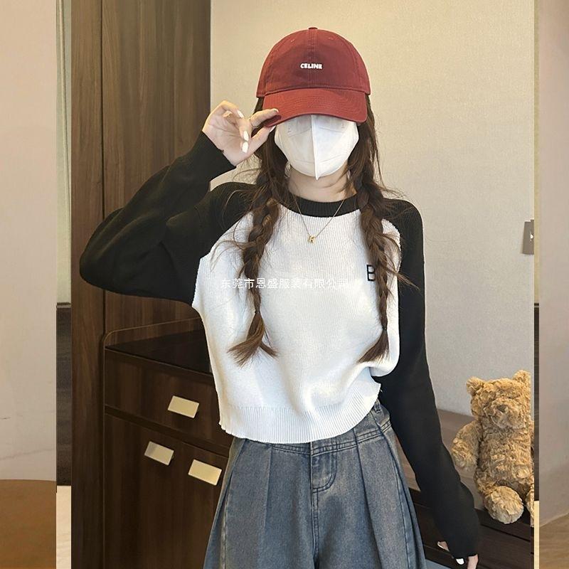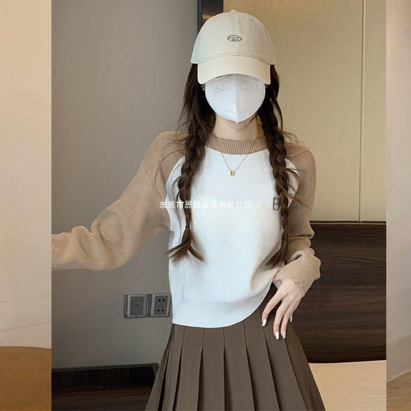 Jersey de cuello redondo estilo universitario en color contrastante, tejido suave y ceroso, camisa básica de primavera y otoño de manga corta y larga, top de punto para personas pequeñas