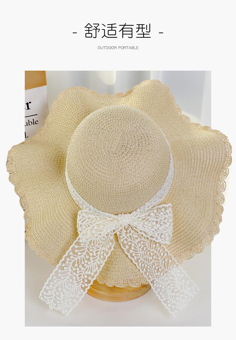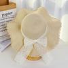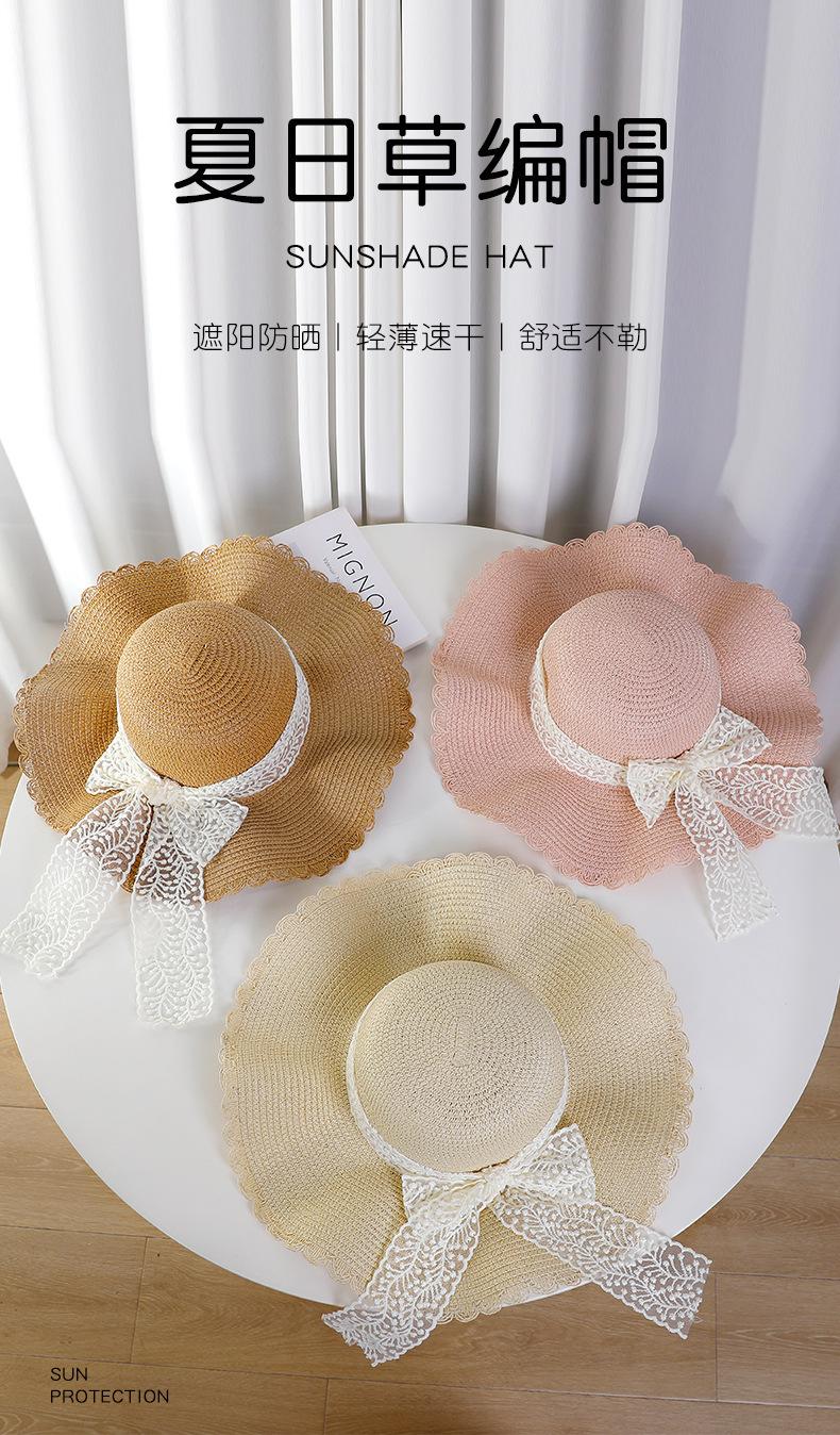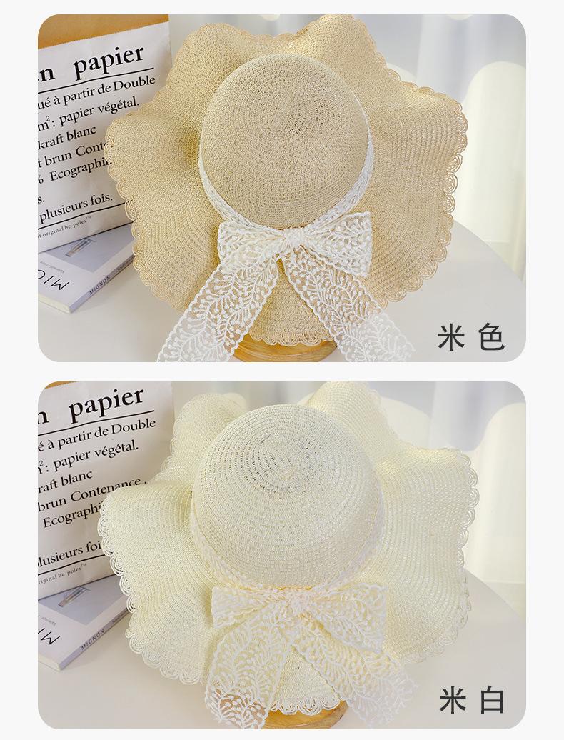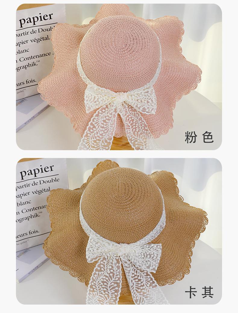 Sombrero de Paja Dulce de Pescador para Mujer Estilo Coreano Encaje Lazo Ala Ancha Plegable Sombrero de Protección Solar Playa Marítima
