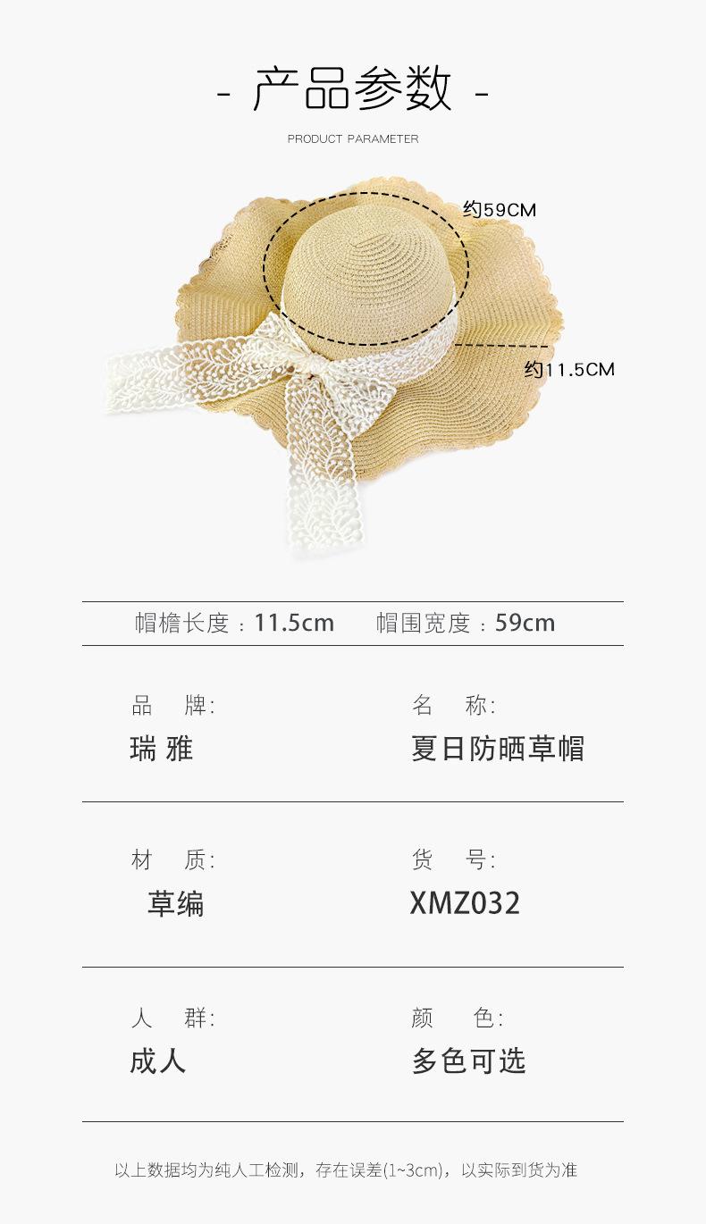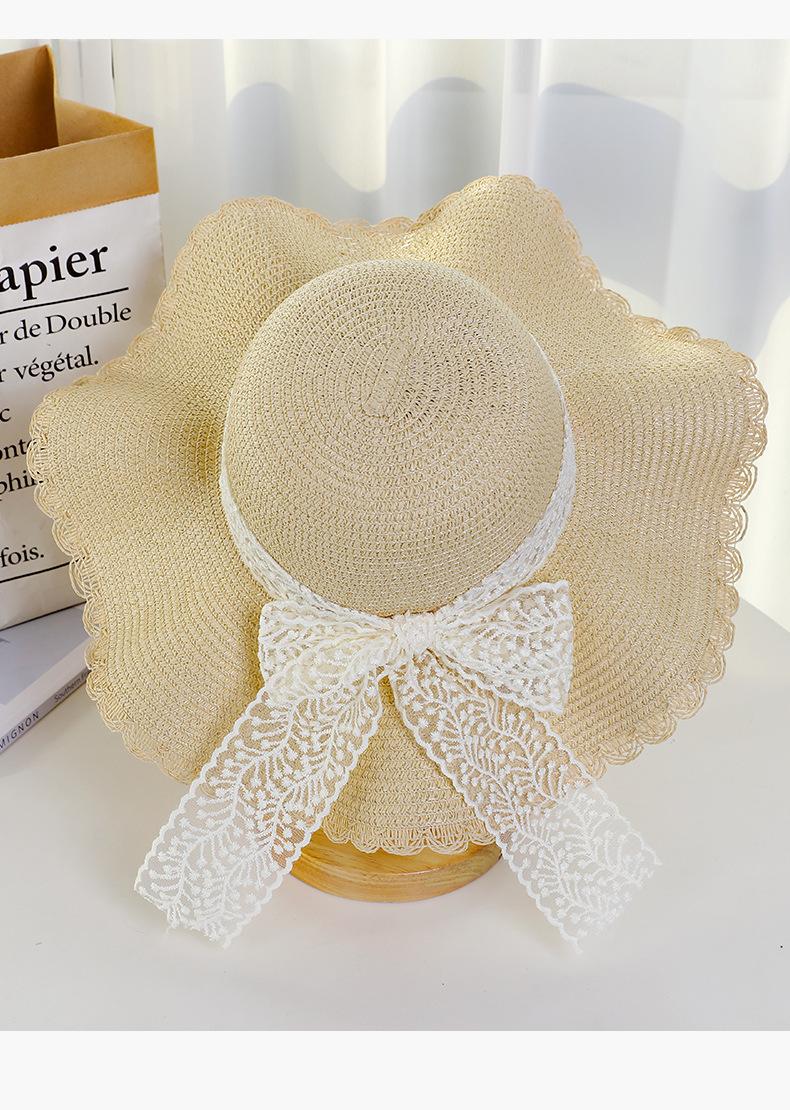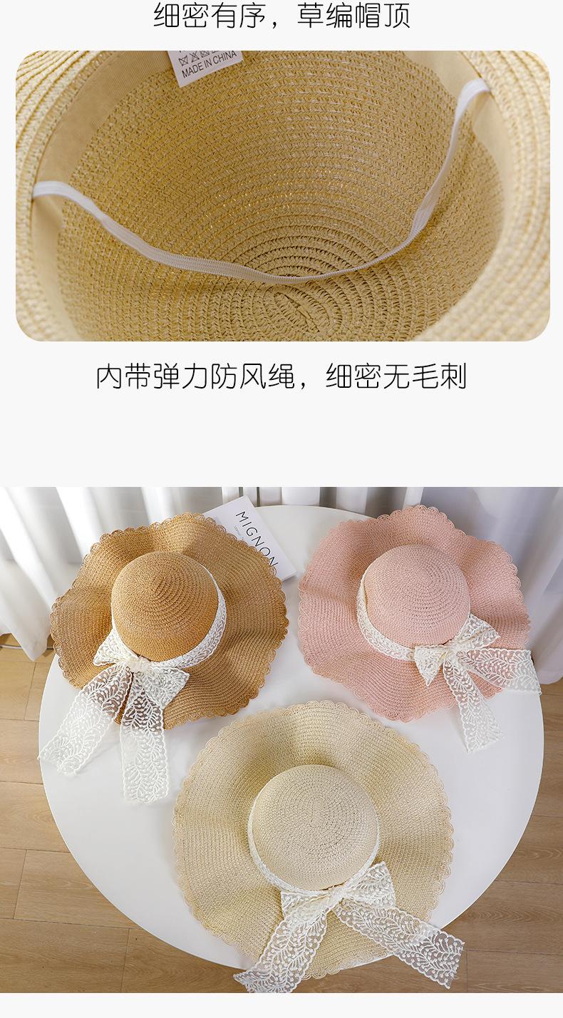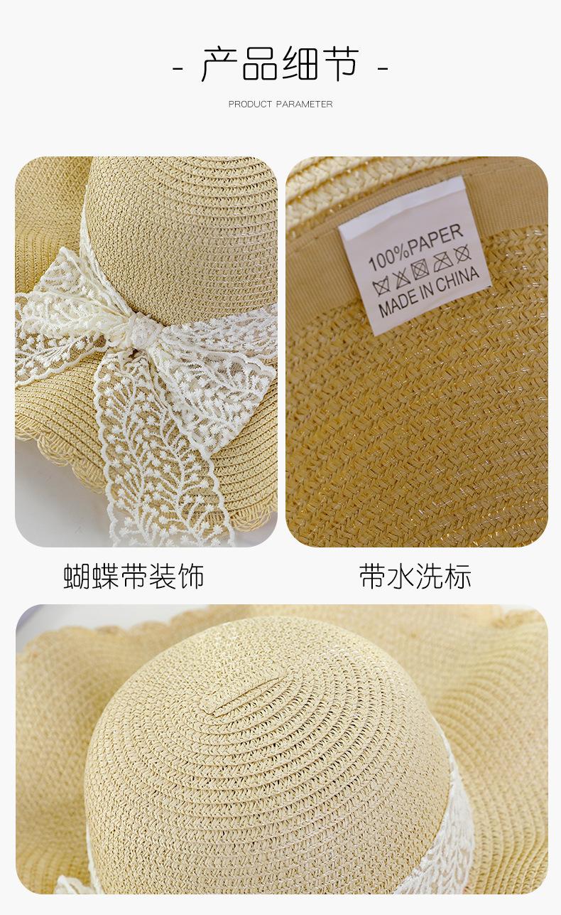 Sombrero de Paja Dulce de Pescador para Mujer Estilo Coreano Encaje Lazo Ala Ancha Plegable Sombrero de Protección Solar Playa Marítima