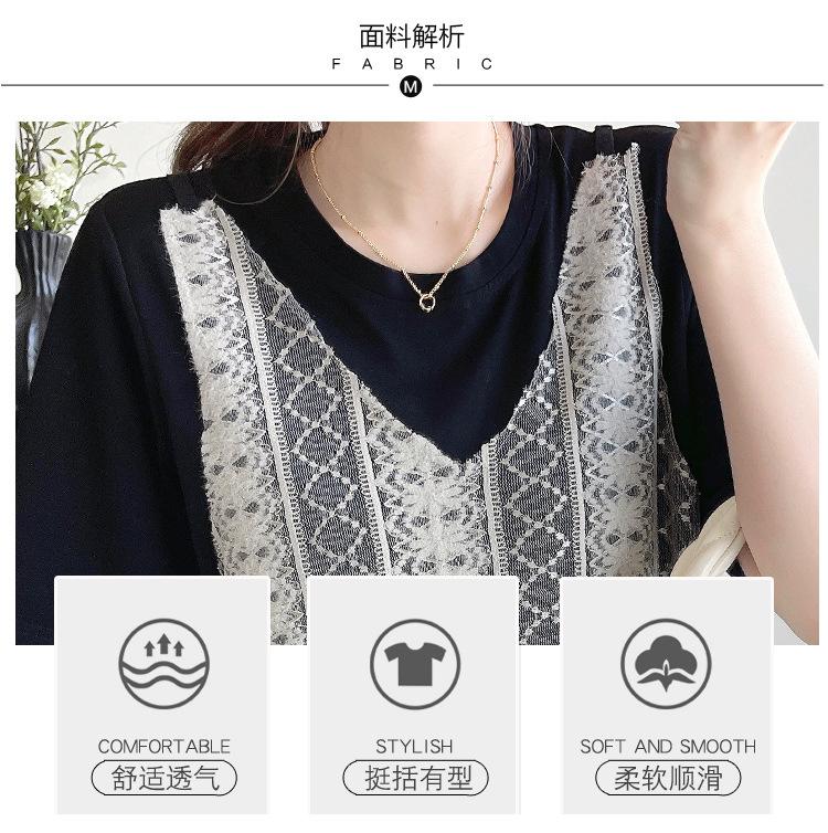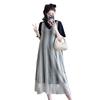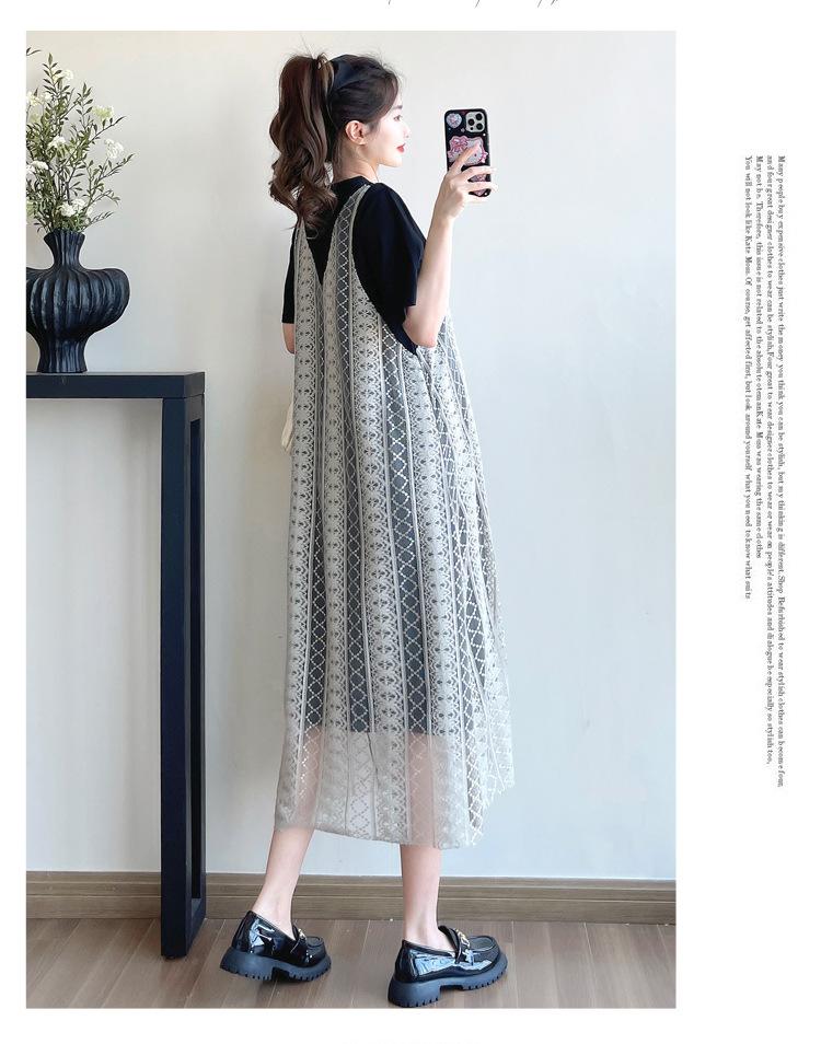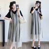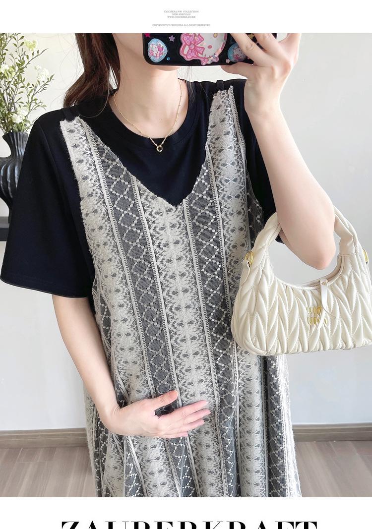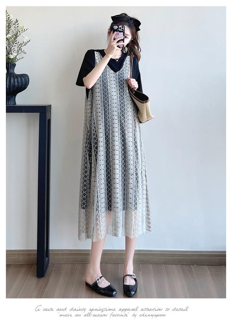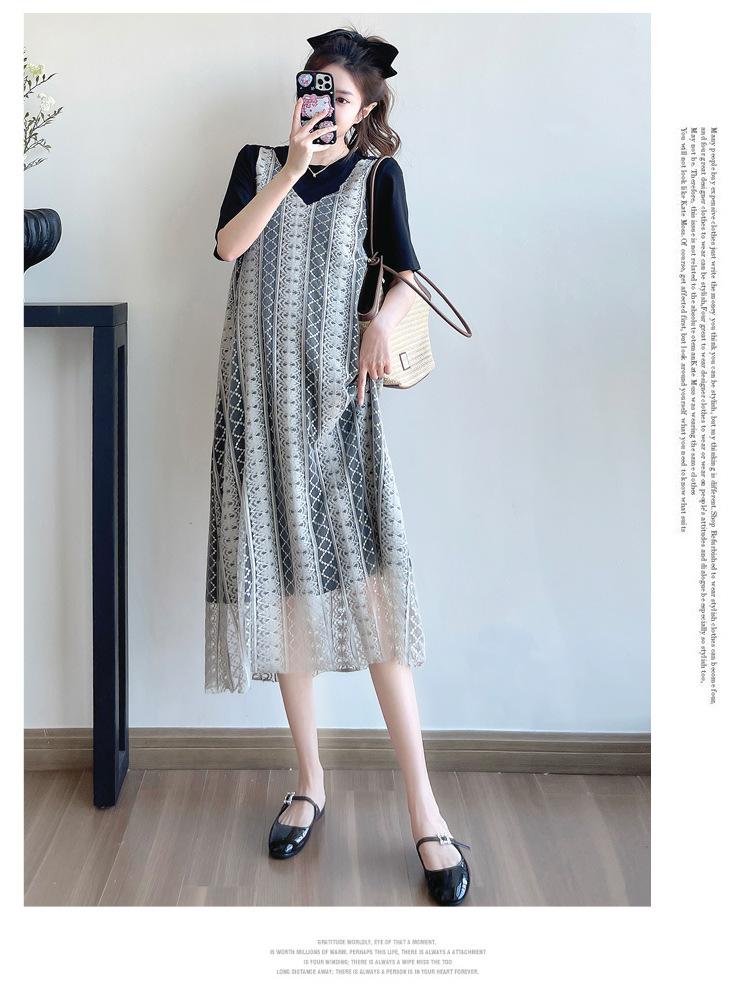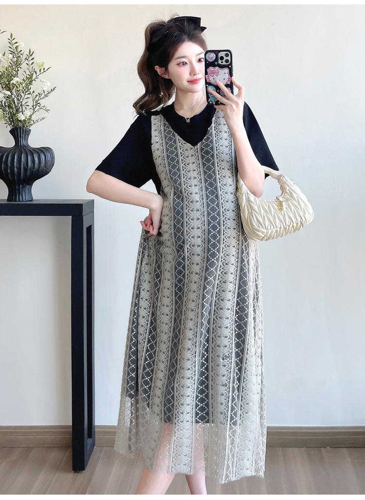 Ropa de Maternidad 2025 Verano Nuevo Diseño Francés de Empalme de Dos Piezas Falsas Vestido de Maternidad de Encaje con Aberturas
