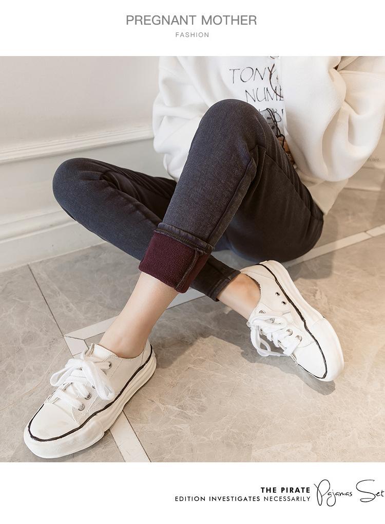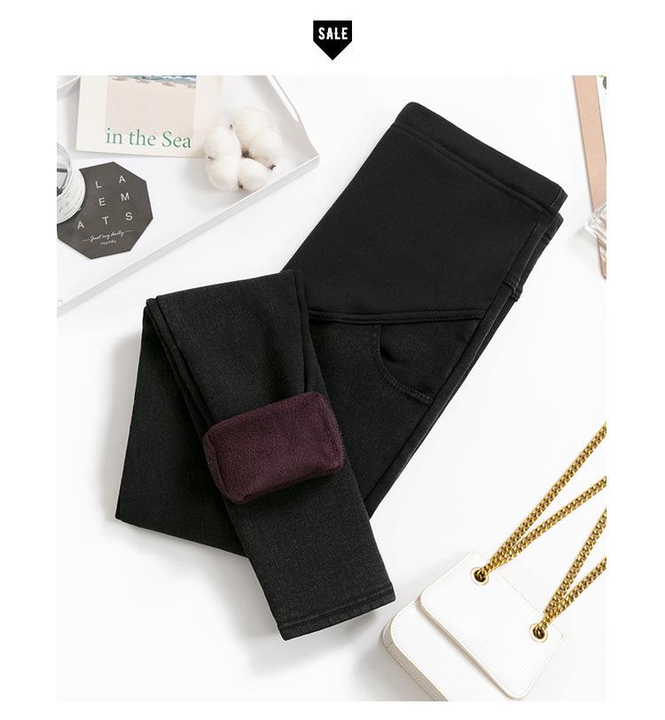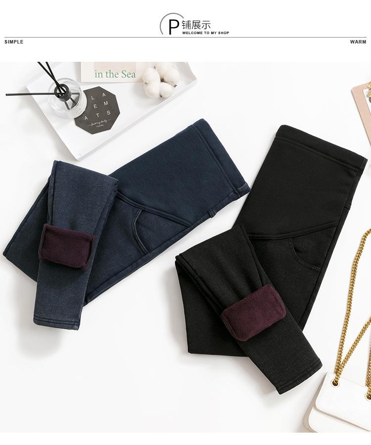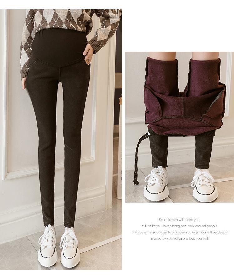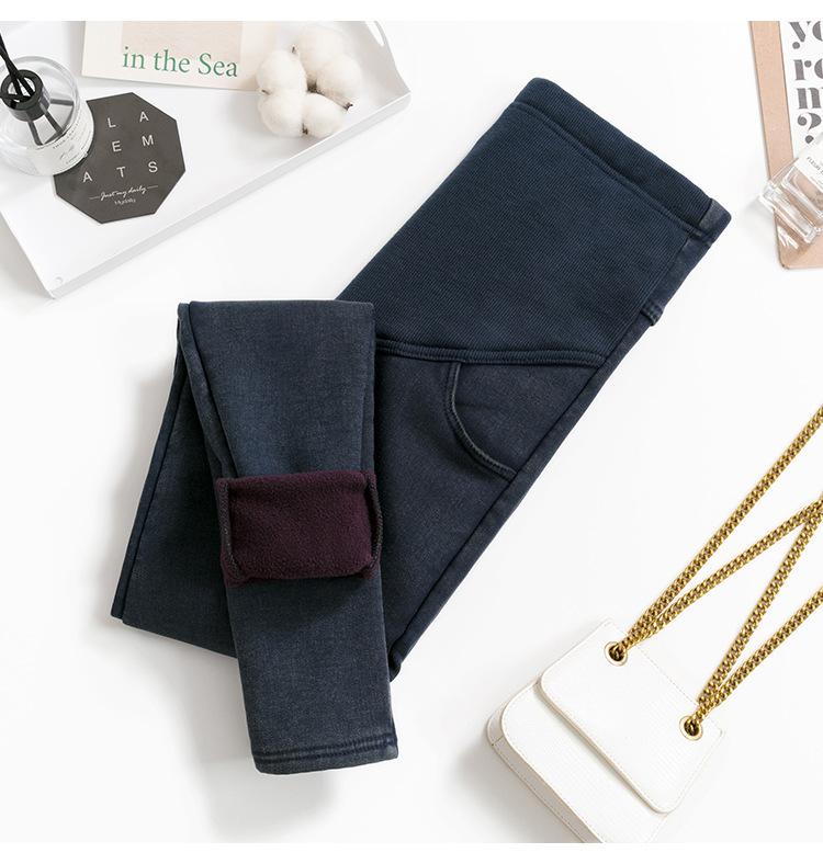 Leggings de terciopelo de alta elasticidad para embarazadas talla 3XL, pantalones gruesos de invierno para exterior, pantalones lápiz casuales imitación mezclilla