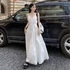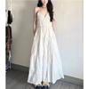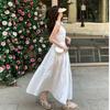 Falda de Tirantes Blanca Francesa para Mujer Vestido de Vacaciones Junto al Mar Falda Slim de Verano para Mujer Falda Larga Elegante de Nicho