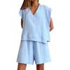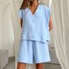 Traje de Chaleco Nuevo de Verano Transfronterizo 2025 Color Puro Casual Versátil Top de Cuello en V Traje de Ropa para el Hogar para Mujer