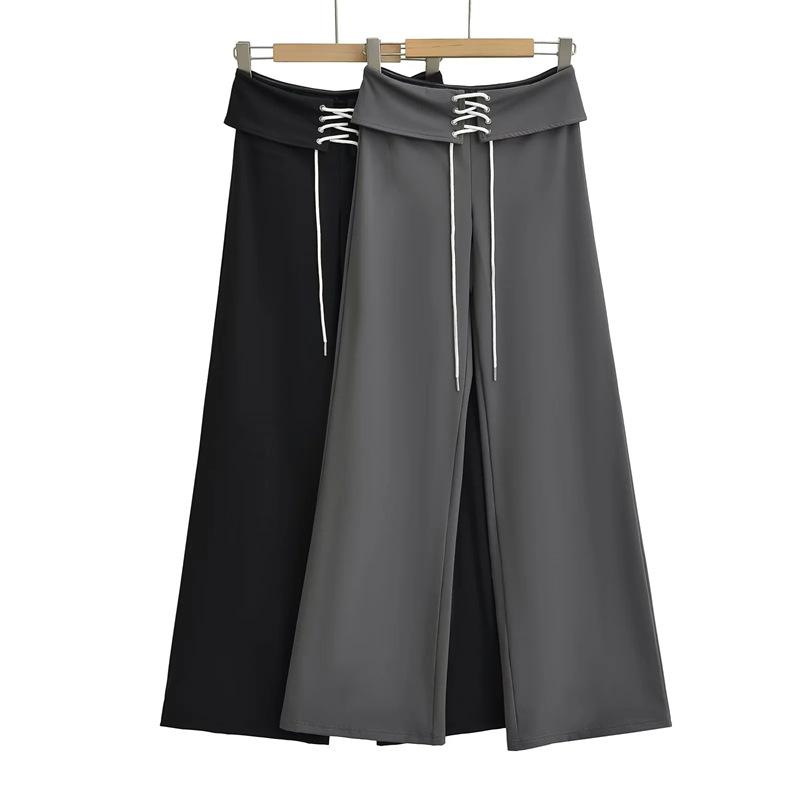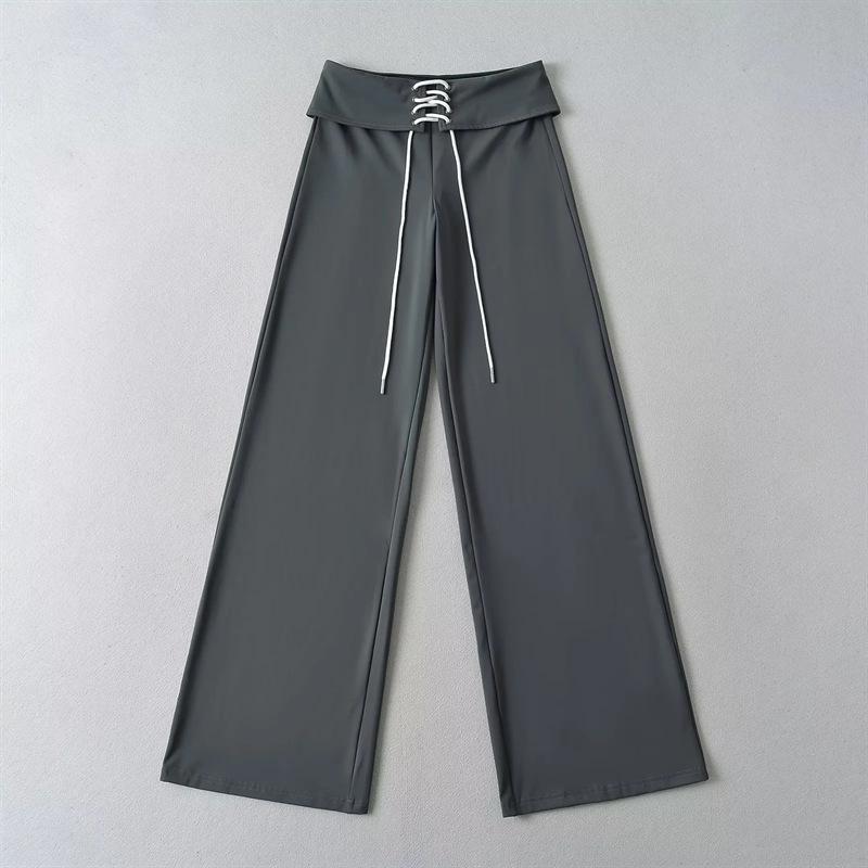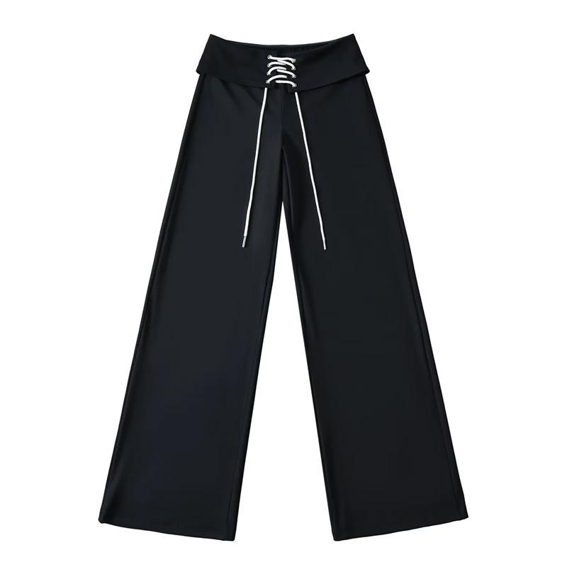 Ropa de Mujer Spice Girls Europea y Americana Pantalones Casuales de Cintura Alta Pantalones Sueltos Rectos con Cordones para Mujer