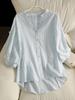 Compra Camisa de Rayas Estilo Francés para Mujer, Novedad Verano 2026, Top de Verano Holgado de Cuello Redondo con Mangas de Tres Cuartos, Blusa de Alta Gama para Verano al por mayor en Joom.pro