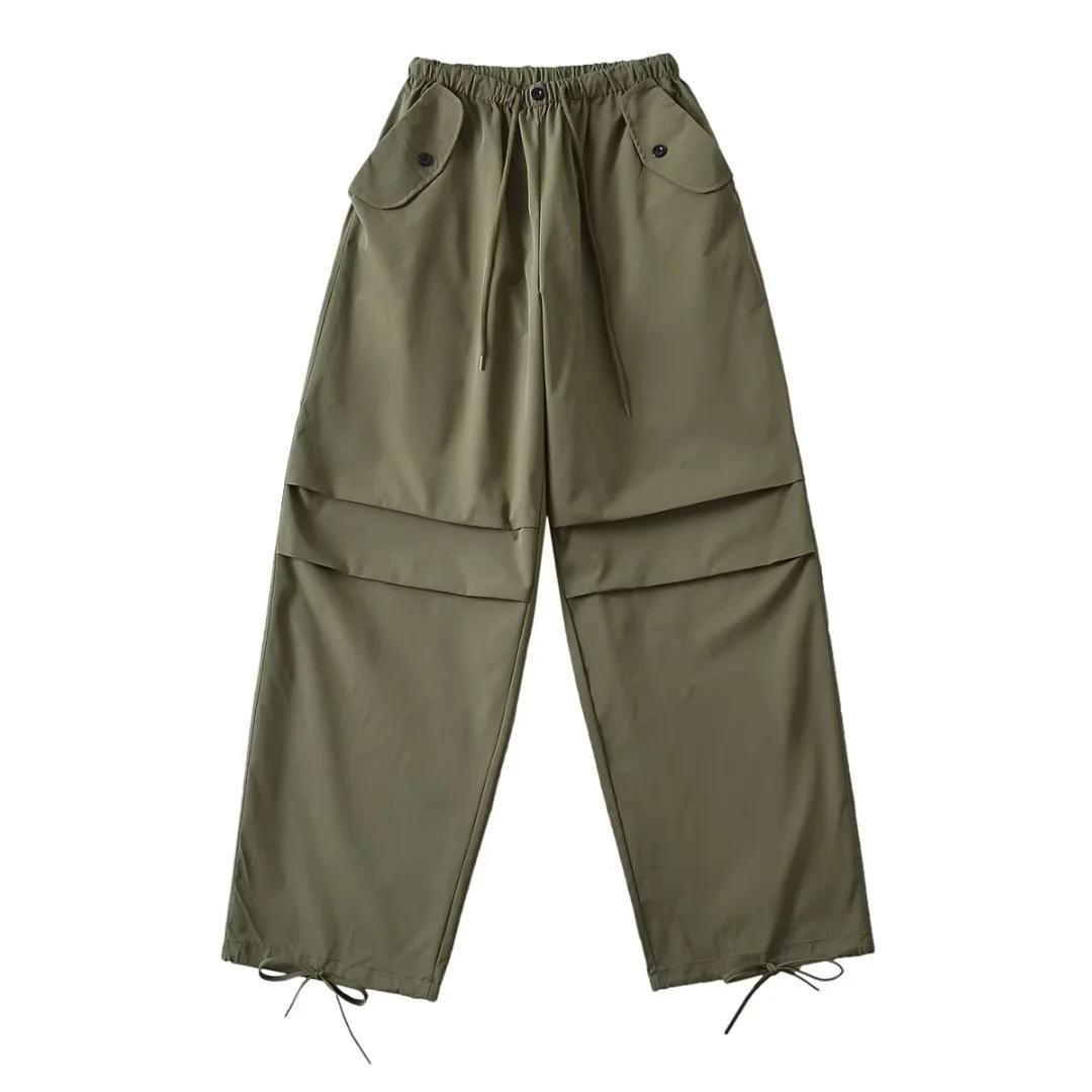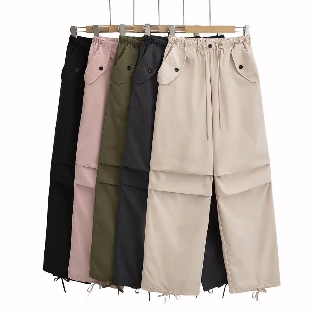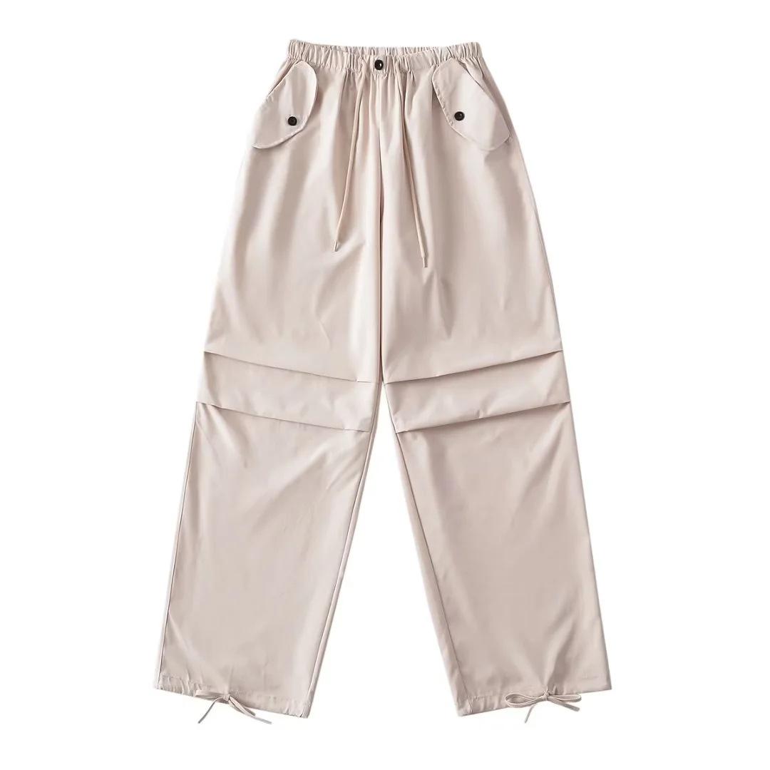 Pantalones de pierna ancha holgados e informales con cordón de cintura alta para mujer, estilo americano, para otoño