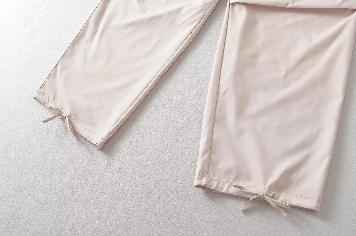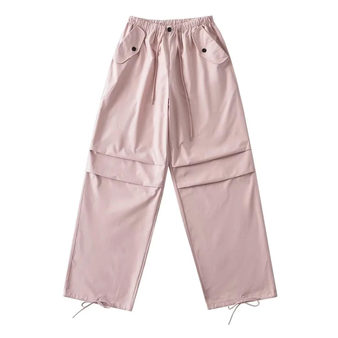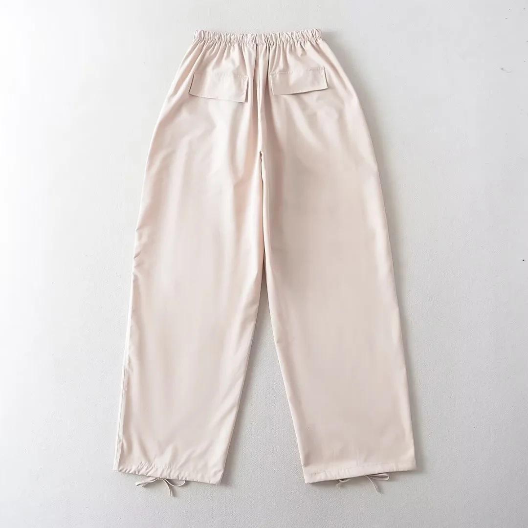 Pantalones de pierna ancha holgados e informales con cordón de cintura alta para mujer, estilo americano, para otoño