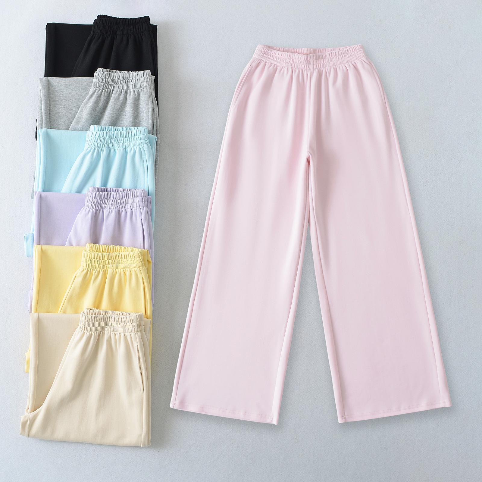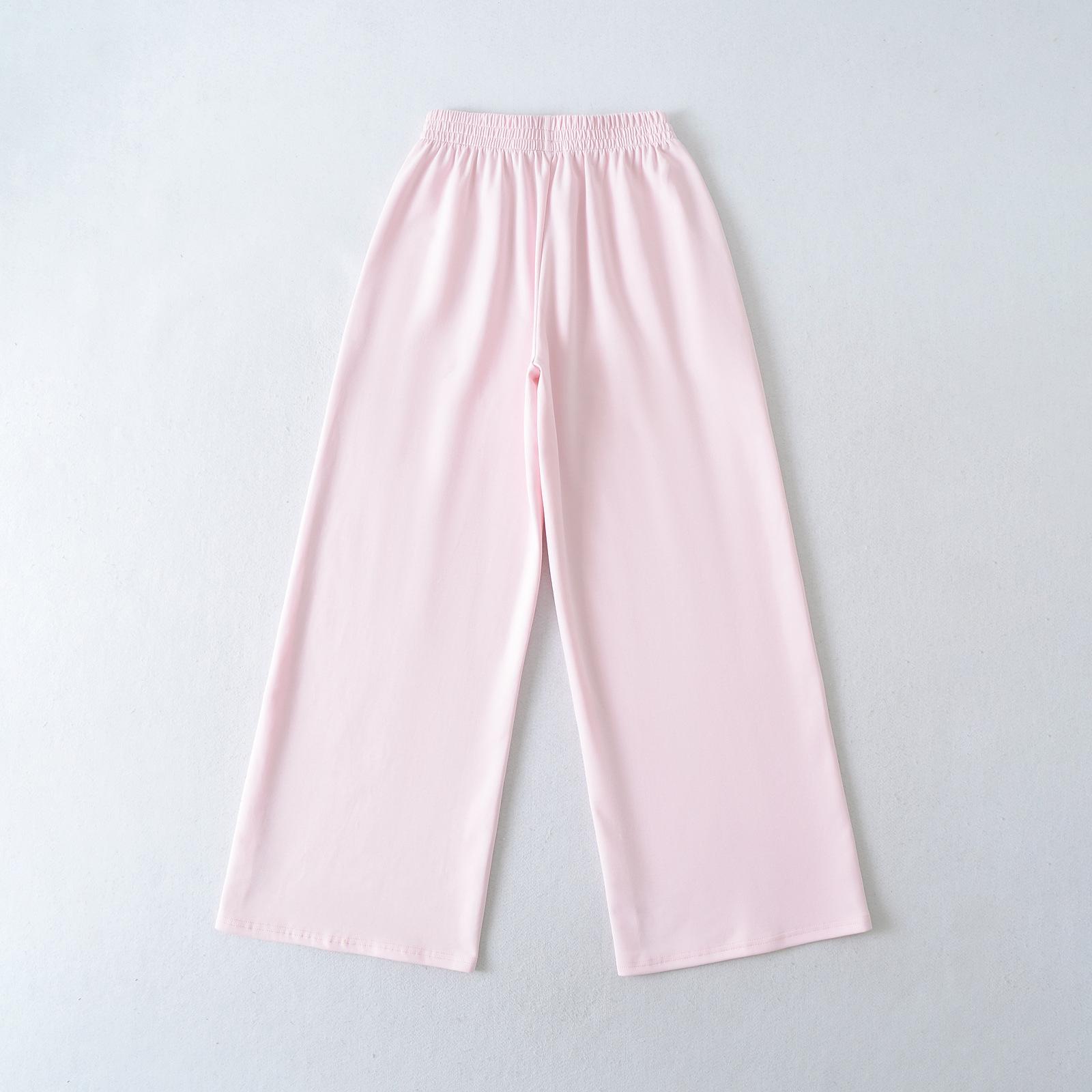 2025 Verano Mujer Nuevo Cintura Elástica Encaje Empalmado Pantalones Rectos Casuales Pantalones Deportivos de Pierna Ancha Pantalones de Chándal Luce tu Figura