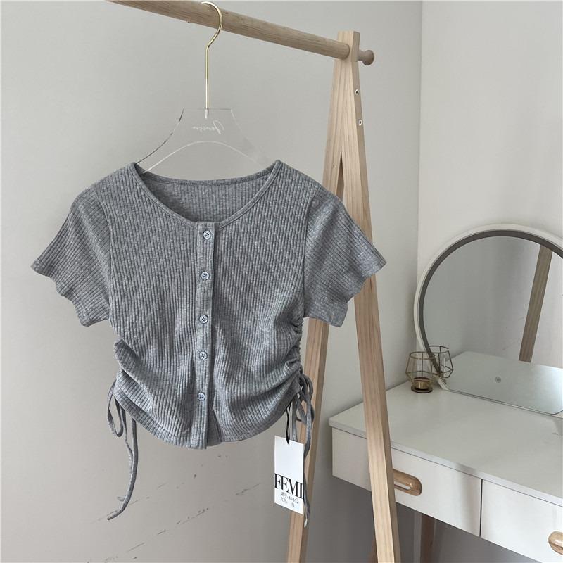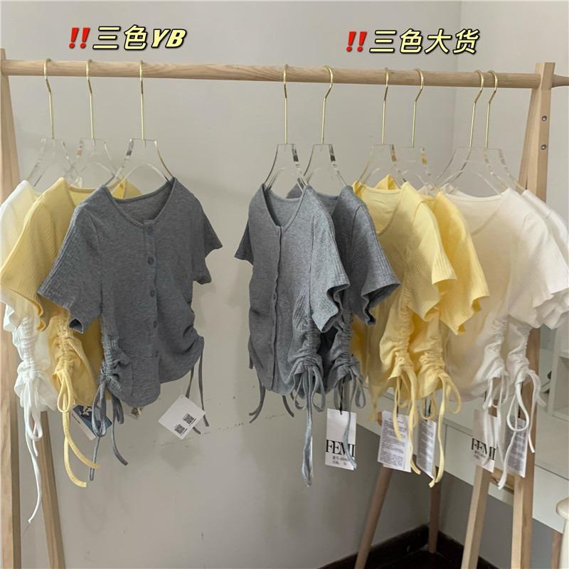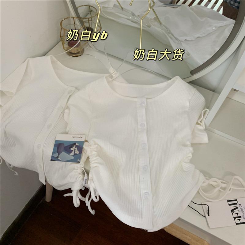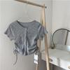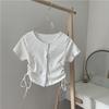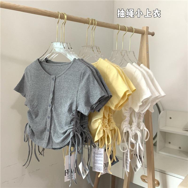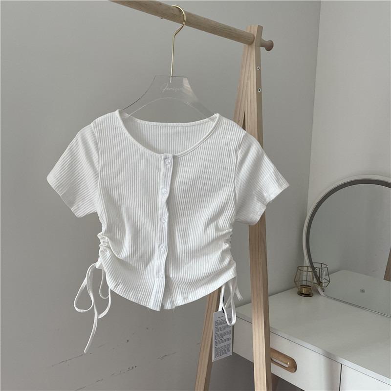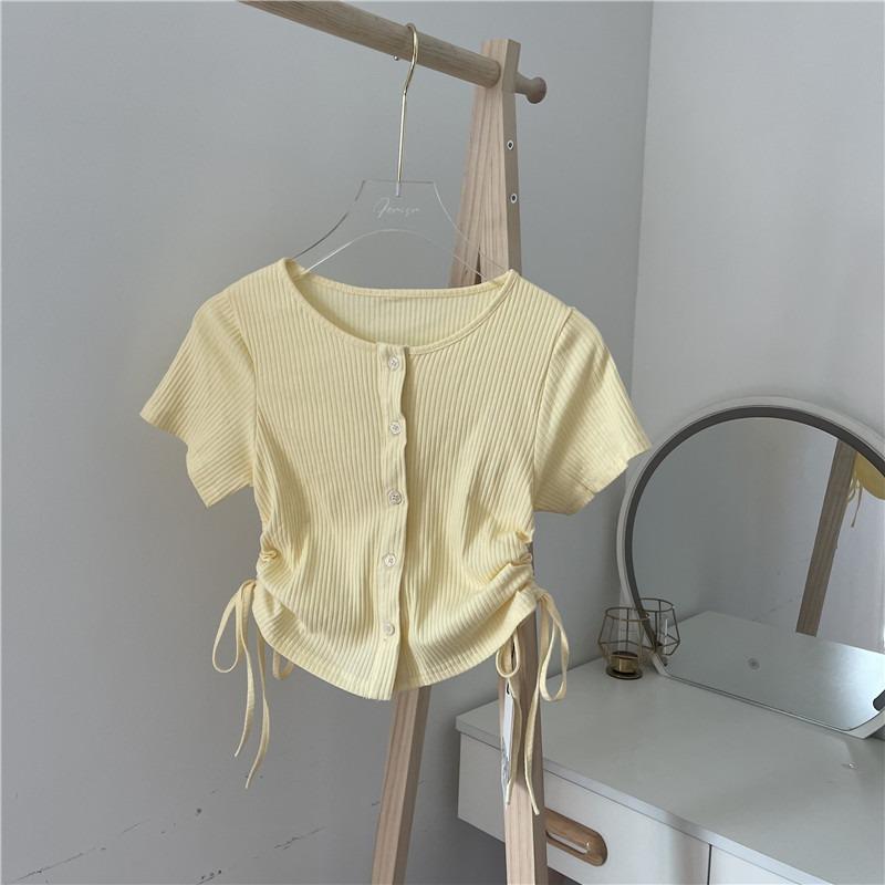 Camiseta de verano para mujer, nueva camiseta con cordón, plisada, diseño corto, estilo nicho, para gente pequeña, top de comercio exterior para mujer