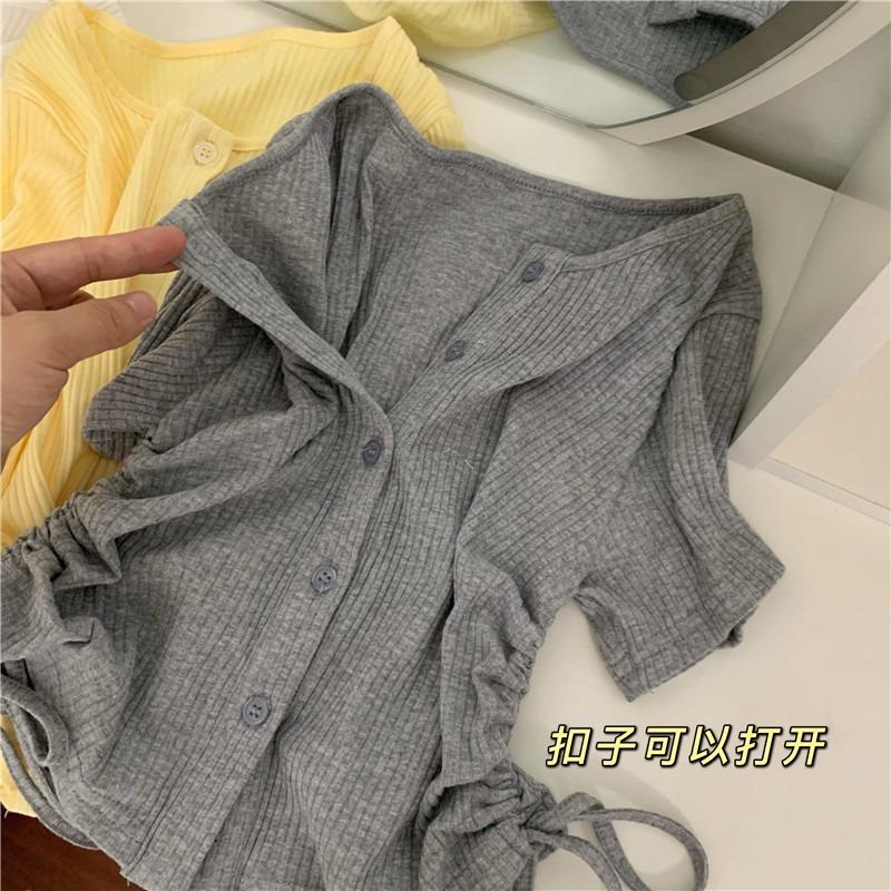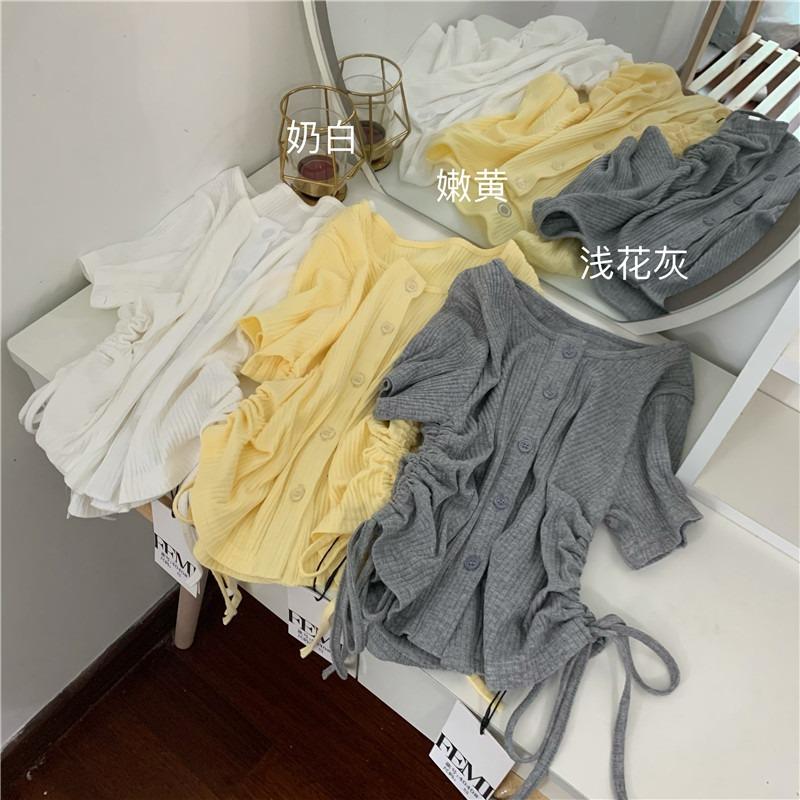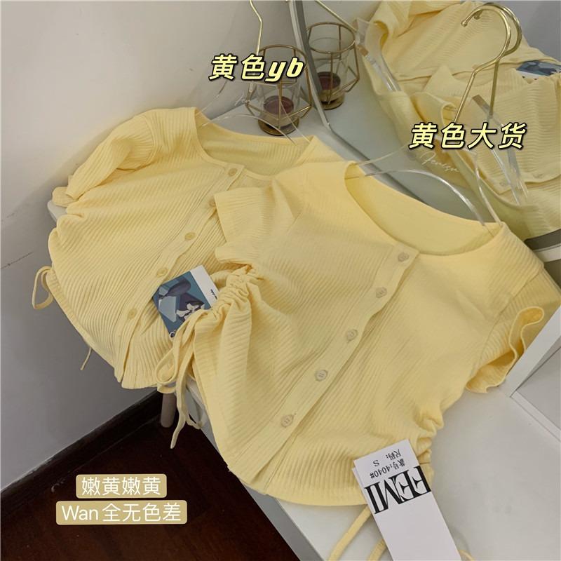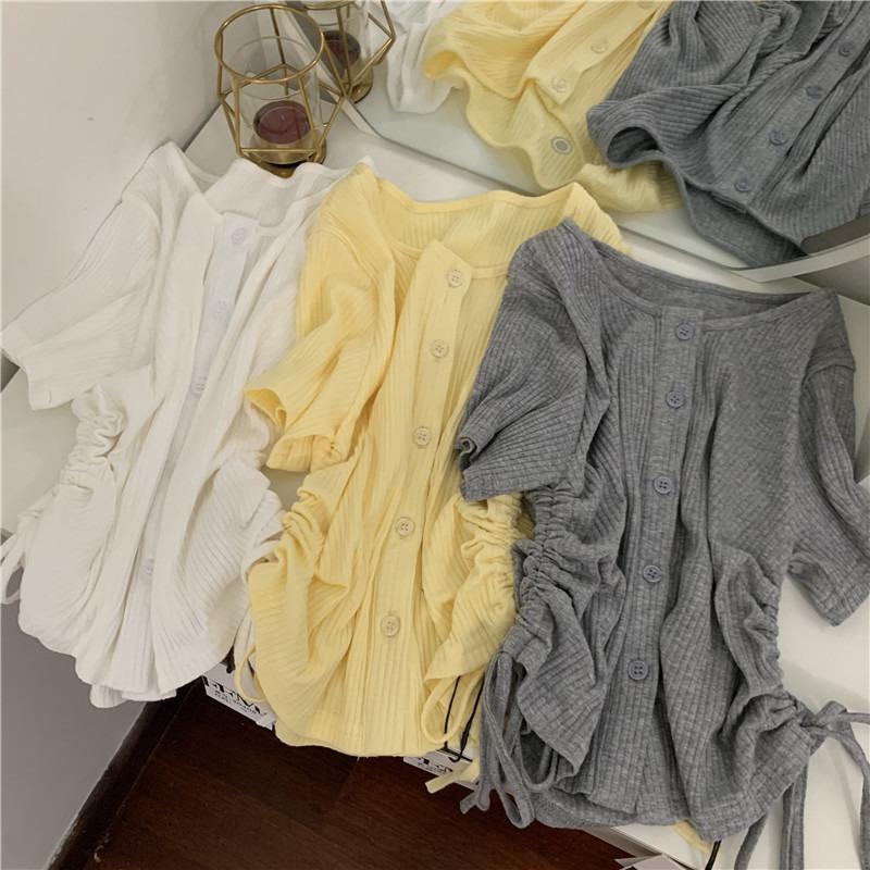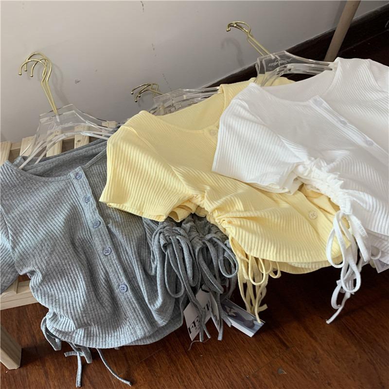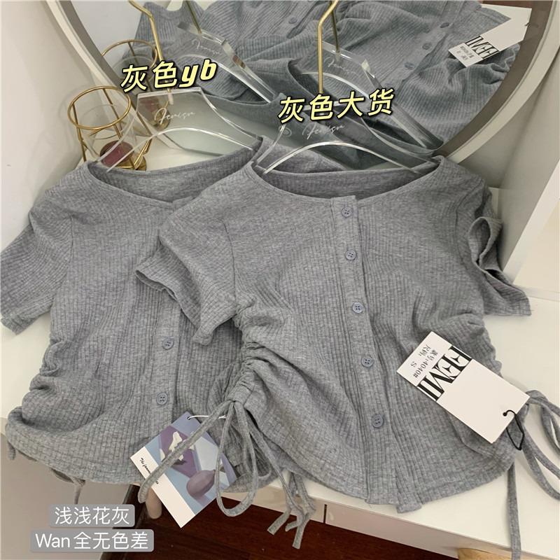Camiseta de verano para mujer, nueva camiseta con cordón, plisada, diseño corto, estilo nicho, para gente pequeña, top de comercio exterior para mujer