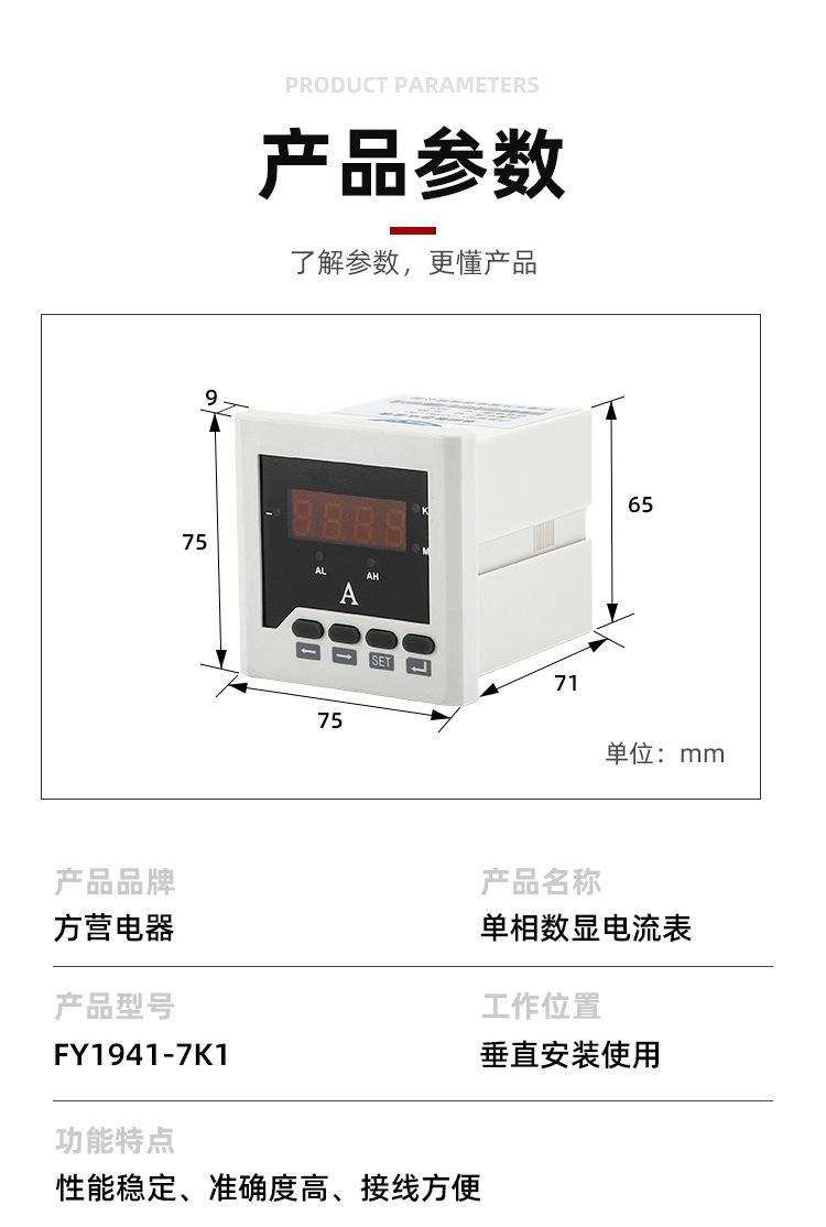 Amperímetro digital monofásico FY1941-7K1, amperímetro digital inteligente, medidor de potencia, corriente y voltaje.