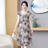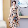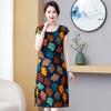 2025 Nuevo Vestido Floral Pequeño de Algodón Seda Verano Mediana Edad y Anciana Elegante Falda de Algodón Artificial de Madre Luce Delgada